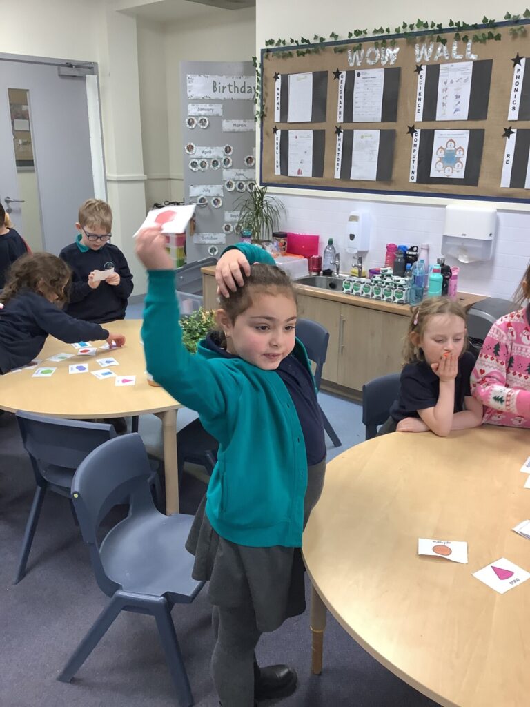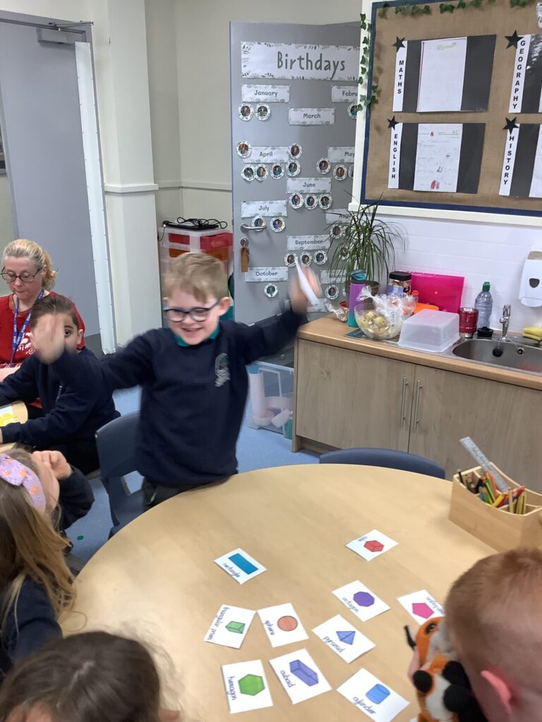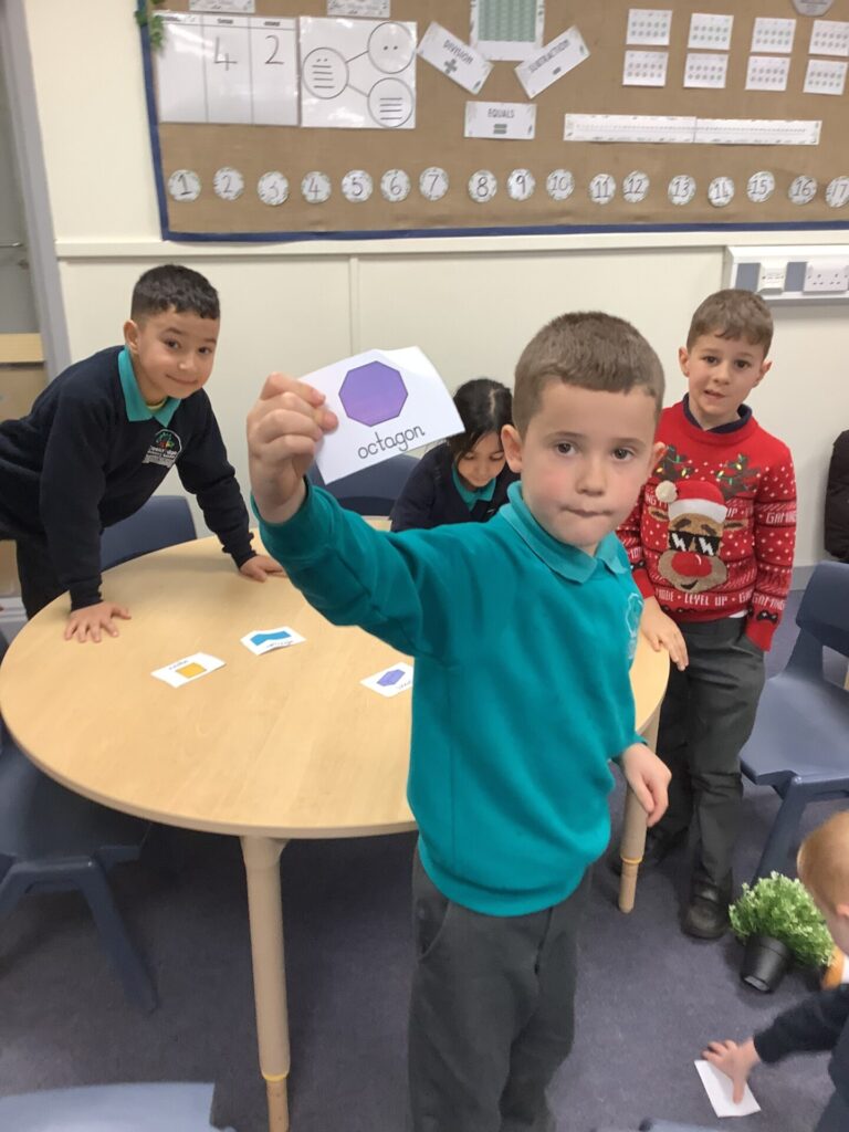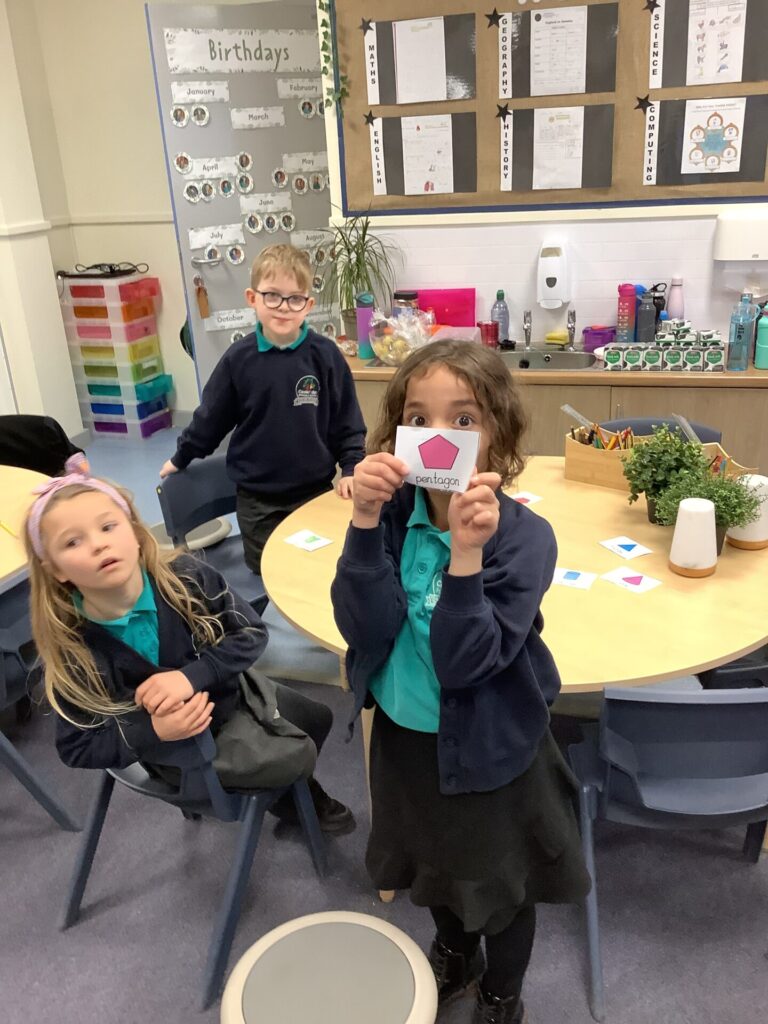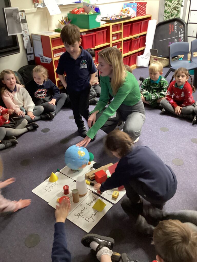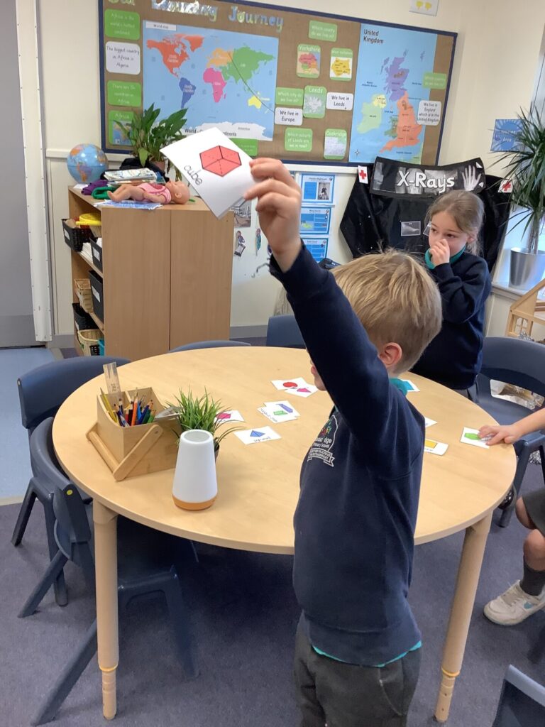 In Maths, both Year groups have been working with 3D shapes. They have been identifying and naming the shapes. Year One have then been sorting them, looking at which ones can stack and roll and using them within patterns. Year Two have been looking more at their properties, for example how many faces, edges and vertices they have and naming the faces.