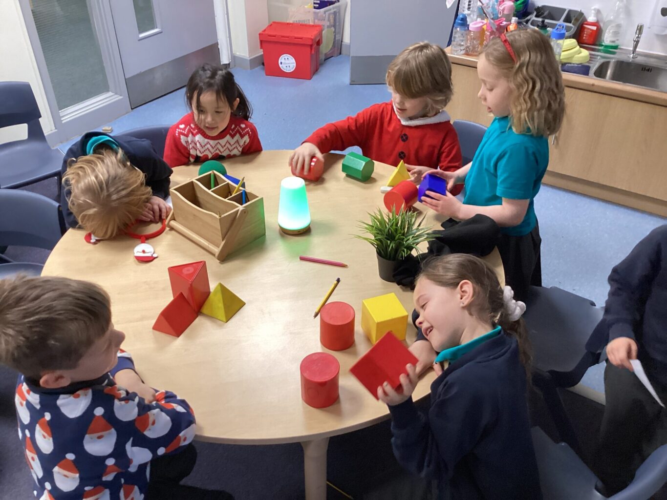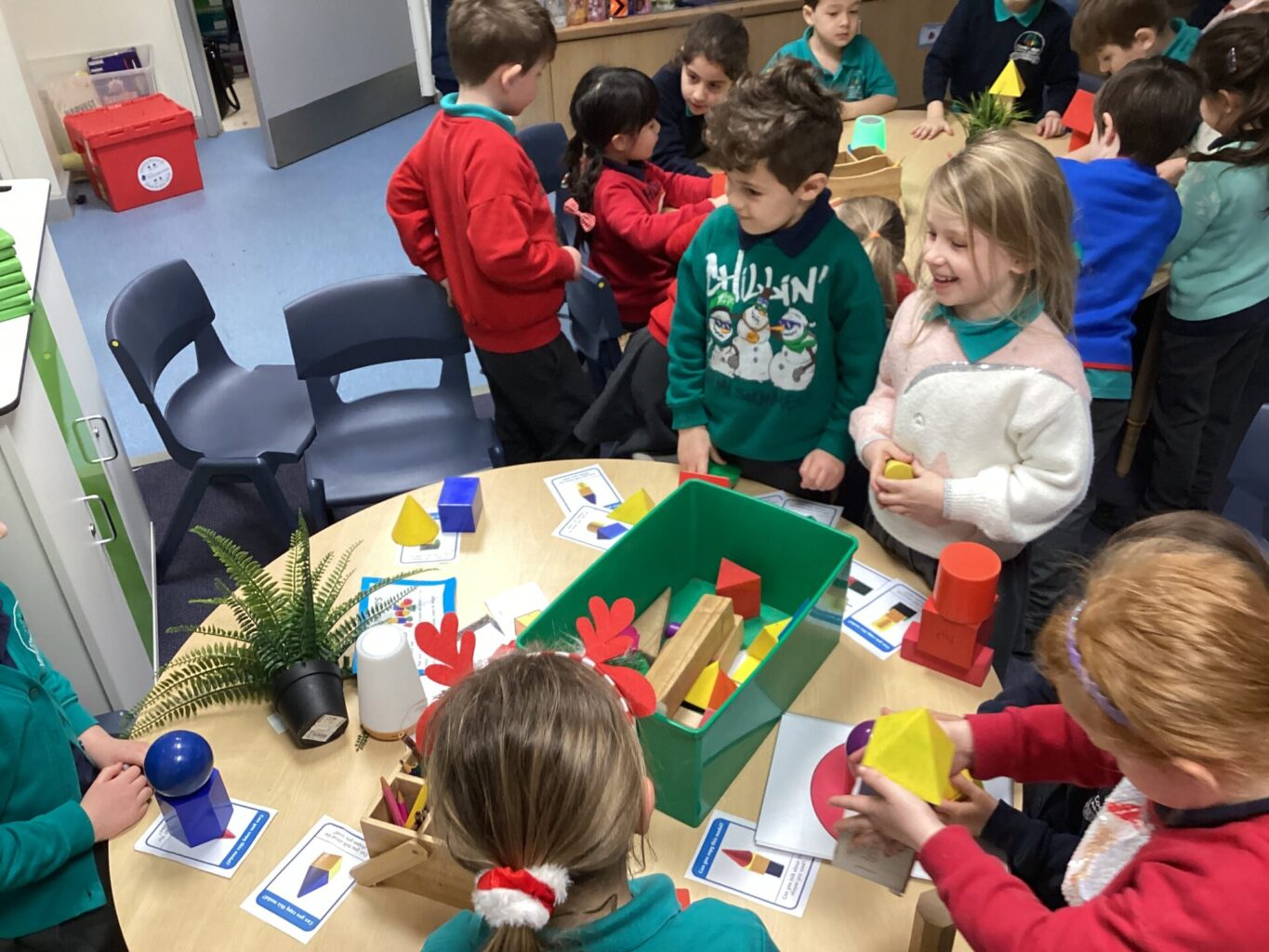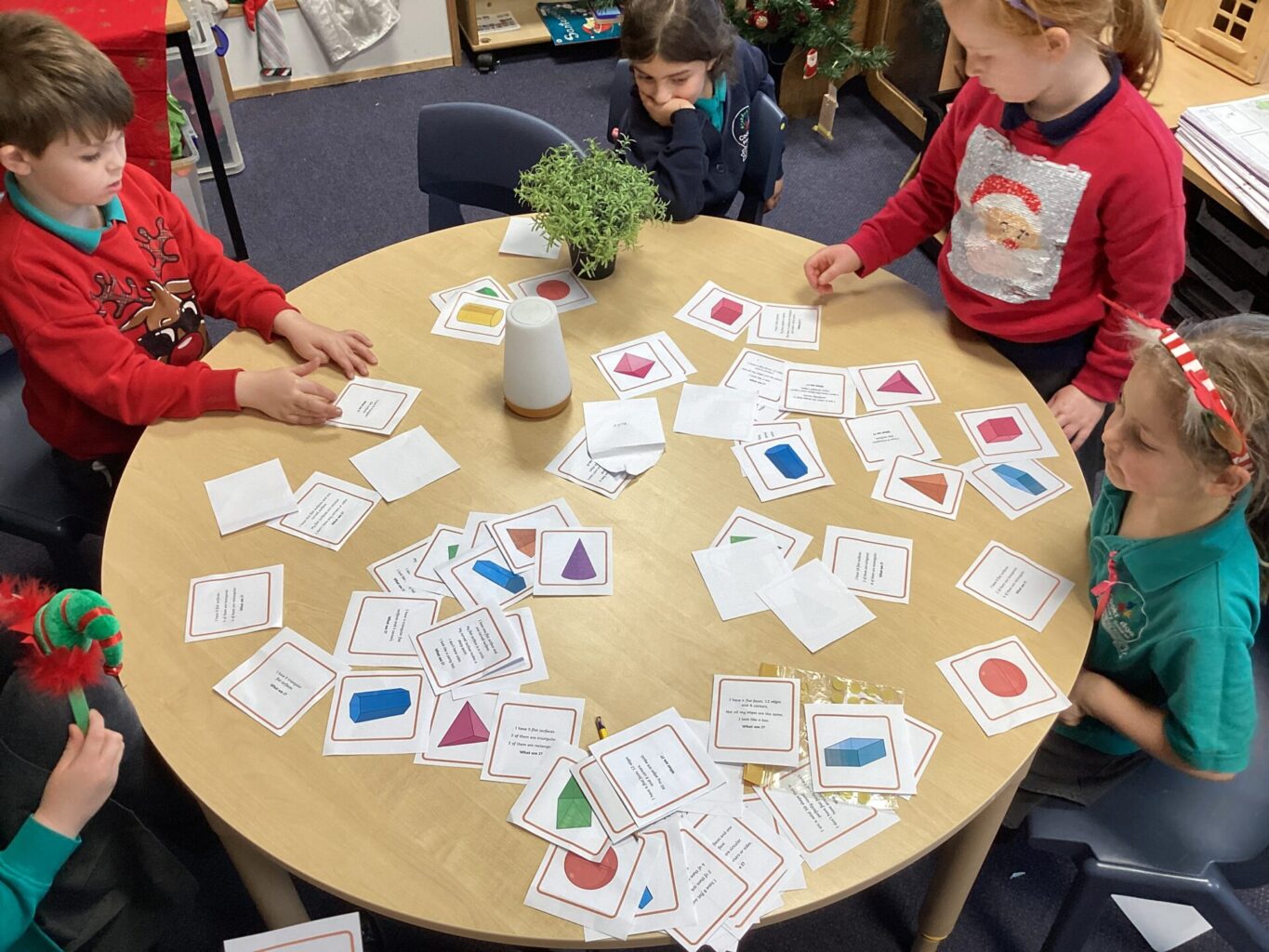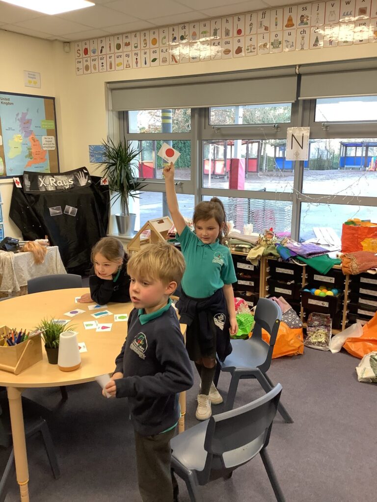 In Maths, both Year groups have been working with 3D shapes. They have been identifying and naming the shapes. Year One have then been sorting them, looking at which ones can stack and roll and using them within patterns. Year Two have been looking more at their properties, for example how many faces, edges and vertices they have and naming the faces.
