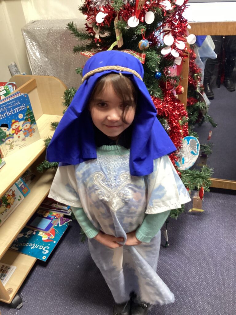 Year One were learning about the Christmas story in RE. They thought about things that were the same and slightly different from our Christmas play. They learned Jesus was born at Christmas and Christians believe that he was the son of God. Year Two were learning about the Aqiqah. They heard how when a baby is born they are given something sweet to taste and the call to prayer is whispered in their ear. They also learnt how the Aqiqah happens 7, 14 or 21 days after the baby is born and meat/ money is given to the poor.