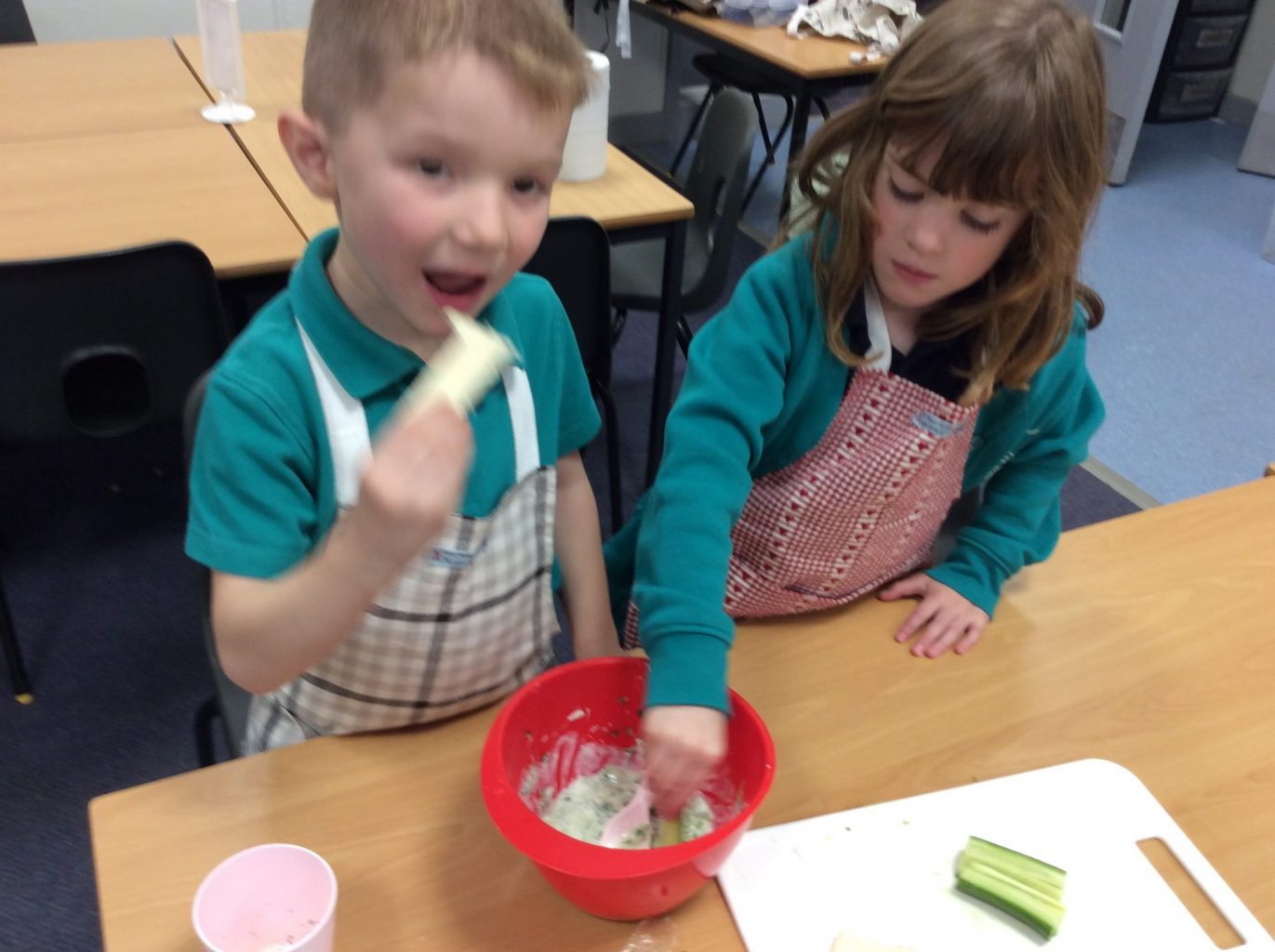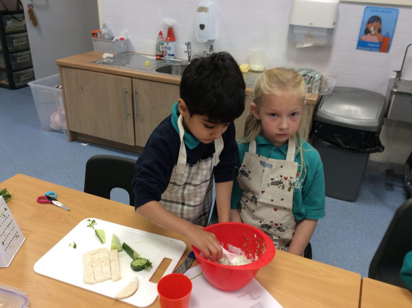 In DT, the children have been learning how to work safely when preparing food and used these skills to make their own raita. They looked at how mint grows on the plant, before smelling it and chopping it to put into the dip.They were then able to taste it on pitta bread, before learning how to clear and wash up correctly. In the other DT group, after designing their candles, they have begun the process of making them!