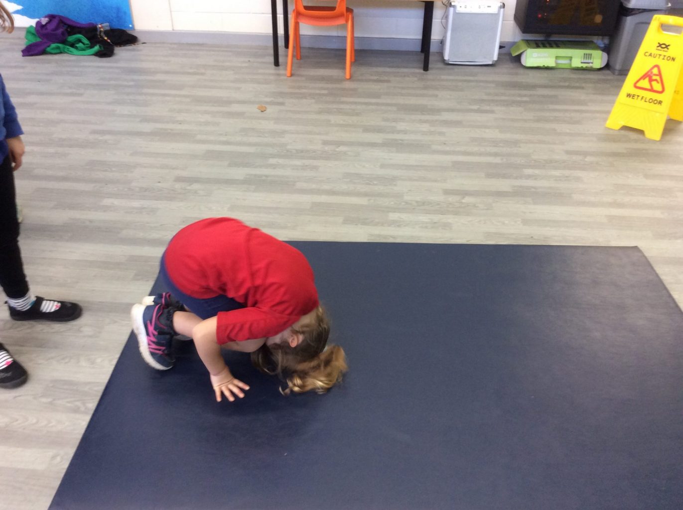 After learning about how hedgehogs curl up into a ball when they are scared or to protect themselves, we learnt about rolling in PE. We practised different rolls; a log roll, a teddy bear roll and a forward roll. We all really enjoyed it, but found the teddy bear rolls the most challenging to co ordinate how our bodies needed to move to roll the correct way.