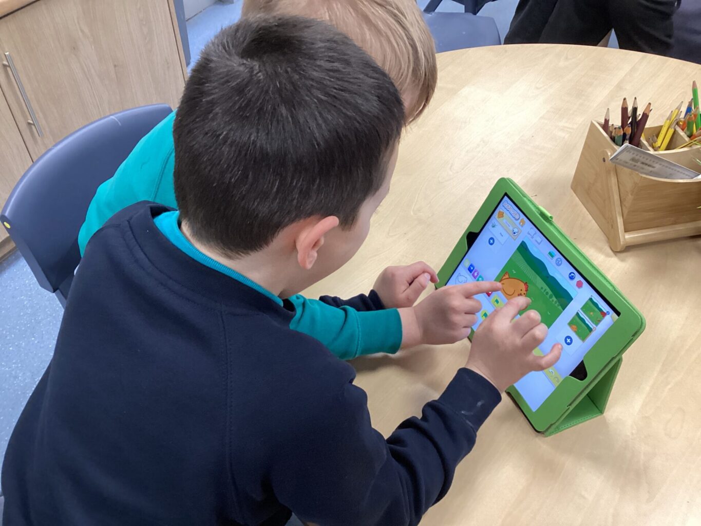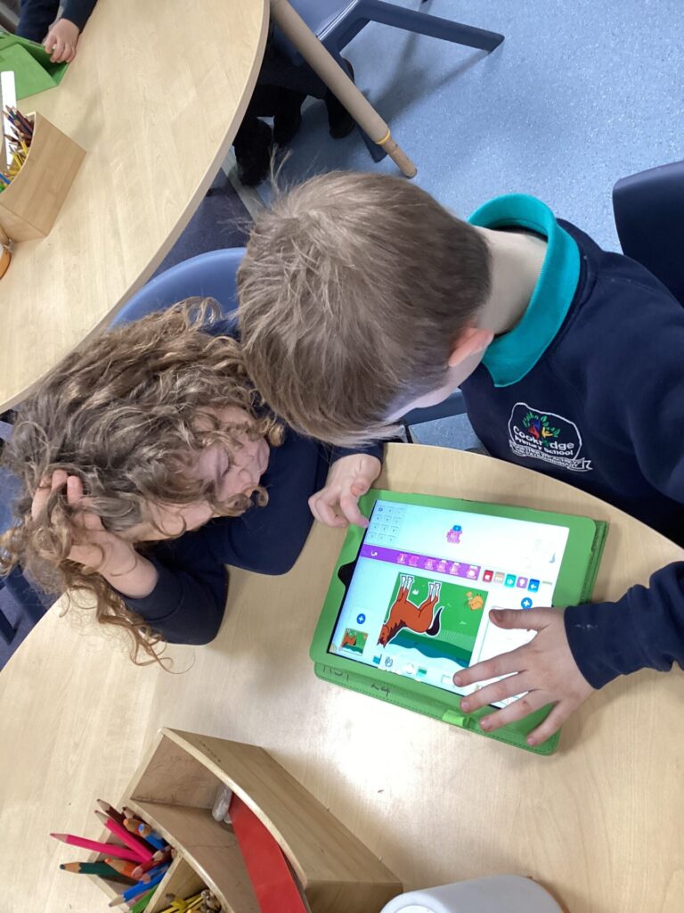We have a new program called ‘Junior Scratch’ that we have been experimenting with in our computing lessons. The children have been able to select a background eg a farm and then choose appropriate things to appear on the farm such as a chicken and farmer and a barn. They have then learned how to change the size of these objects and have played around with them to see if they can make their scales a sensible size compared to each other.
