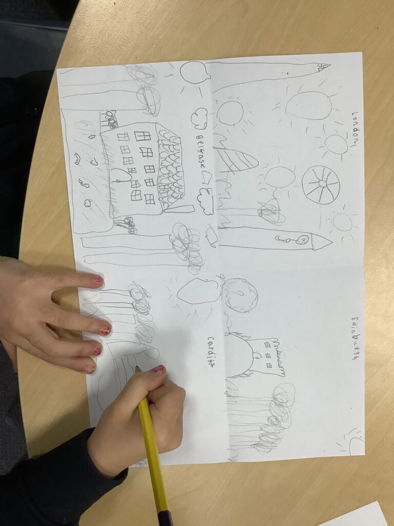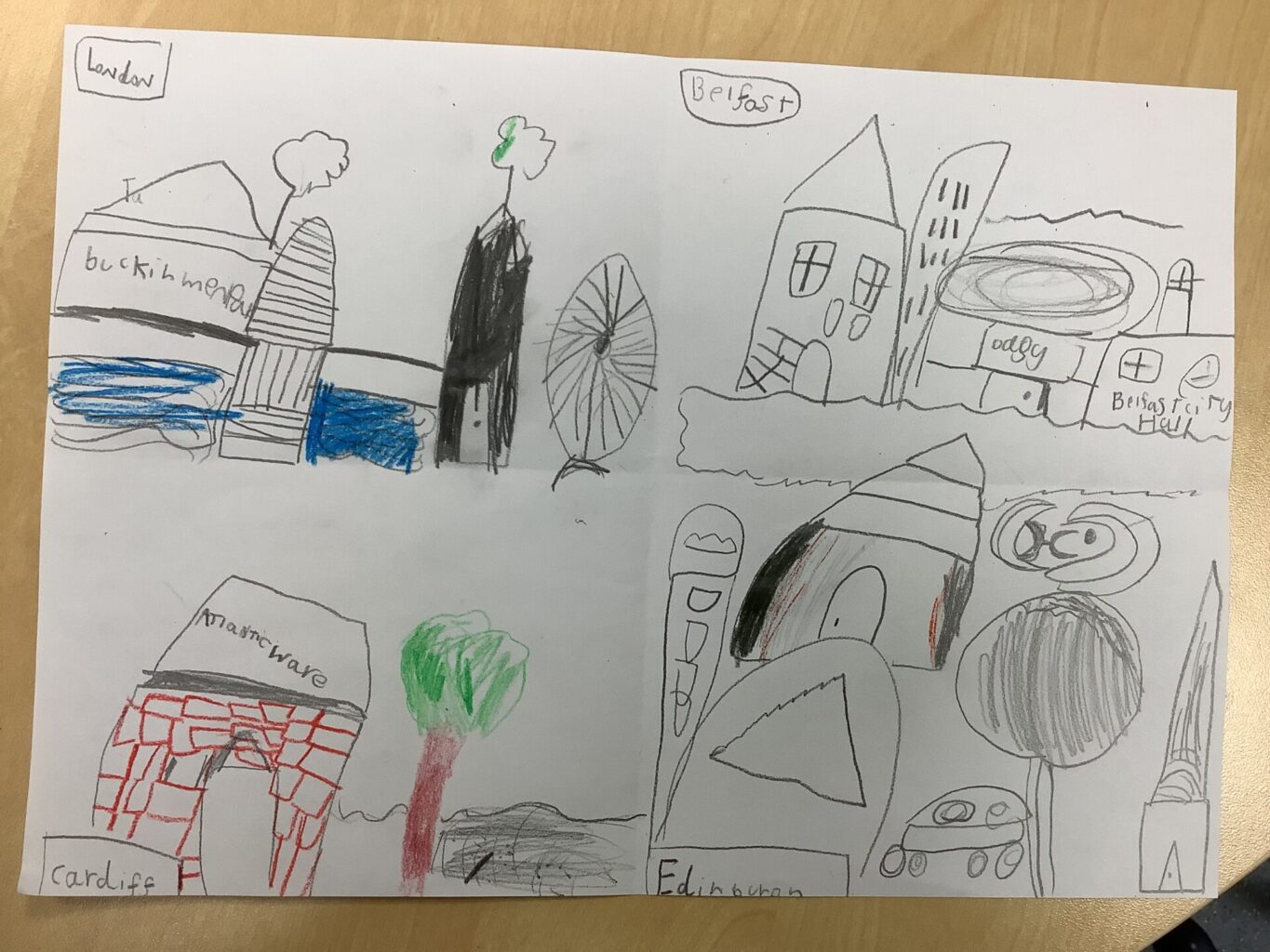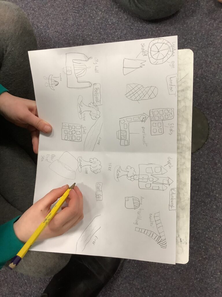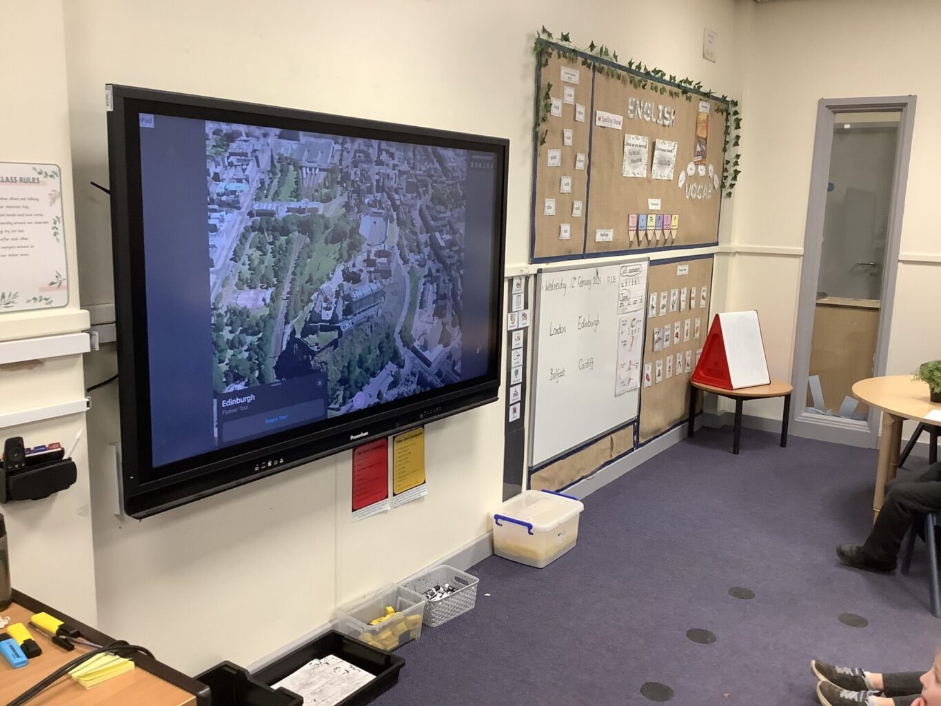 In Geography, the children were naming the capital cities in the UK. They then used the fly over tool, to watch footage of filming over the different cities. They spotted different buildings and styles of building that featured there eg. The Houses of Parliament in London and Edinburgh castle.