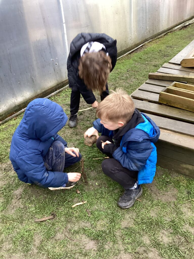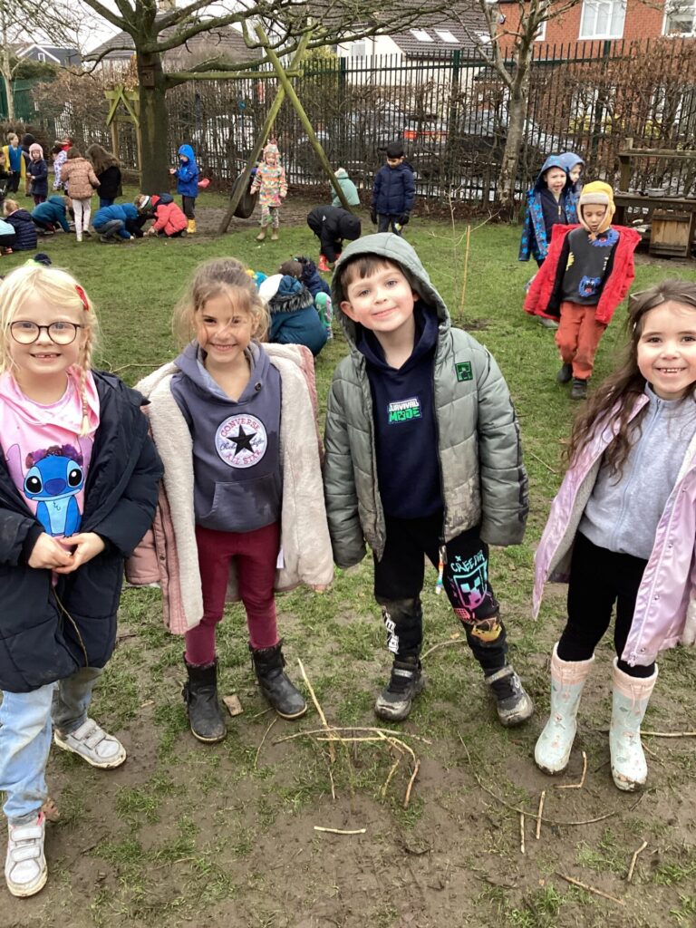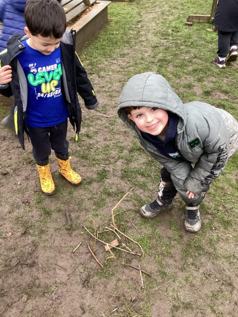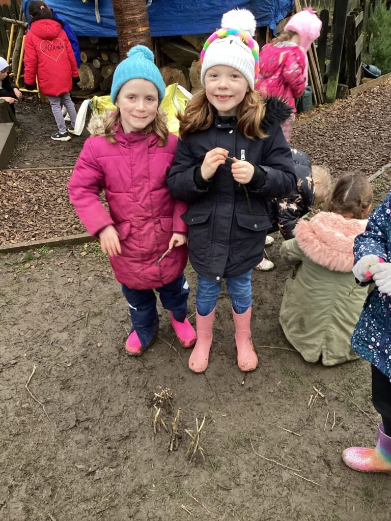 We continued thinking about the Great Fire of London during our forest school session. Mrs Koopman created a fire. We could see the difference in sticks that burnt quickly because they were dry and those that didn’t because they were damper. We used lots of little sticks to create our own houses as the streets of London and made sure we had built them right next to our friends because all the houses were built close together.
