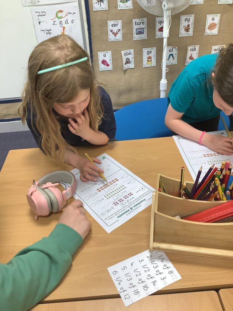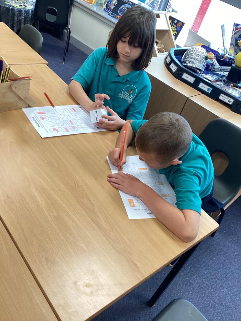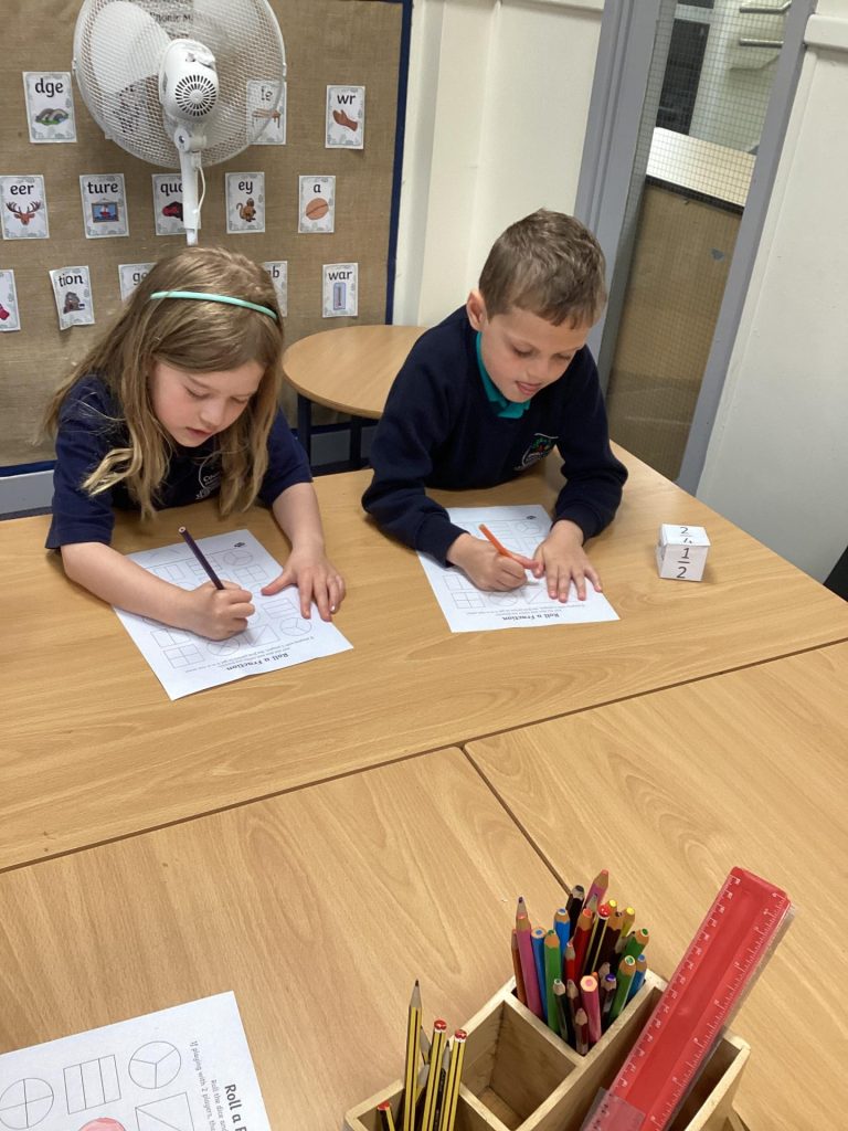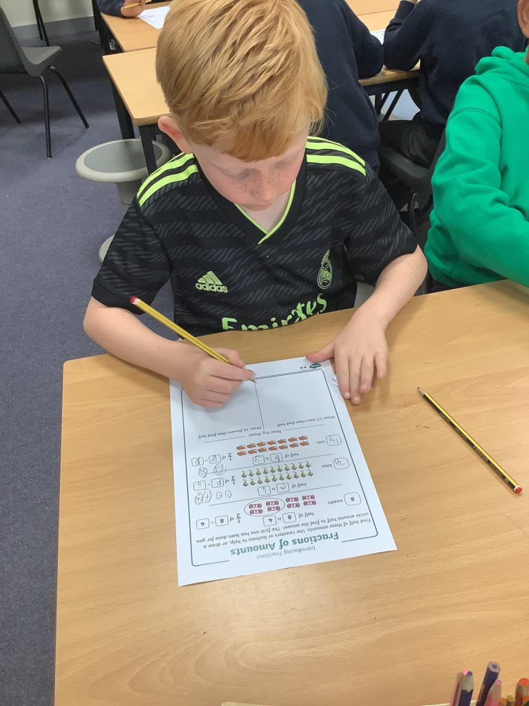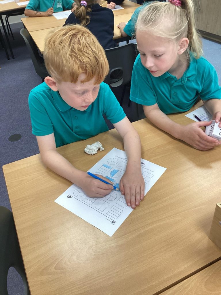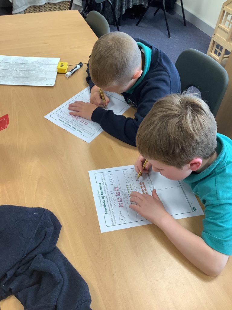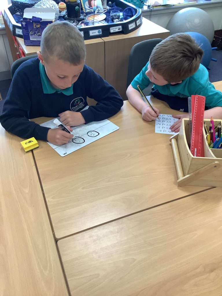 In Maths, Year One have continued learning about fractions this week. Their focus this week was on recognising and finding a quarter of a shape and a quantity. One group in Year Two Have continued learning about fractions and this week have been finding fractions of amounts. The other group have begun learning about time. They have started by recapping telling the time for o’clock and half past.