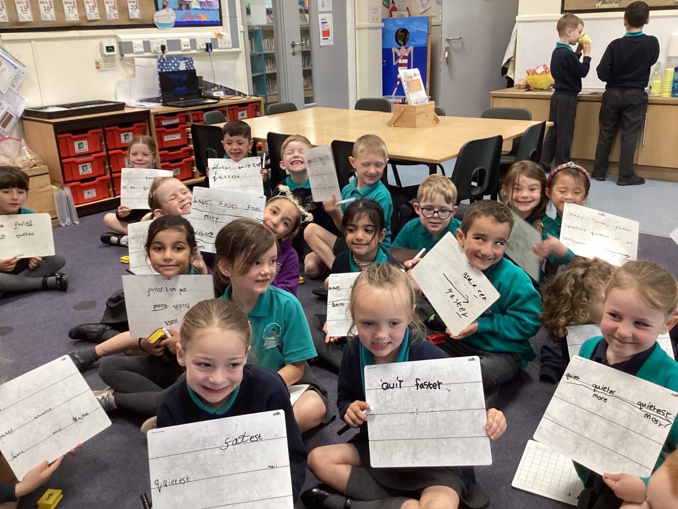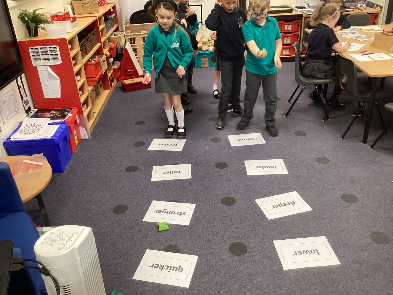 Both Year groups have continued to learn about Helen Sharman in English and have been working towards writing a full newspaper article. They have been looking at all the features of a newspaper report and collecting information to add into the report. In phonics, we have all been learning about adding suffixes. Year One have been adding -er and Year Two have been adding -est had -ful, -less and -ly.
