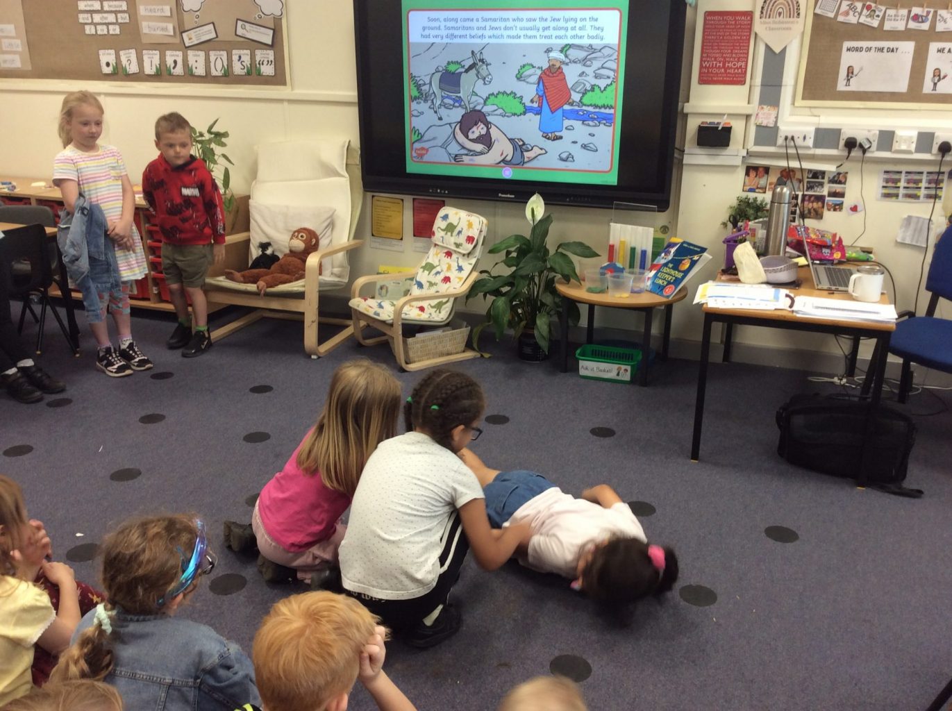 In RE this week, Year One have continued to think about how we treat others. This week, they heard a story that is in the Bible from the Christian faith, called The Good Samaritan. They thought about how each of the characters in the story behaved and whether they thought they should have done something different. They then wrote about and illustrated a situation where they would like to help someone. Year Two have continued their topic on prayer. This week, they have been looking at how people in the Muslim faith pray. They have learned about how they pray 5 times a day, on a prayer mat facing Mecca. They learned about their special washing routine called the Wudu and why this is important.