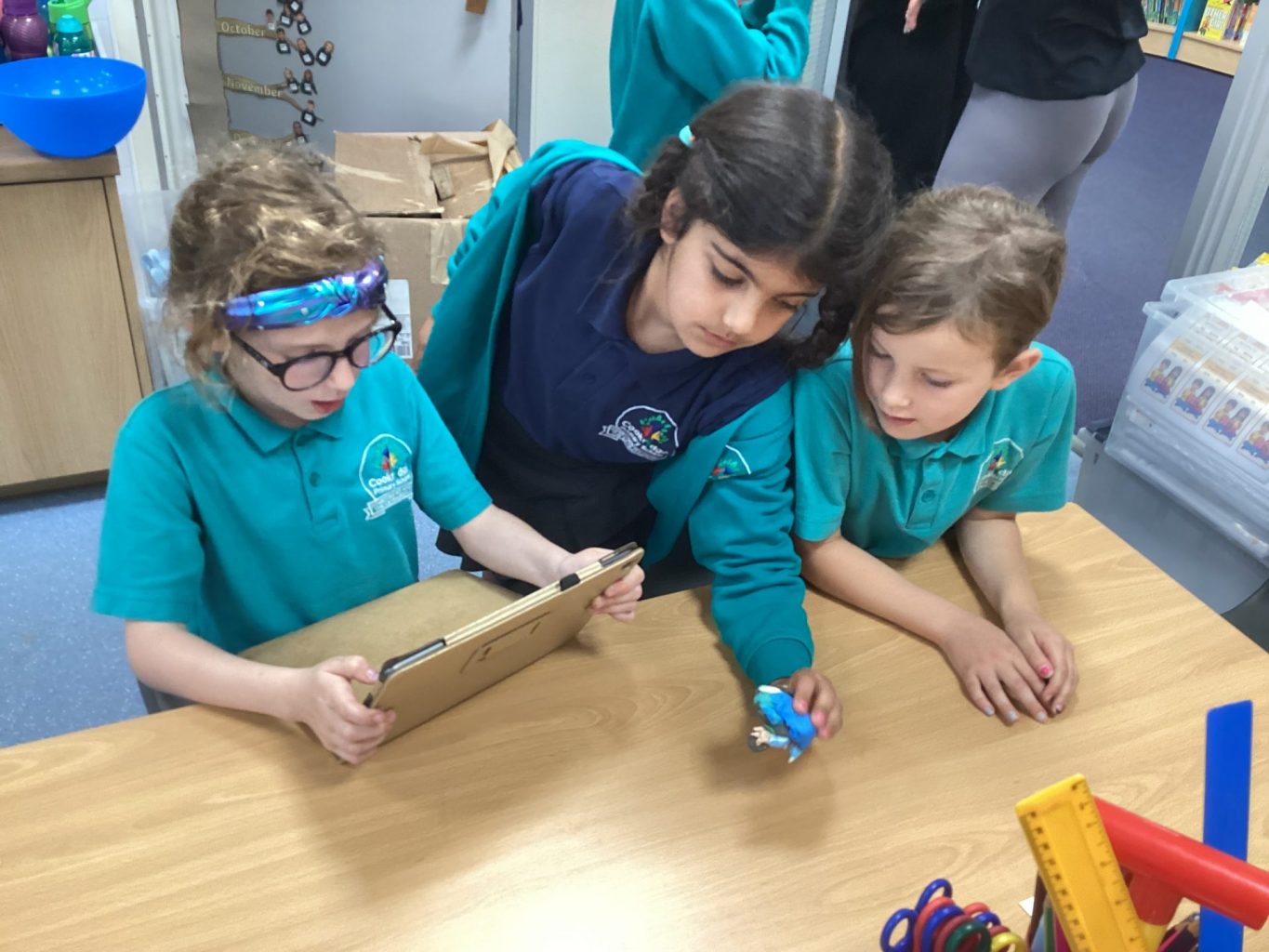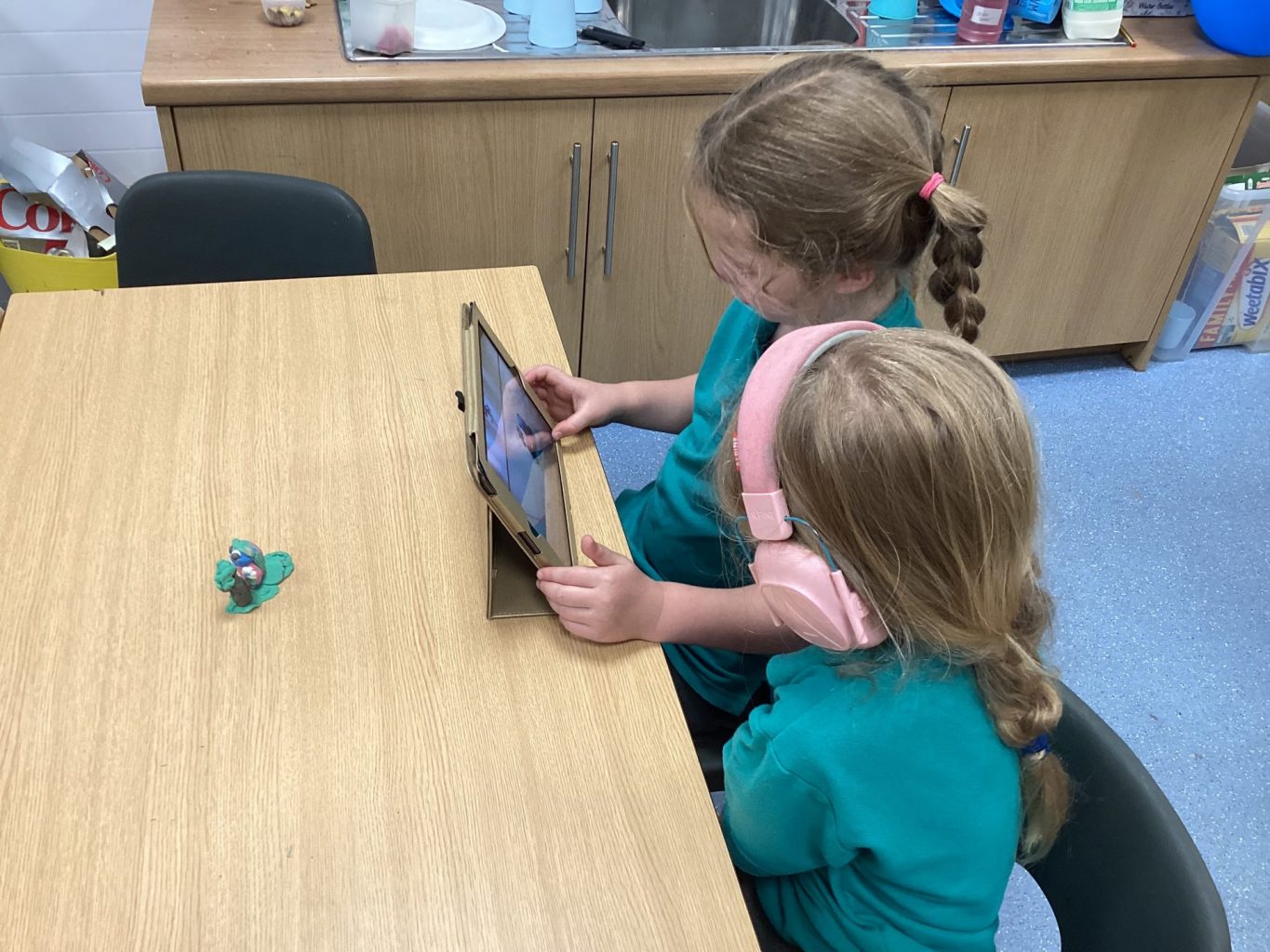 After making characters for computing last week, we were able to put them into action this week, creating stop motion videos. The children posed their character and took a photo. They then moved the character a bit and took another photo. They repeated this process and then played all the photos together in a video so that it looked like their character was moving.