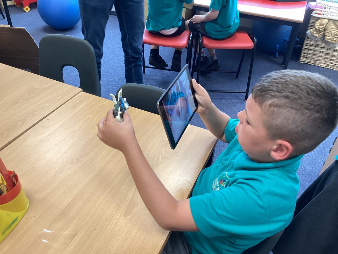 The children learned a new skill in computing this week, as they used the 2animate program to create a different kind of animation. They used the plasticine characters they had made to take photos to create a stop motion animation. They took a photograph of their model before moving it slightly and taking the next photograph. When the photographs we run in a sequence together, it looked like their character was moving.