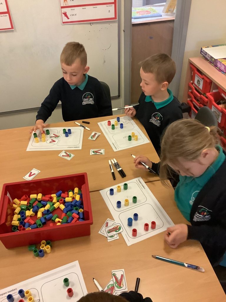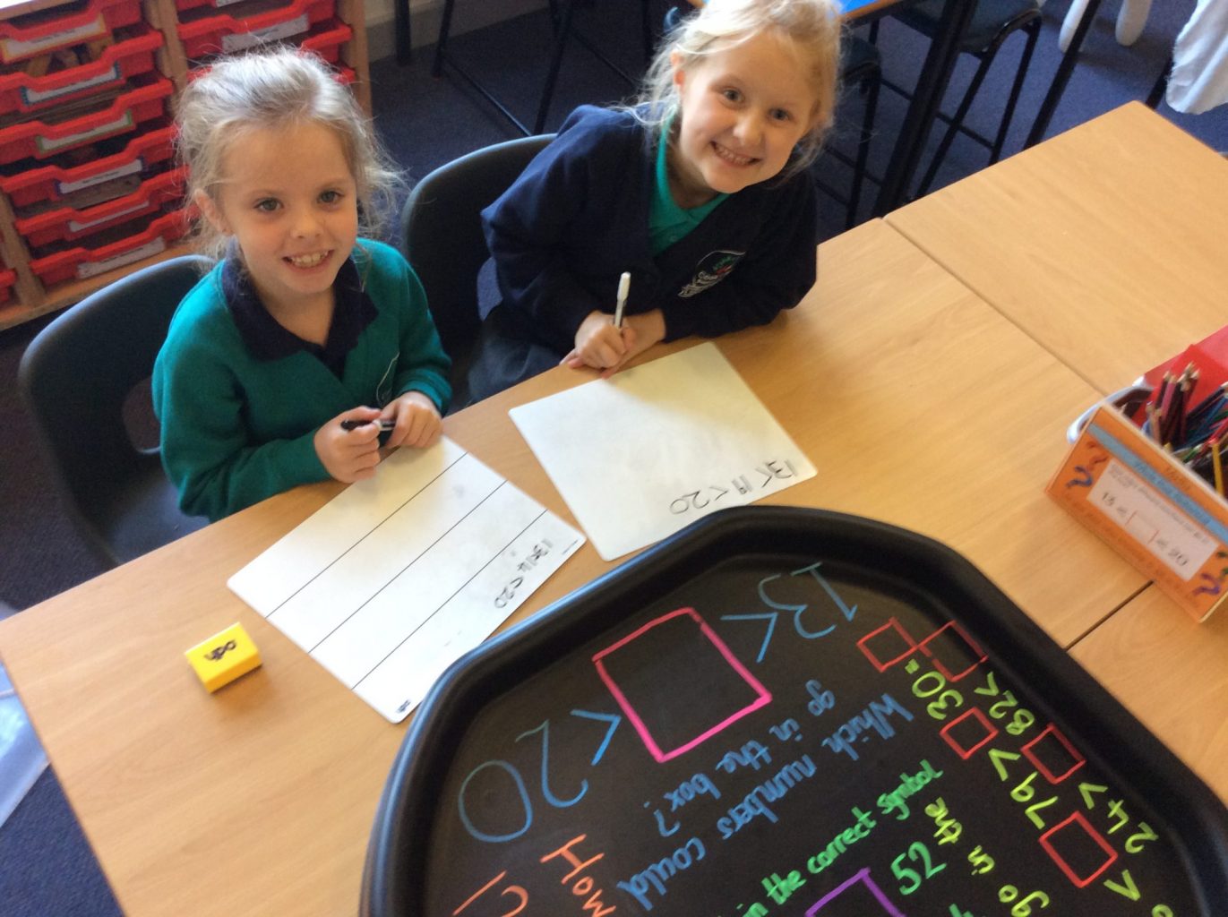 In Maths year one have begun to compare numbers using the greater, less than and equals to signs > < =. In year two they have also been comparing and ordering numbers. Some groups have also been practising counting in 2’s, 5’s, 10’s and 3’s.