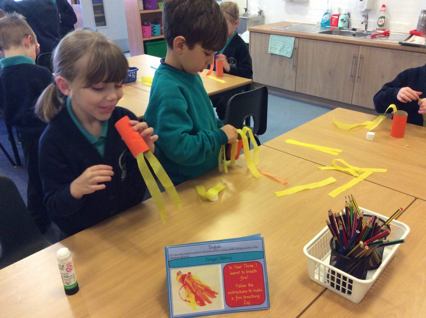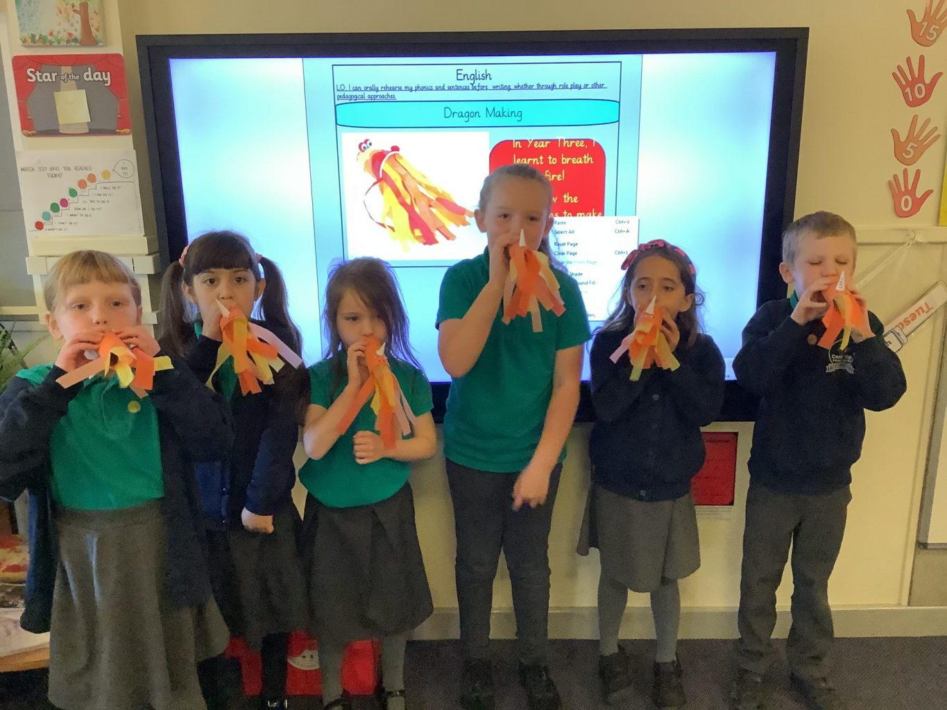 We have continued to use ‘Zog’ as our inspiration for our writing this week. In both year groups we have been describing Zog using one or two adjectives for each of his features and then putting these into sentences. Year two have been thinking about the skills Zog learnt and have created some dragons breathing fire. Year 1 have also had an exciting week practising their phonics using all kinds of games and activities and showed them off to some visiting Red Kite teaching students.