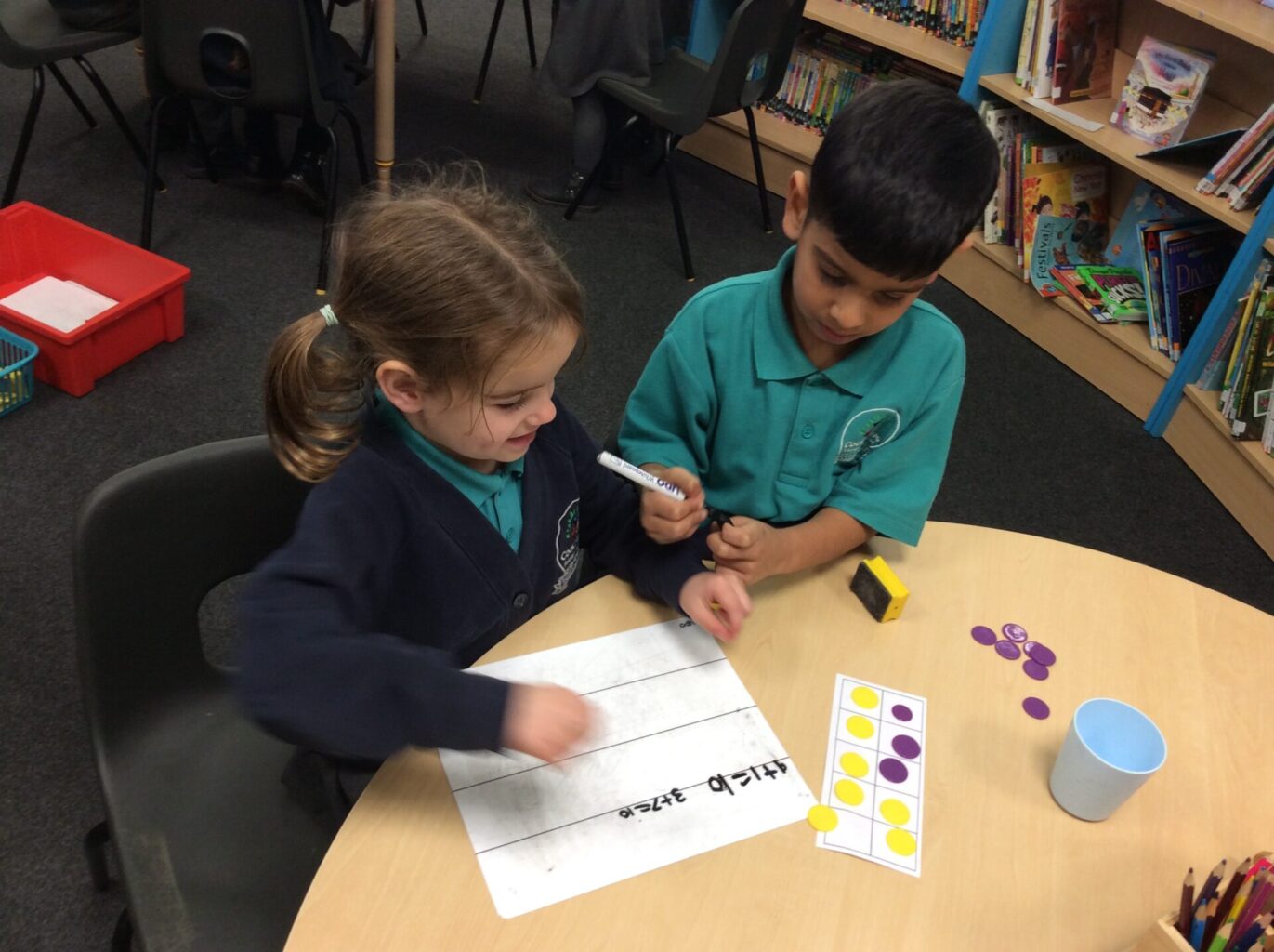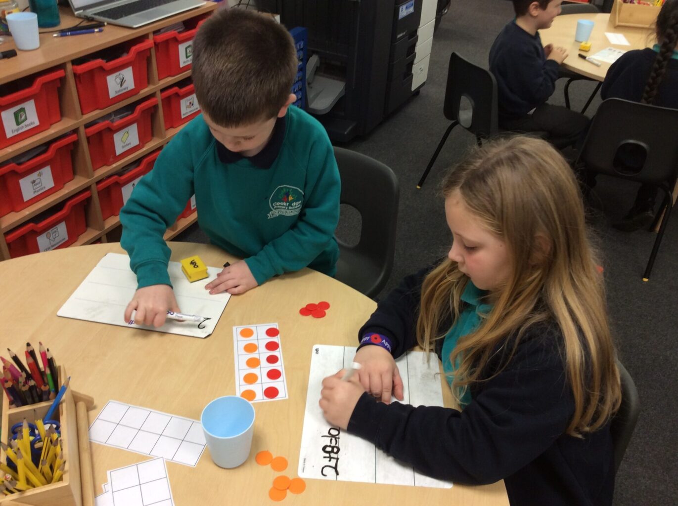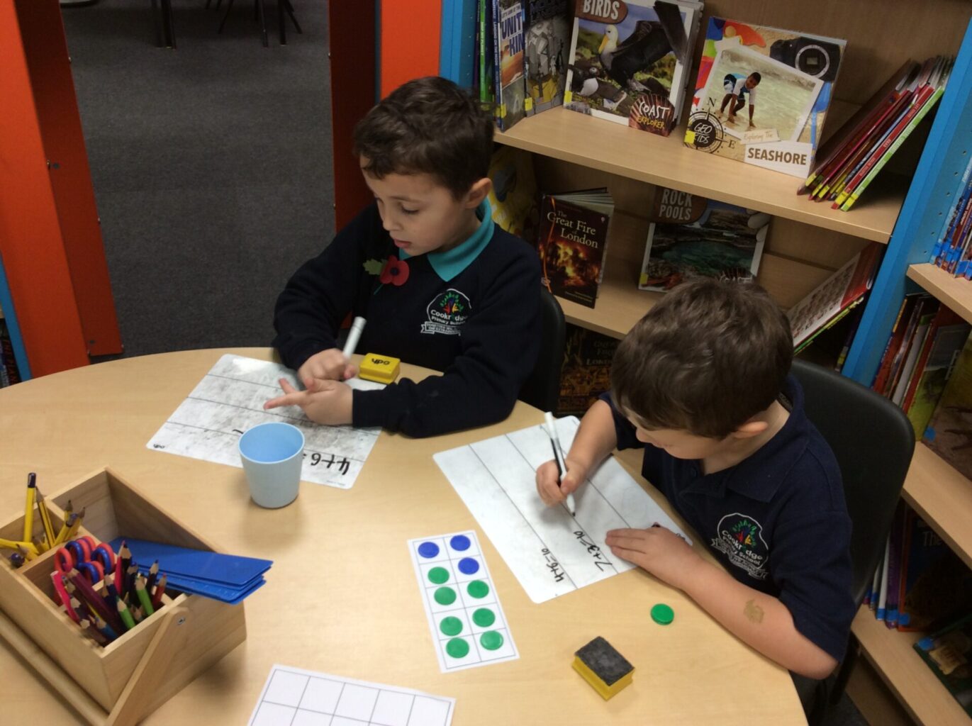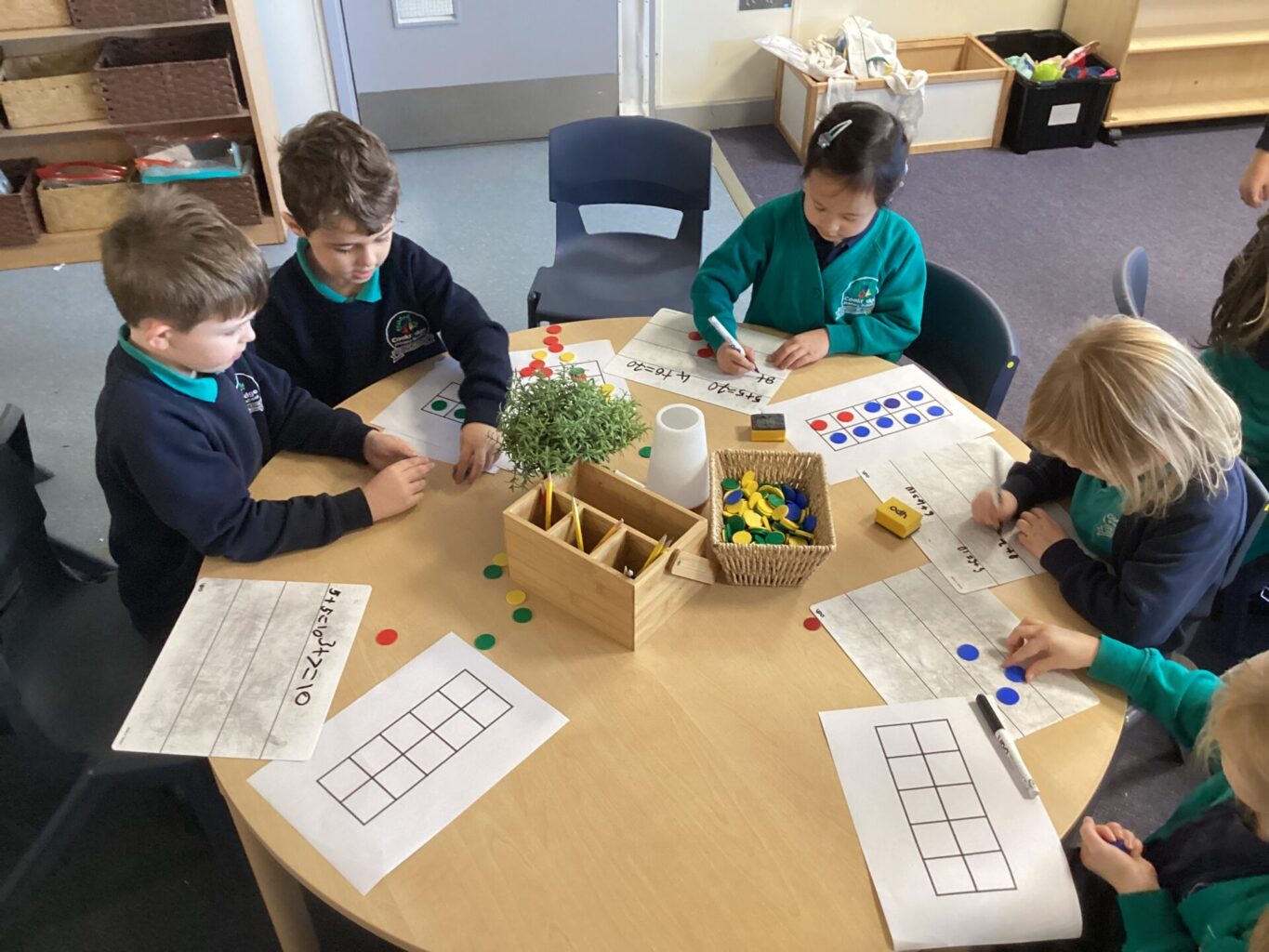 In Maths, Year One have been learning Number bonds to ten. They have practised systematic Number bonds, knowing which two numbers add together to make ten and have been completing various practical tasks and games to help them remember. One group in Year Two have been adding two digit numbers using place value charts. The other group have been subtracting in a column, exchanging where necessary.