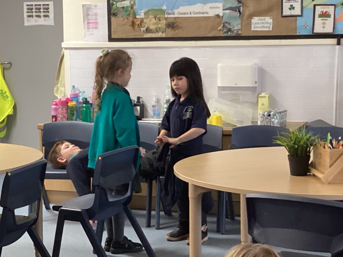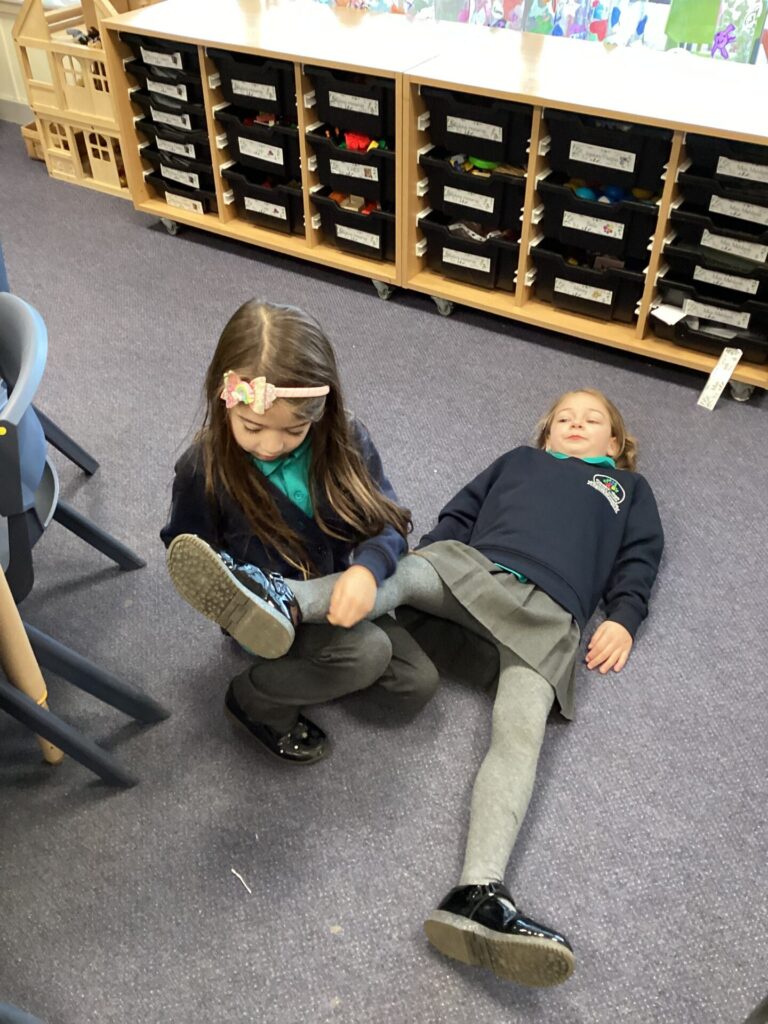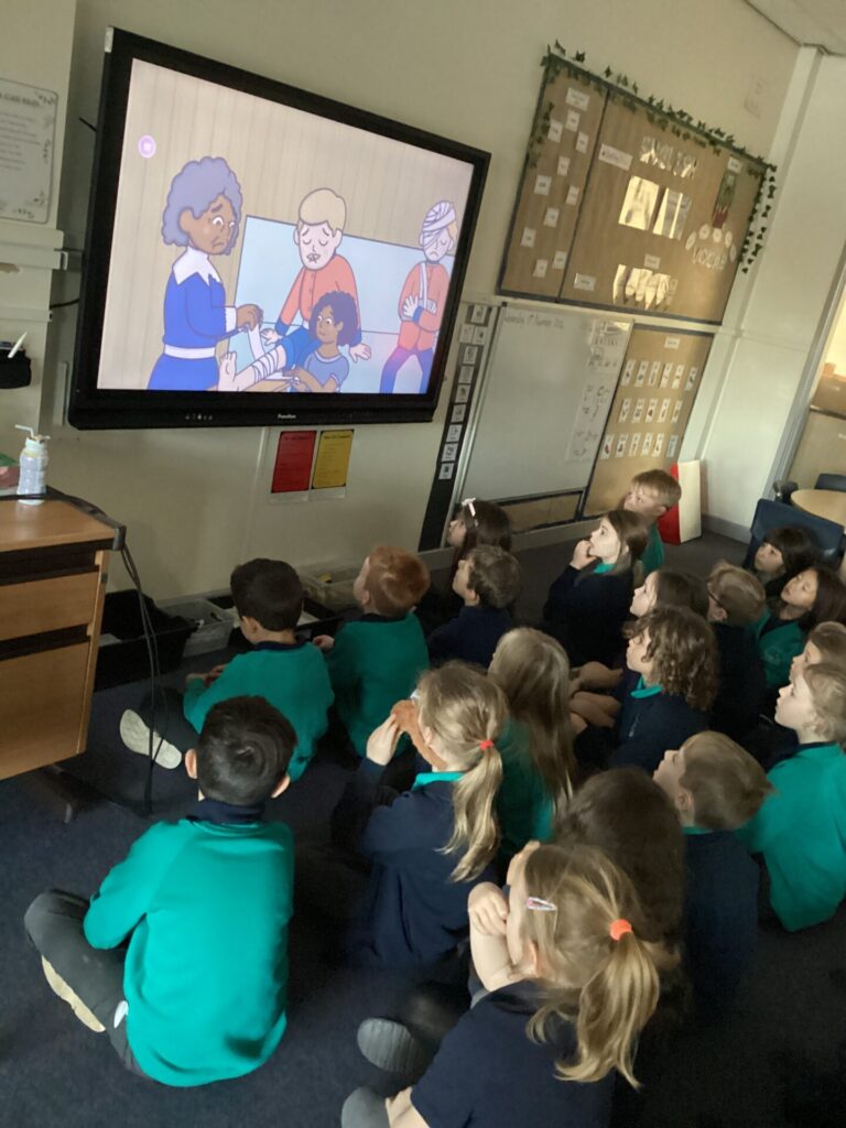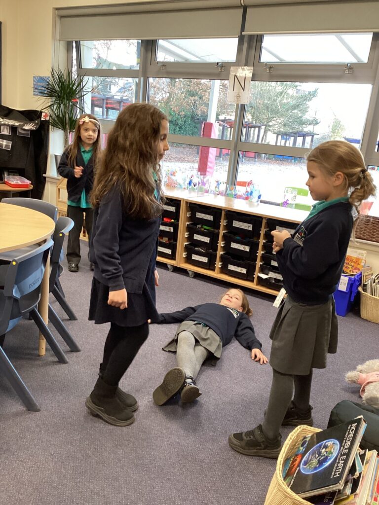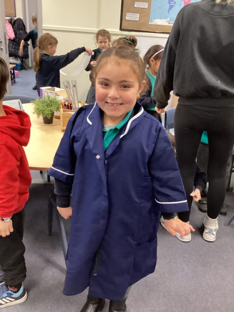 Class 2 were very lucky to have a visit from Iris’s Nanny who is a nurse. She showed them all kinds of equipment she uses when she’s nursing from thermometers and blood pressure monitors to torches and stethoscopes. She even brought in bandages and syringes (no needles!) for them to unwrap and use, explaining the importance of things being clean and used only once.