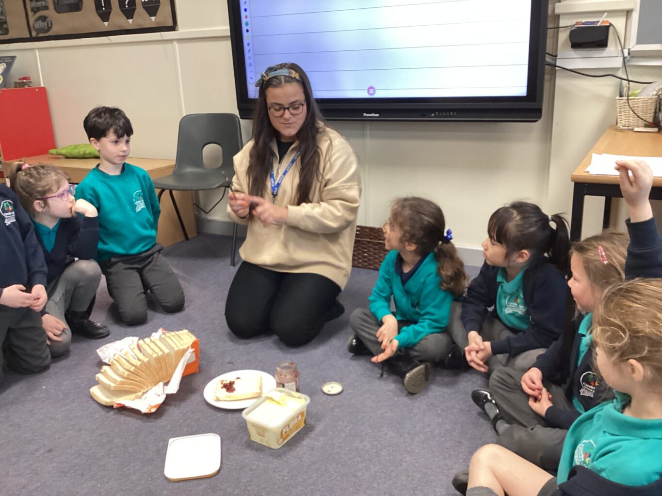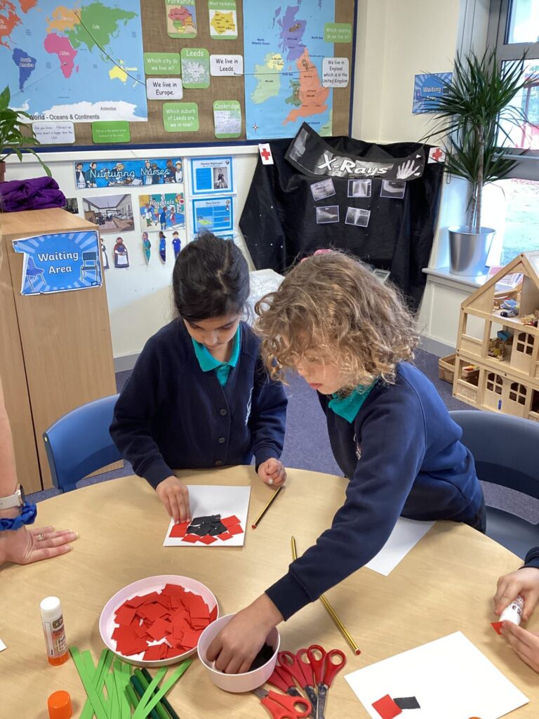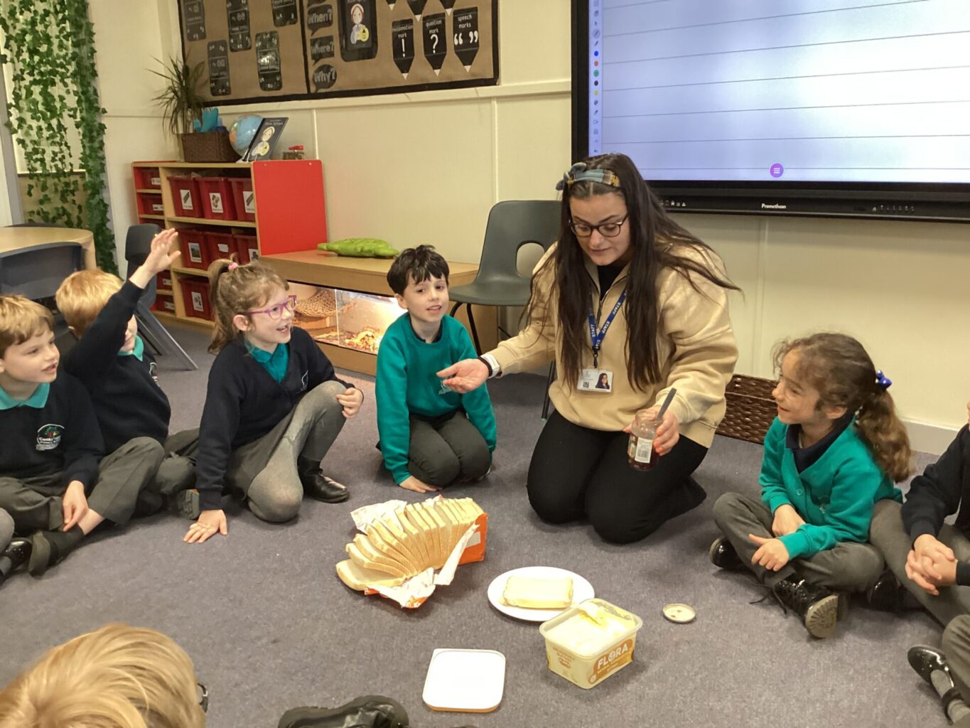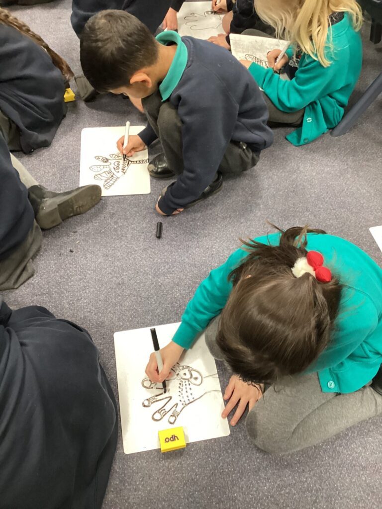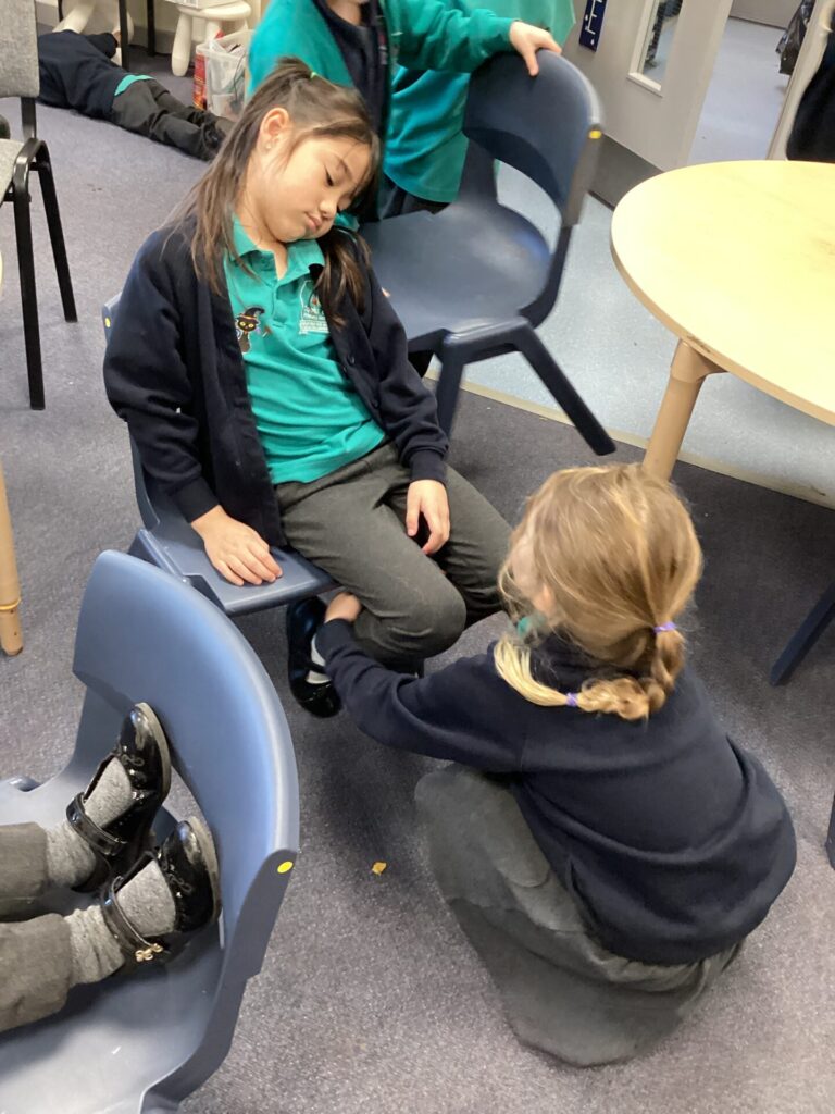 Class 2 were very lucky to have a visit from Iris’s Nanny who is a nurse. She showed them all kinds of equipment she uses when she’s nursing from thermometers and blood pressure monitors to torches and stethoscopes. She even brought in bandages and syringes (no needles!) for them to unwrap and use, explaining the importance of things being clean and used only once.