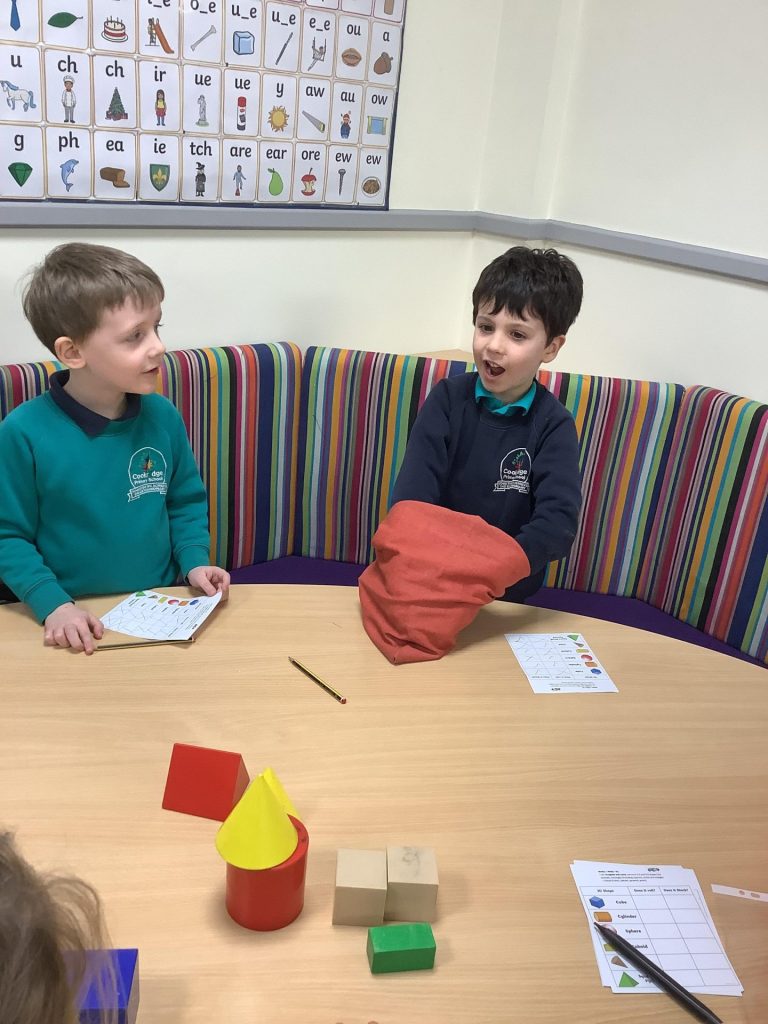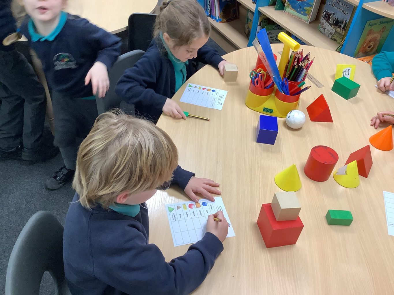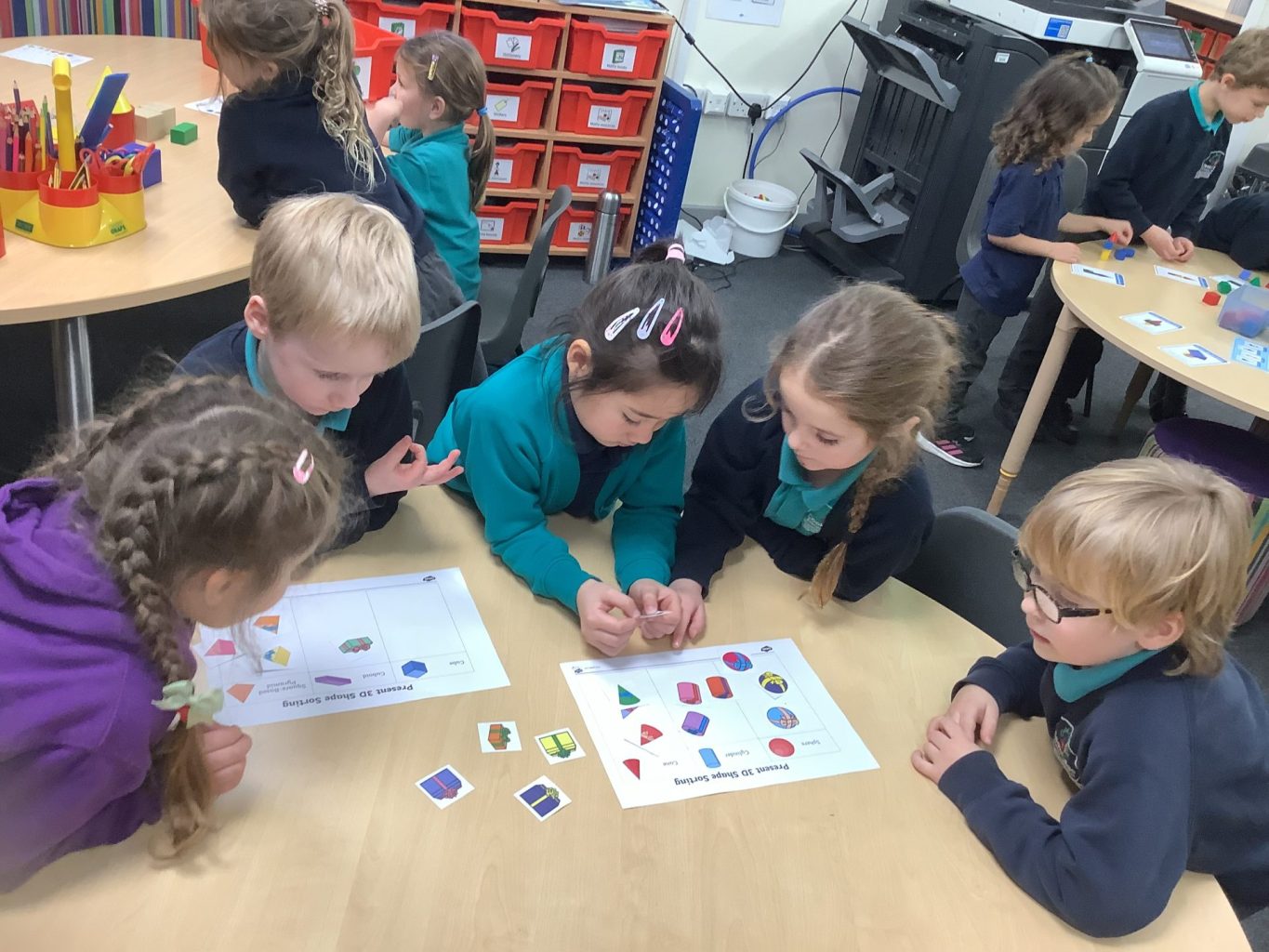 In Maths, Year One have been learning about 3D shapes. They have been learning their names and have been spotting them around the environment. Why not have a look around at home and see if they can identifying the shape of any objects. They have begun to look at some of the properties of the shapes, noting the shape of their faces etc.. Year two have been focusing on 2D shapes. They have been learning about and discussing the properties of shapes and seeing if they could identify the shapes by listening to its properites.
