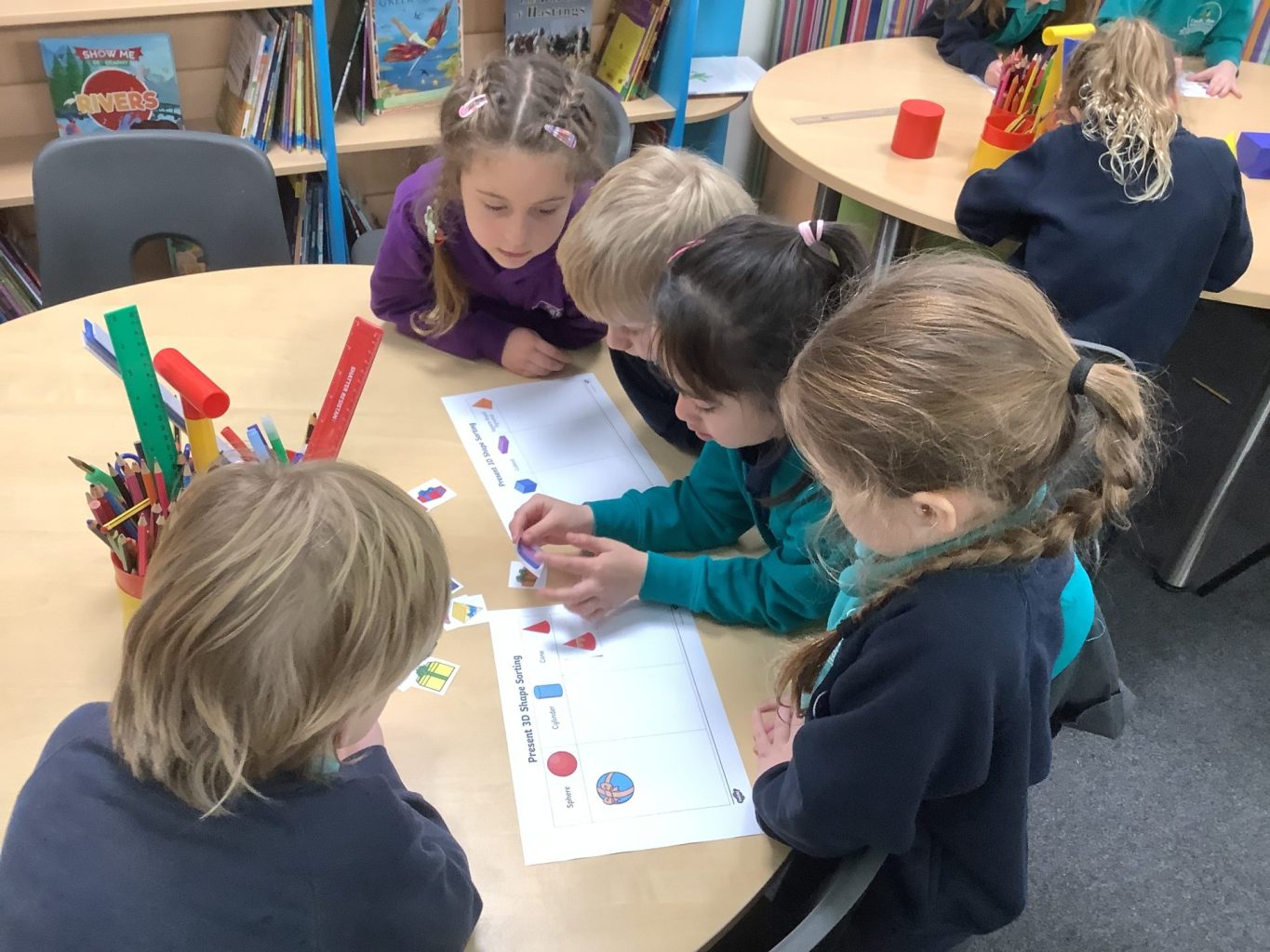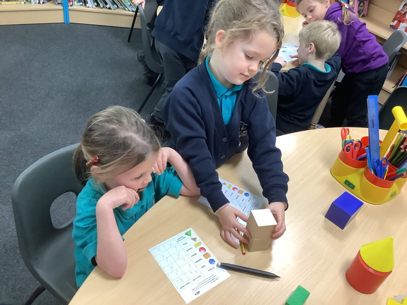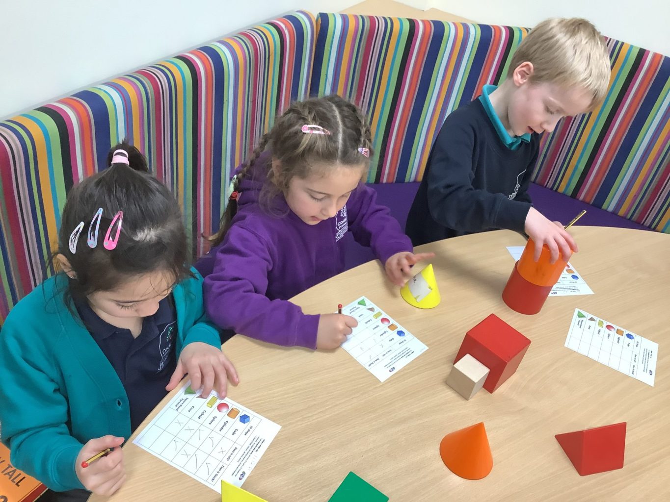 In Maths, Year One have been learning about 3D shapes. They have been learning their names and have been spotting them around the environment. Why not have a look around at home and see if they can identifying the shape of any objects. They have begun to look at some of the properties of the shapes, noting the shape of their faces etc.. Year two have been focusing on 2D shapes. They have been learning about and discussing the properties of shapes and seeing if they could identify the shapes by listening to its properites.