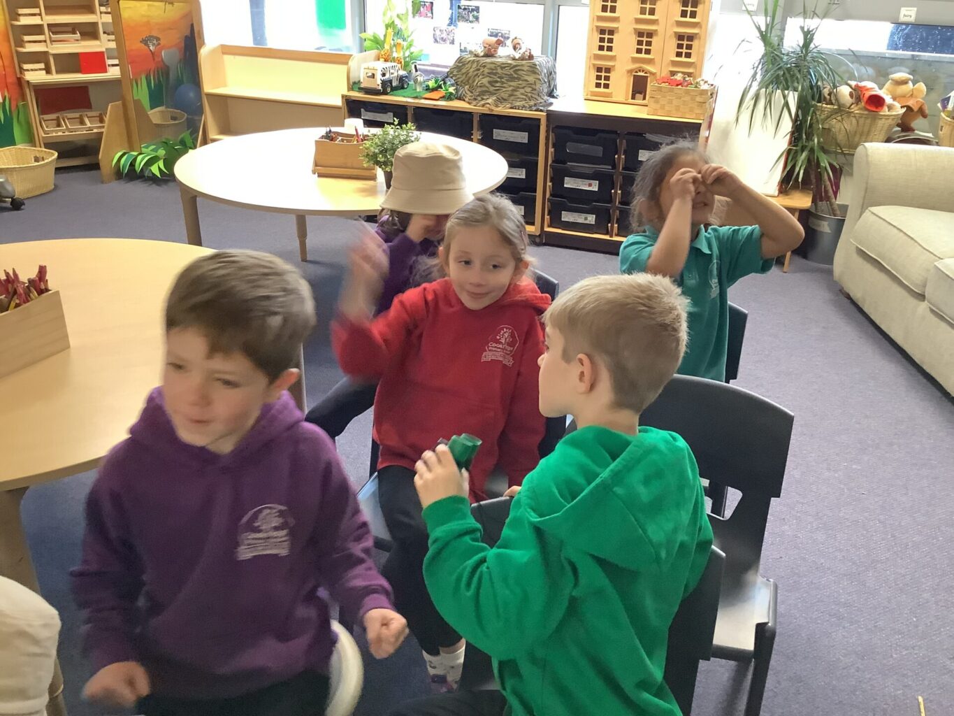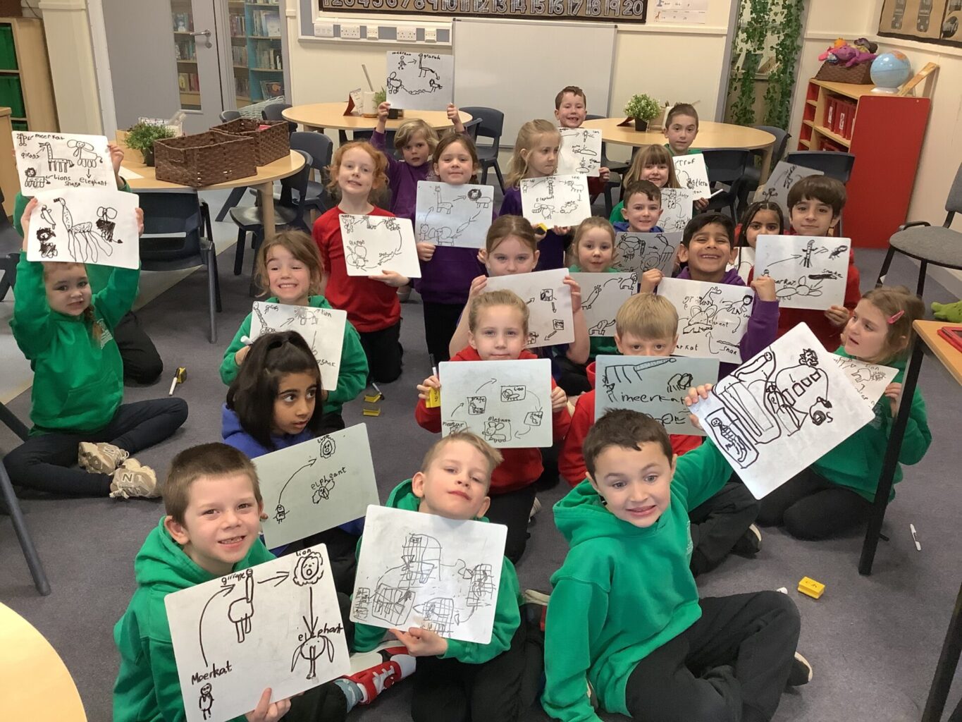 In English, Year One continued to order pictures chronologically and Year Two have continued to use the past tense. We have used the book ‘African Savannah’ and read a diary entry from someone who had been on a safari and then ordered their pictures from which animal was seen first to last. They then used these pictures to write sentences about the animals. We also used the ‘Now Press Play’ system to follow someone on safari and acted out our own safari adventures.
