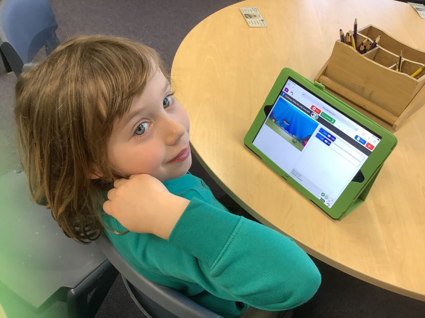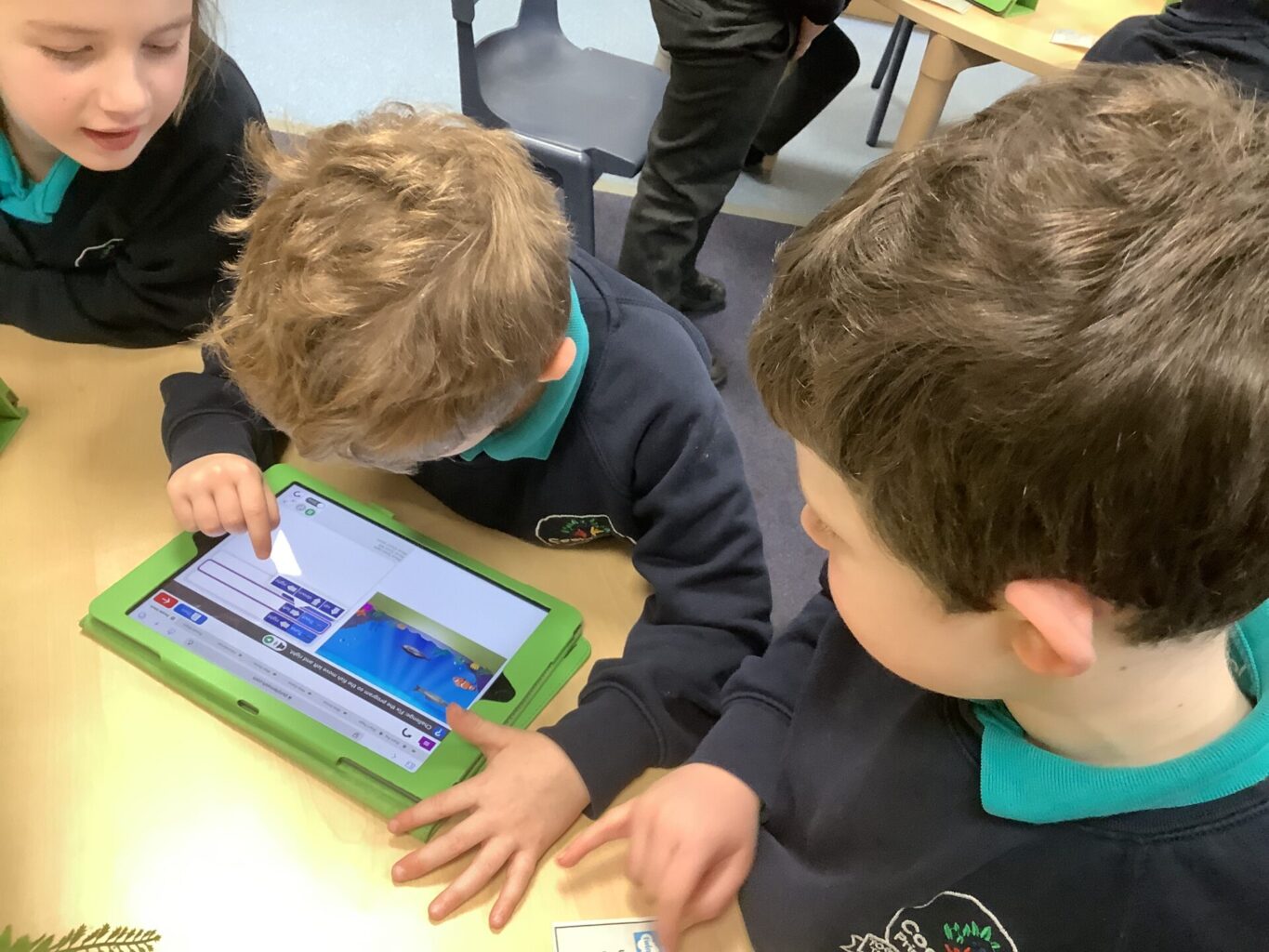 In computing, we have been learning to code. We understand the importance of algorithms and how they need to be clear and precise. We put this into practise using 2Code on Purple Mash. We followed instructions for selecting fish and telling them which way to move. We were able to run the program and see if the fish were doing what we needed them to do. If they were moving down instead of right for example, we had to go back and work out what we needed to change in the coding process to correct it.