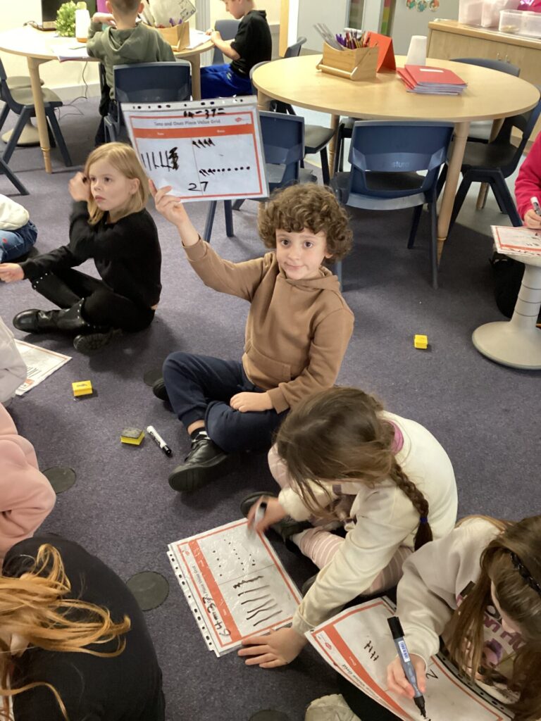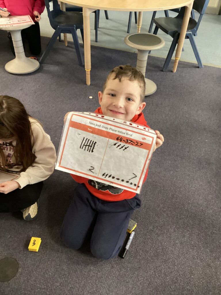 In maths, Year One have begun to work on subtraction, understanding that we start with the whole and remove a part. They have used language such as minus, take away, subtract, less than and left. They were able to solve number sentences using numberlines, part whole models and pictoral problems using things like ten frames. In Year Two, one group have been solving subtraction problems and learning how to exchange. They have been using Base 10 and drawing tens and ones onto place value charts. The other group have been solving missing number problems, thinking about how to use the inverse to find the number. They have used column addition and subtraction and been explaining what they need to do and why.