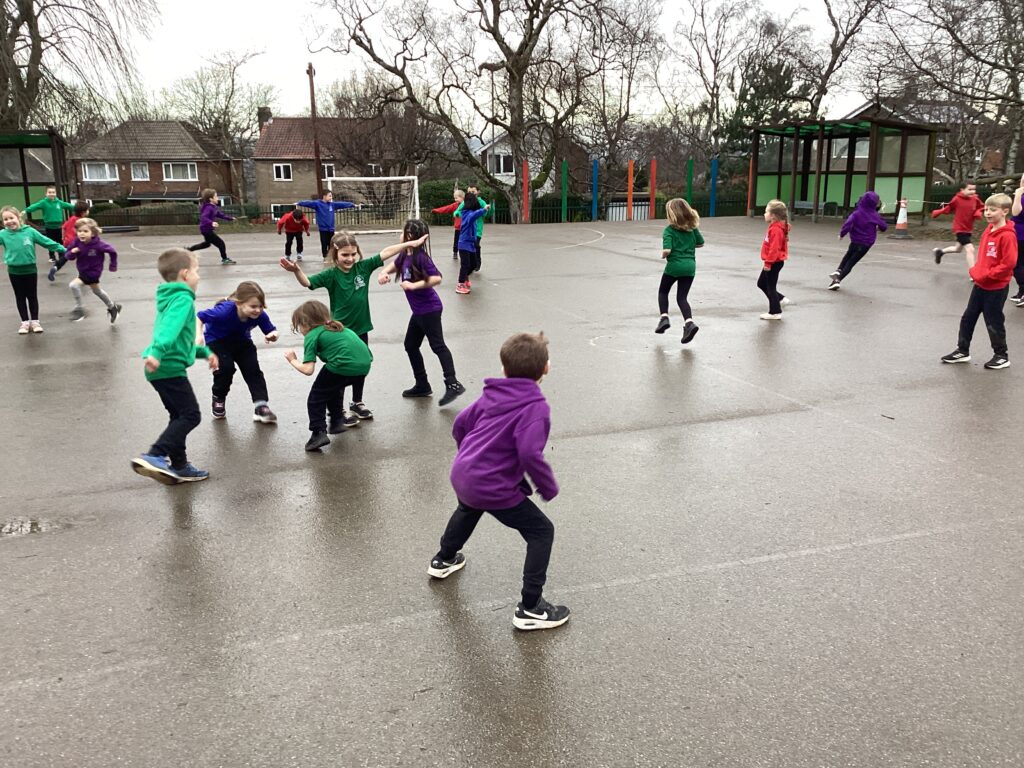 We have been learning how to pay invasion games in PE. We have been playing games such as domes and dishes and gold in my den, where the children have to work on teams to change all the cones to domes or dishes and steal gold from other groups dens whilst defending our own. We began to realise how quick we needed to be and how aware of people in other groups.