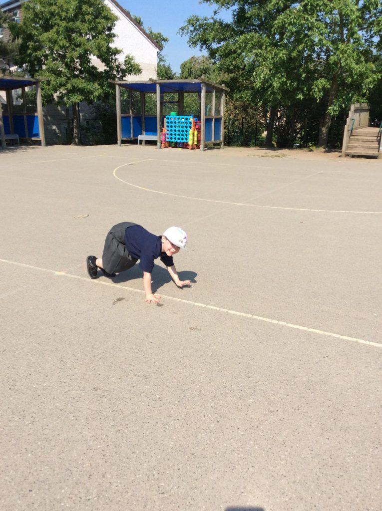 Art has provided a hunt in the garden this week playing deadly squibs! The children designed lizards, using colours, patterns and textures to camouflage them. They then hid them around the garden for the other children to find.