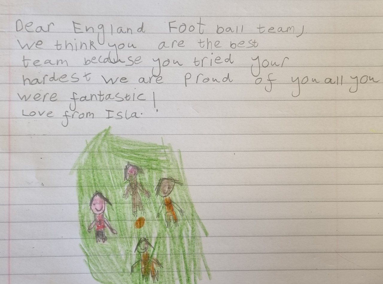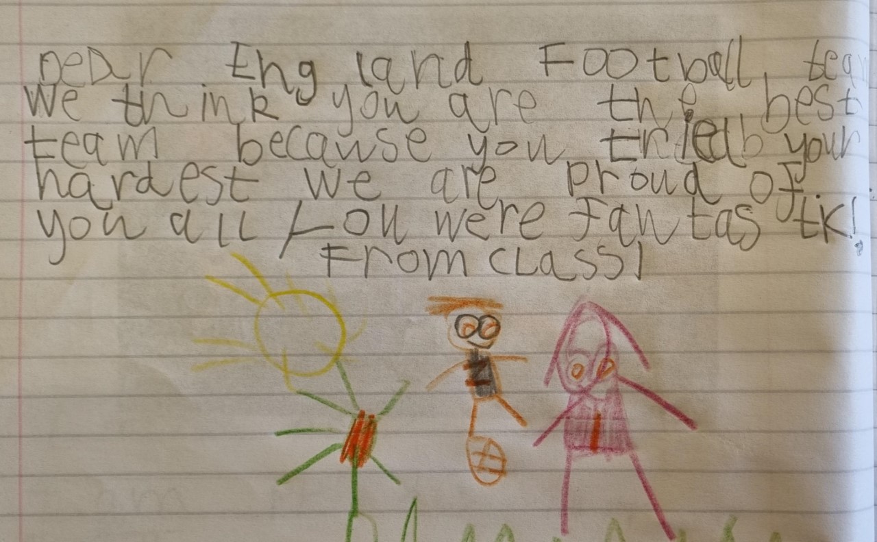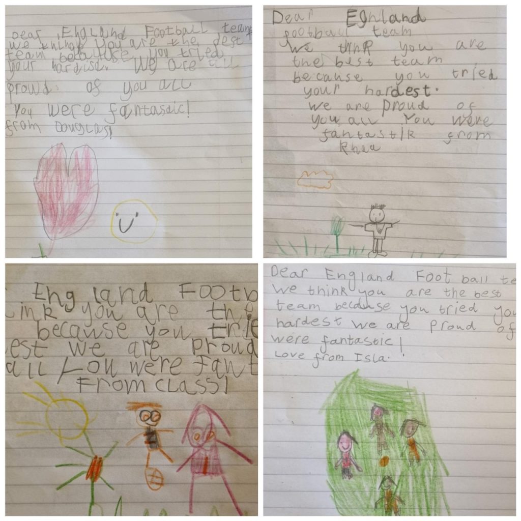 We have used these experiences in both year one and two for our writing in English. Year one have been writing recounts, focusing on joining two sentences about what they did using the conjunction ‘and’. Class 1 also wrote letters to the England team to encourage them after representing us in the football finals last Sunday! Year two have been focusing on writing in the past tense and using the correct regular and irregular past tense verbs.