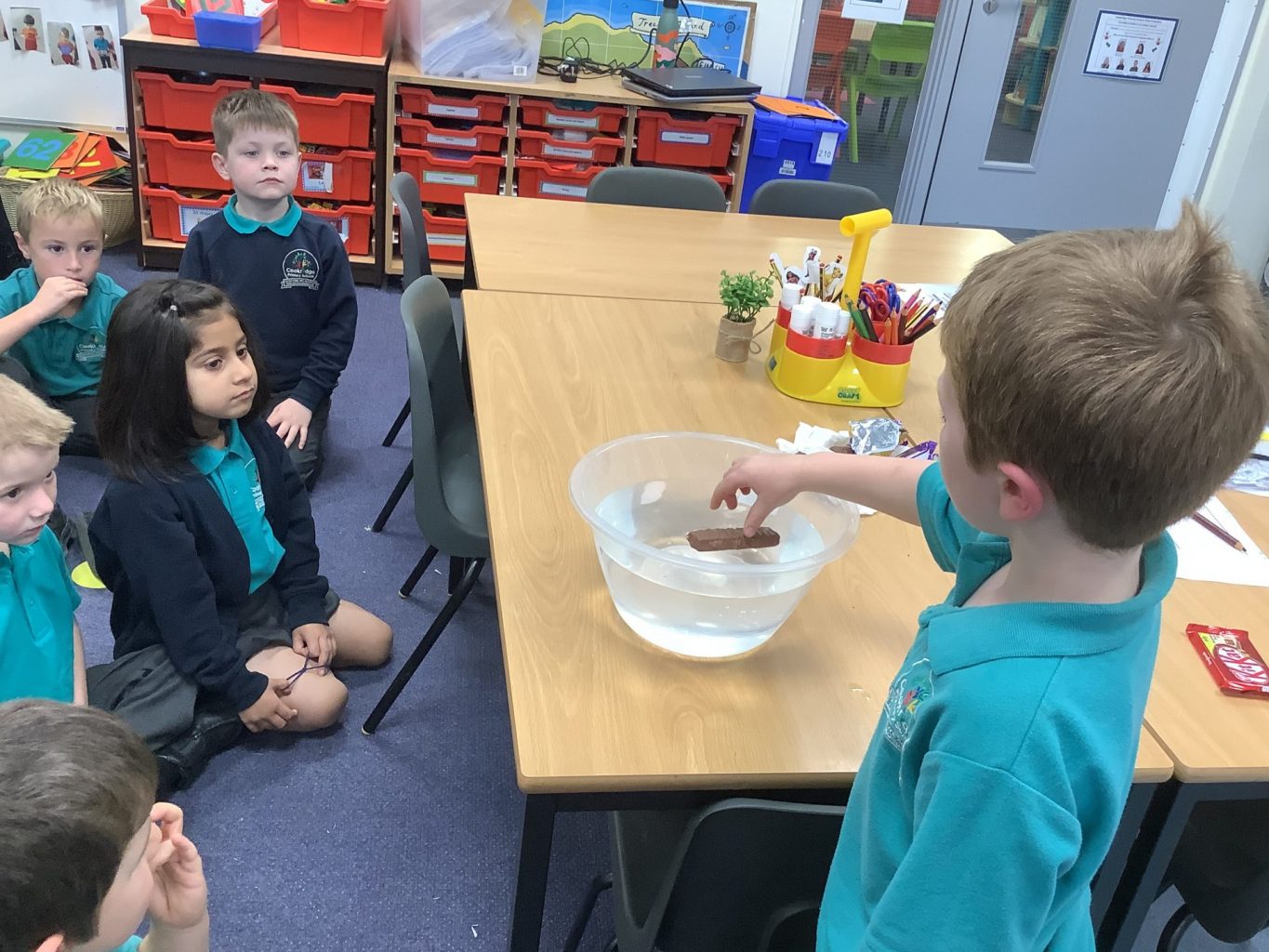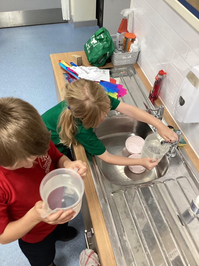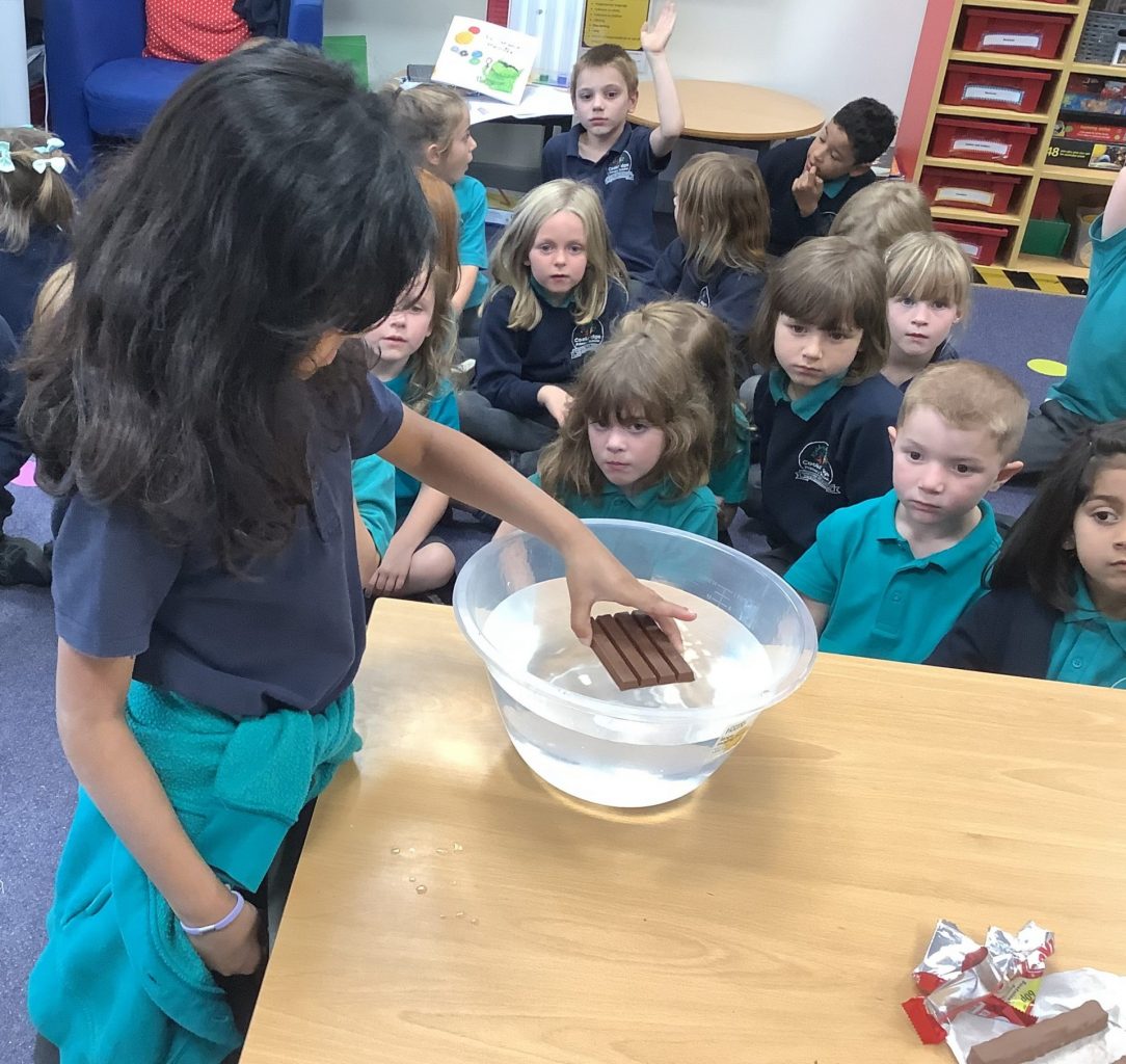We enjoyed experimenting in Science, as we asked questions about floating and sinking. We used chocolate bars to see which would float and which would sink. They were amazed that they all floated and one suggestion was that maybe it was the chocolate that made them float! We discussed the fact that it is about the density of an object and how tightly packed together the molecules are. Some children wanted to test other objects, so why not have a go together at home!
