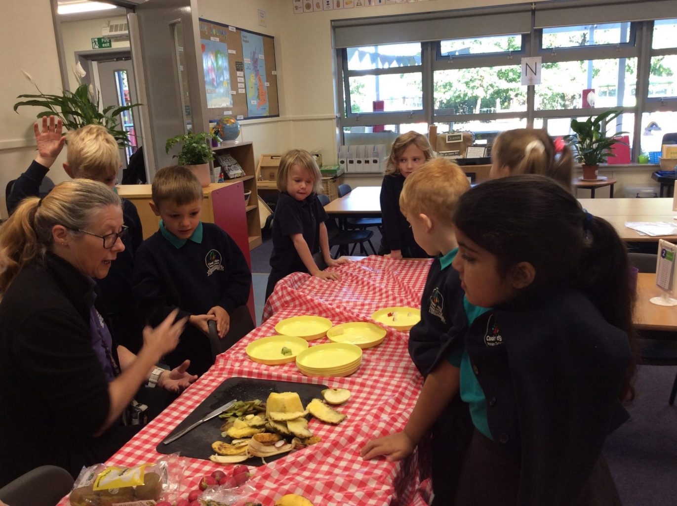 The children were able to explore the art studio with Mrs Ledda and the groups were all split into two to do some DT skills with Mr Joy in the polytunnel and to do some food tasting with Mrs Williams in the kitchen.
