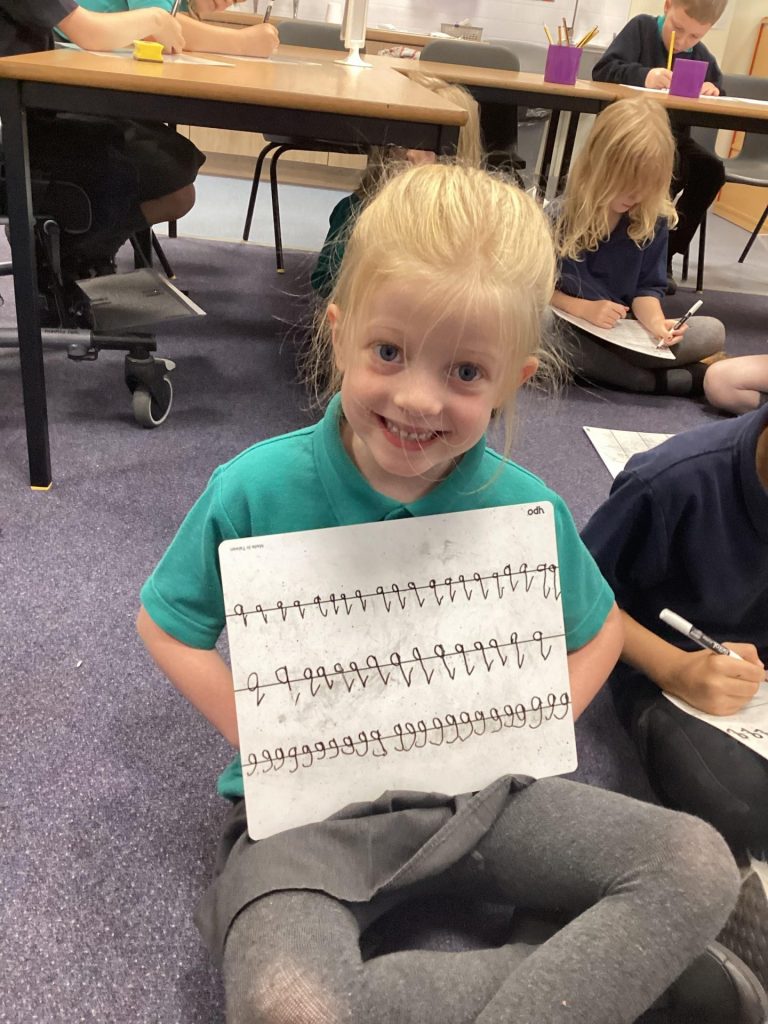 In Key Stage one this week we have continued to look at the ‘Colour Monster’ book. We have been making blow painting monsters and thinking about how they are feeling, depending on their colour. We also wrote about colour monsters and in year two extended their sentences to think about why the monsters were feeling the way they were. We are also starting the year by practising our handwriting, ensuring that the children’s letters are formed correctly, starting and ending in the correct place and sitting correctly on the line.