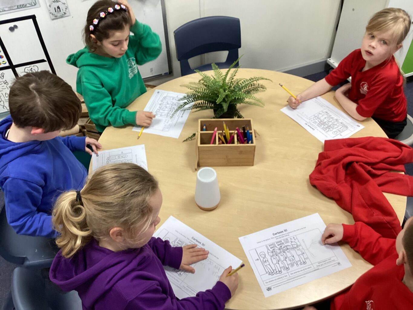PSHE for Year One, was building on their knowledge of the pants are private rule. They discussed what to do if someone made them sad. They thought about a little problem, like someone pushing in the line and how they could sort that themselves. They moved onto to thinking about what they should do if they had a big problem, especially if involved an adult and how they could talk to another trusted adult. Year Two was looking at goals they could set themselves for life. For example what job they would like, where they would like to travel to, what kind of house they would like etc… They looked at a variety of goals and after discussion ranked them from most to least important.