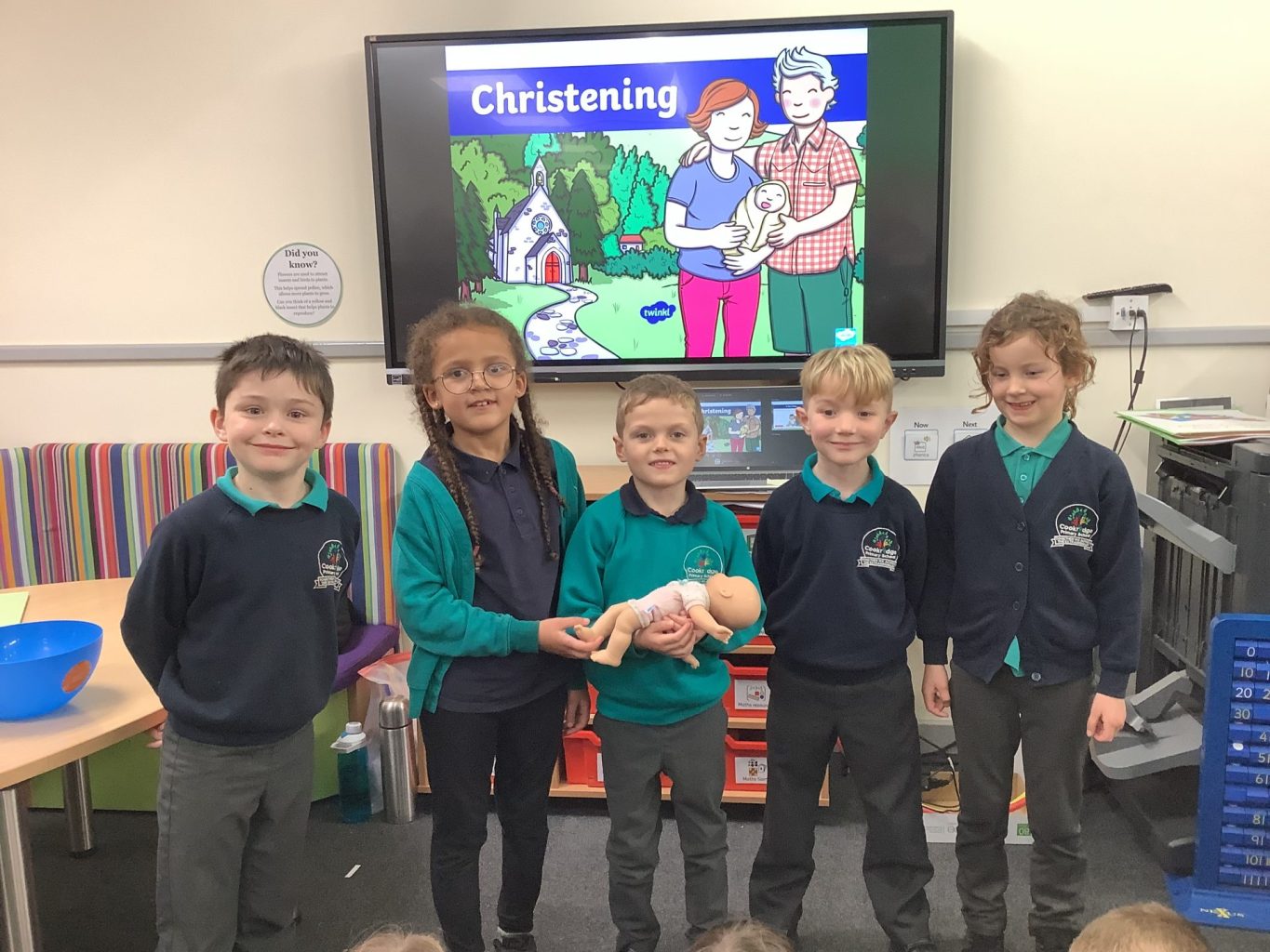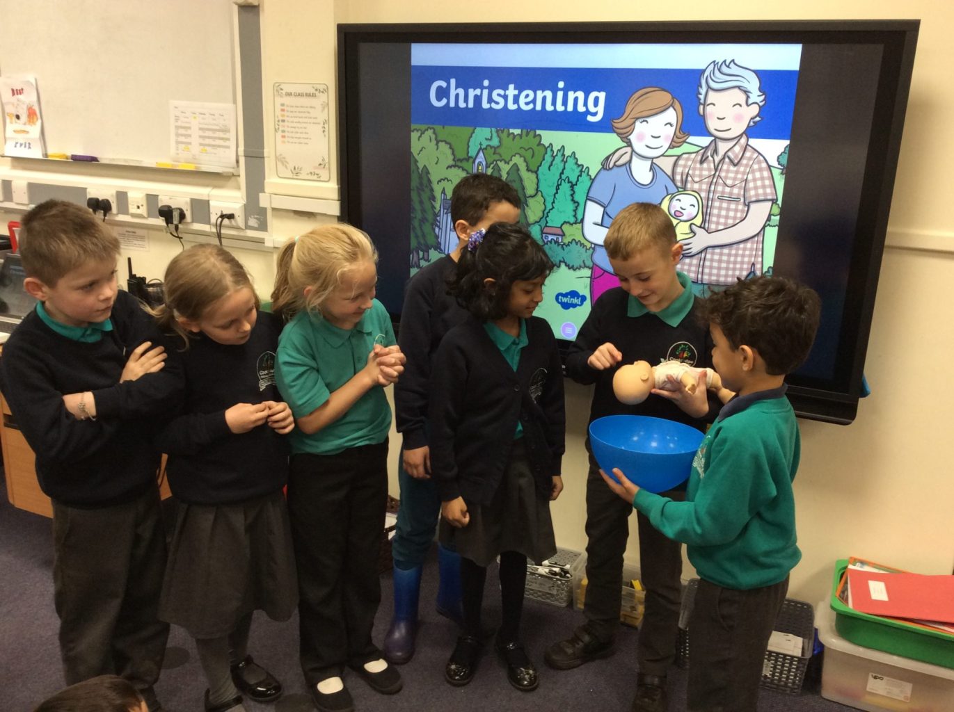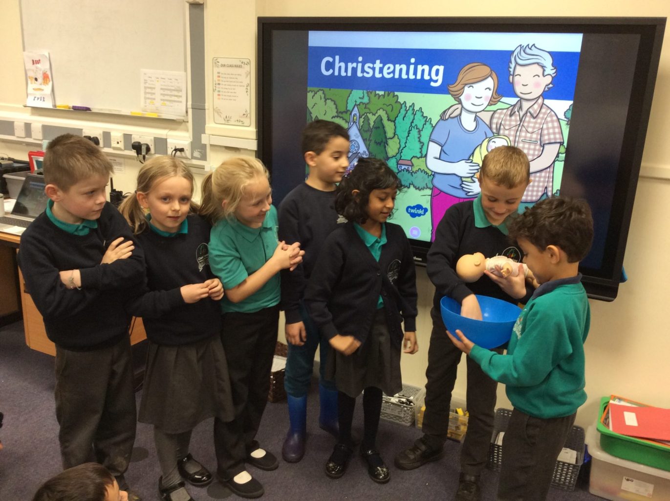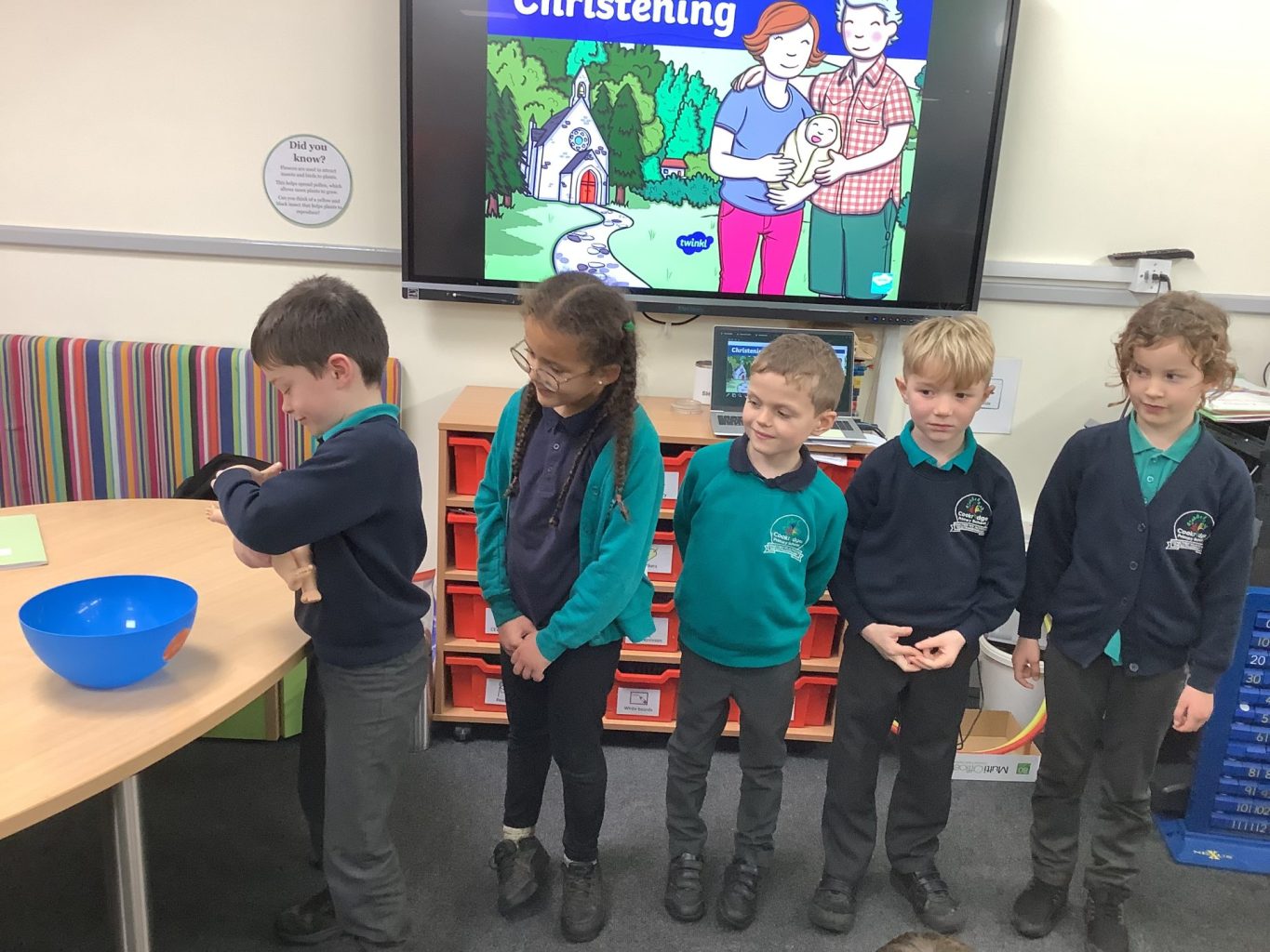 In RE, Year One were learning about Muslim festivals. They learnt about Ramadan and the two Eid festivals. They looked at how these festivals are celebrated with food, time with family and friends, gifts and other traditions like mehndi hand patterns. Year two began looking at how people in the Christian faith welcome babies. They learnt about the service called a Christening (or baptism), how a baby will have water or oil put on their heads around a font and about other practises such as lighting a candle.