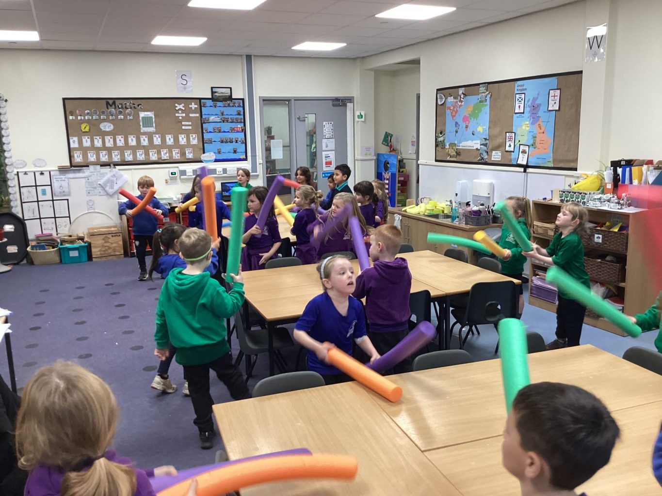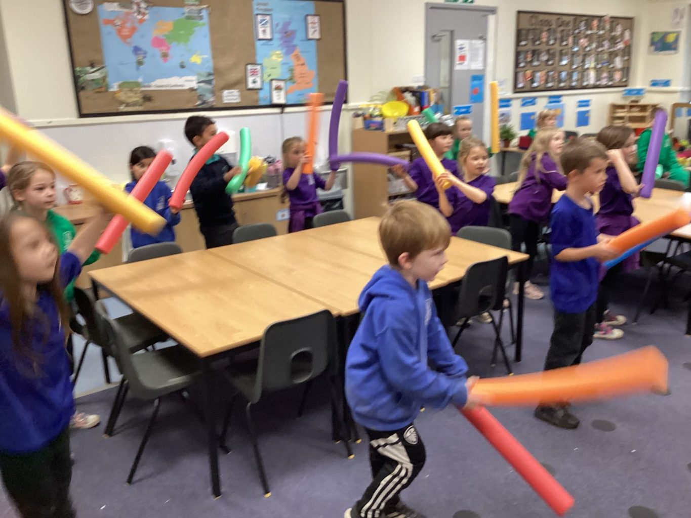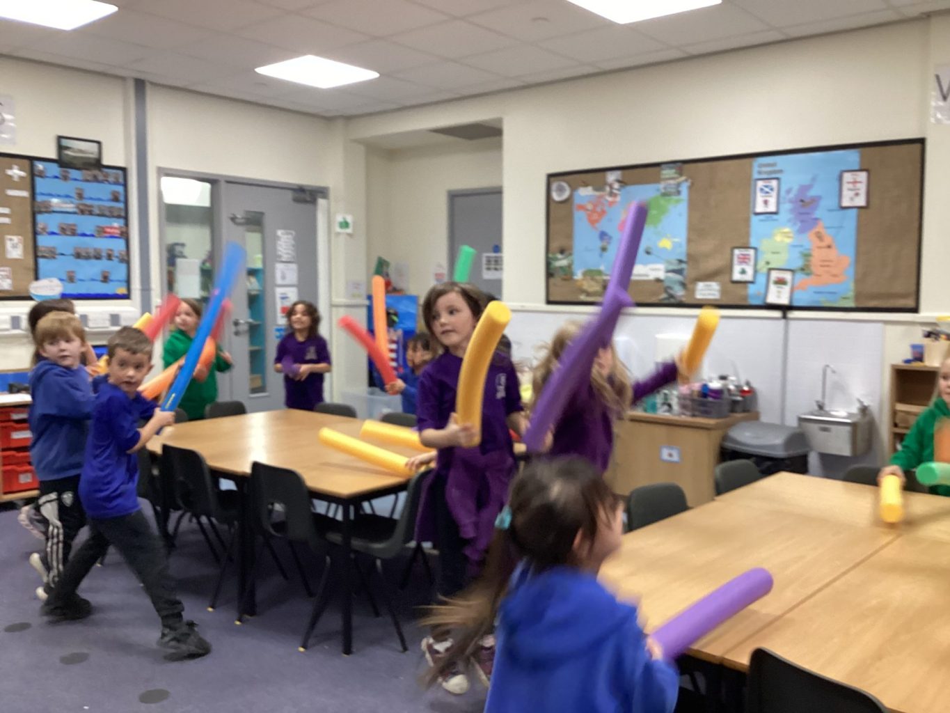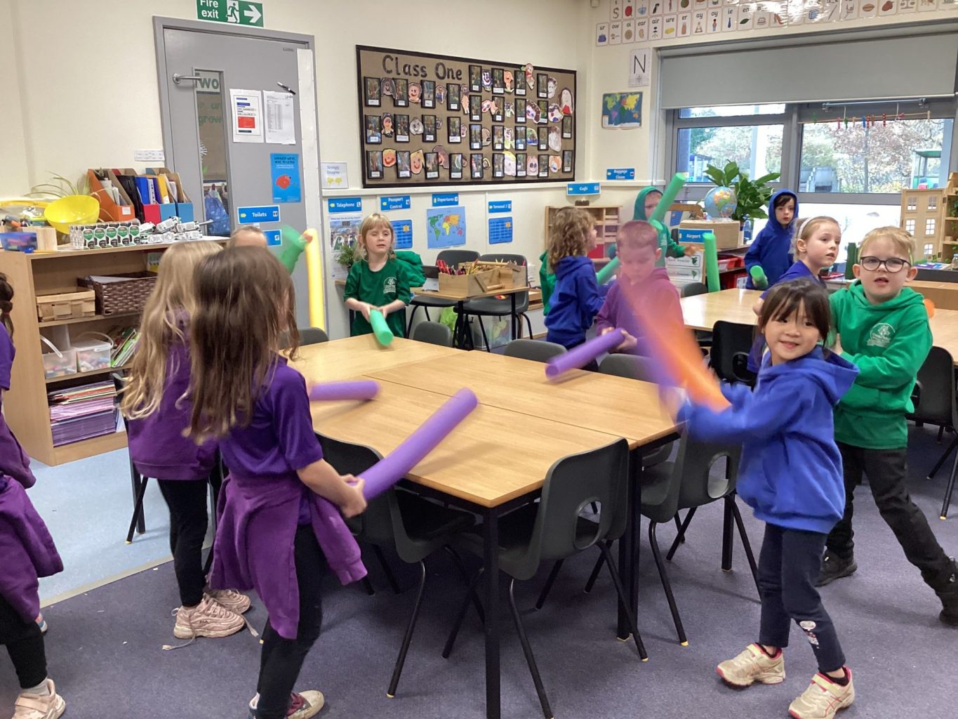 In Music, Year One, the children read the book ‘Leaf man’. They listened to some music around it and made up movements behaving like leaves. They then made rhythmic patterns using leaves, sticks and conkers. Year two began the Nutcracker story. They listened to the story and then created a wintery sound scape using the first pictures from the book.