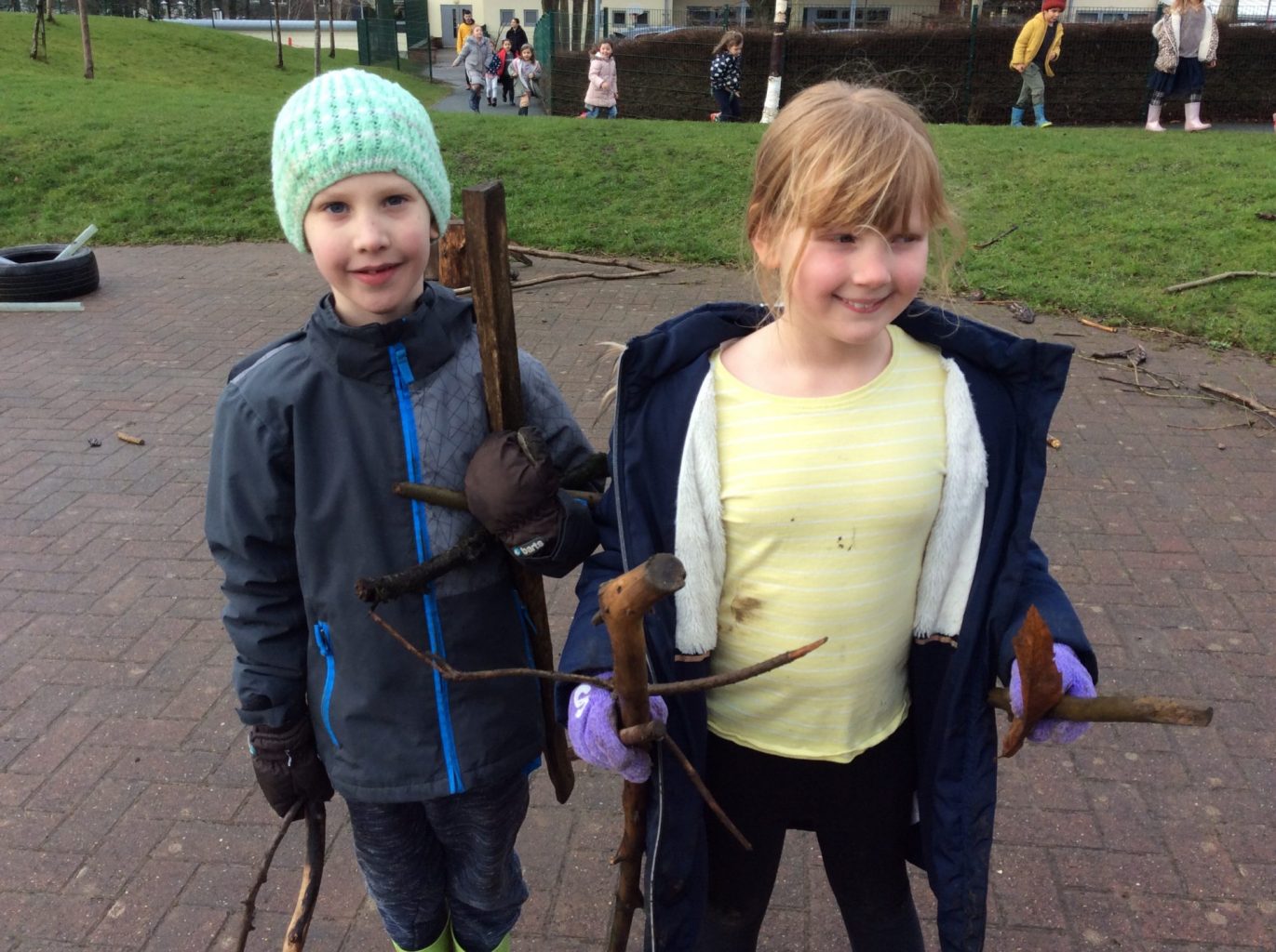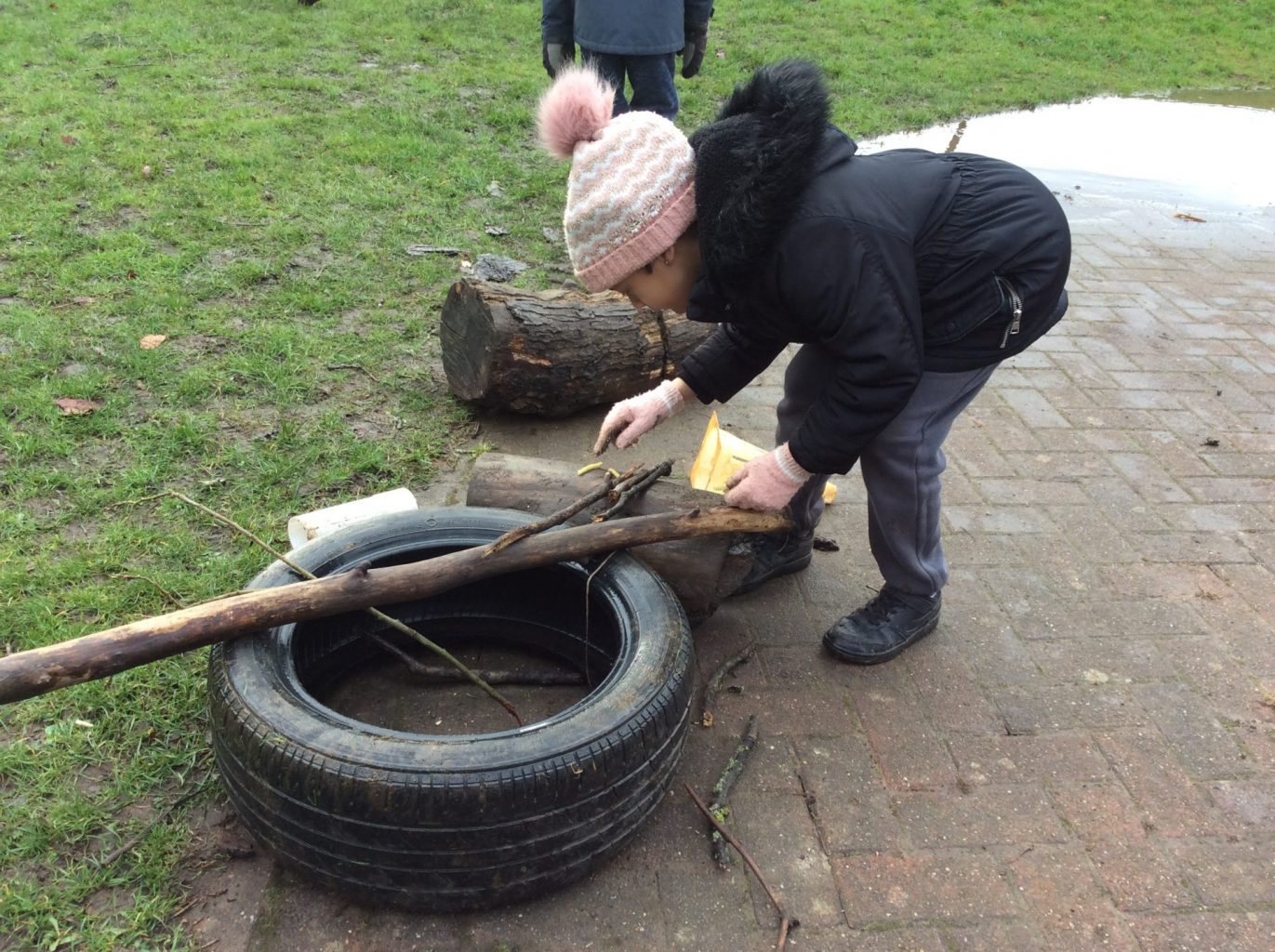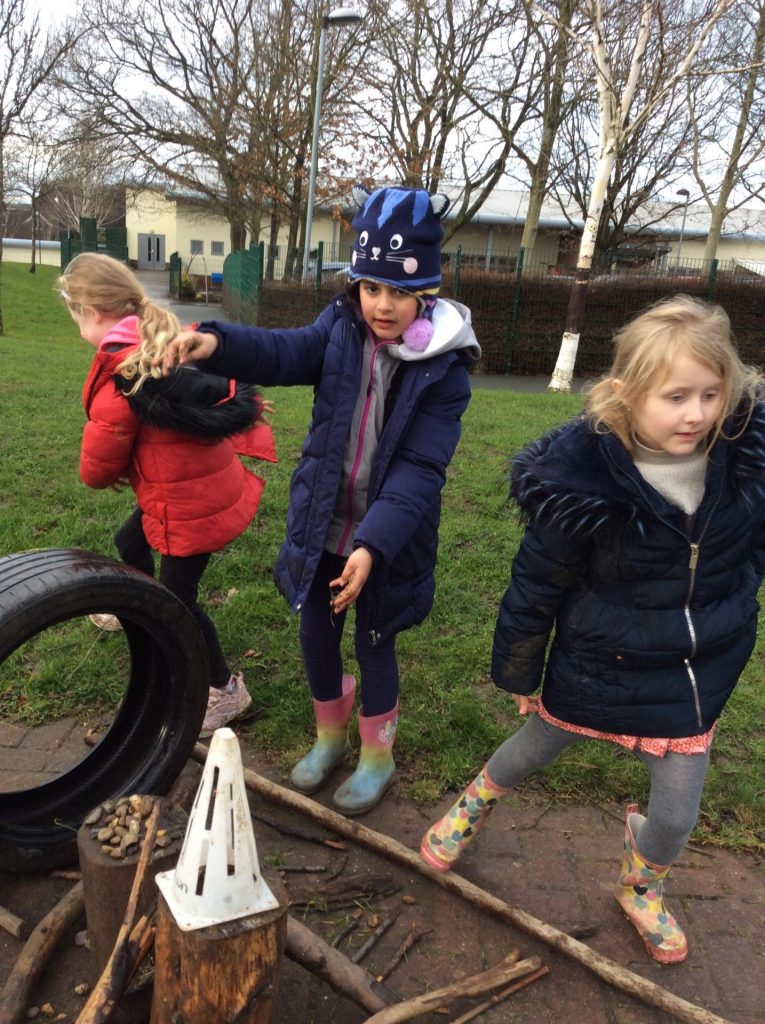 After a very wet morning, we were able to get up to the Forest schools area later in the day. Year 2 were finding natural items and loose parts, to use to make parts of the solar system. They were able to tell us about which planets they had created and other things they might find in the solar system, like black holes.