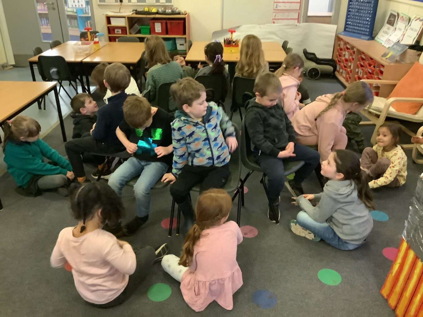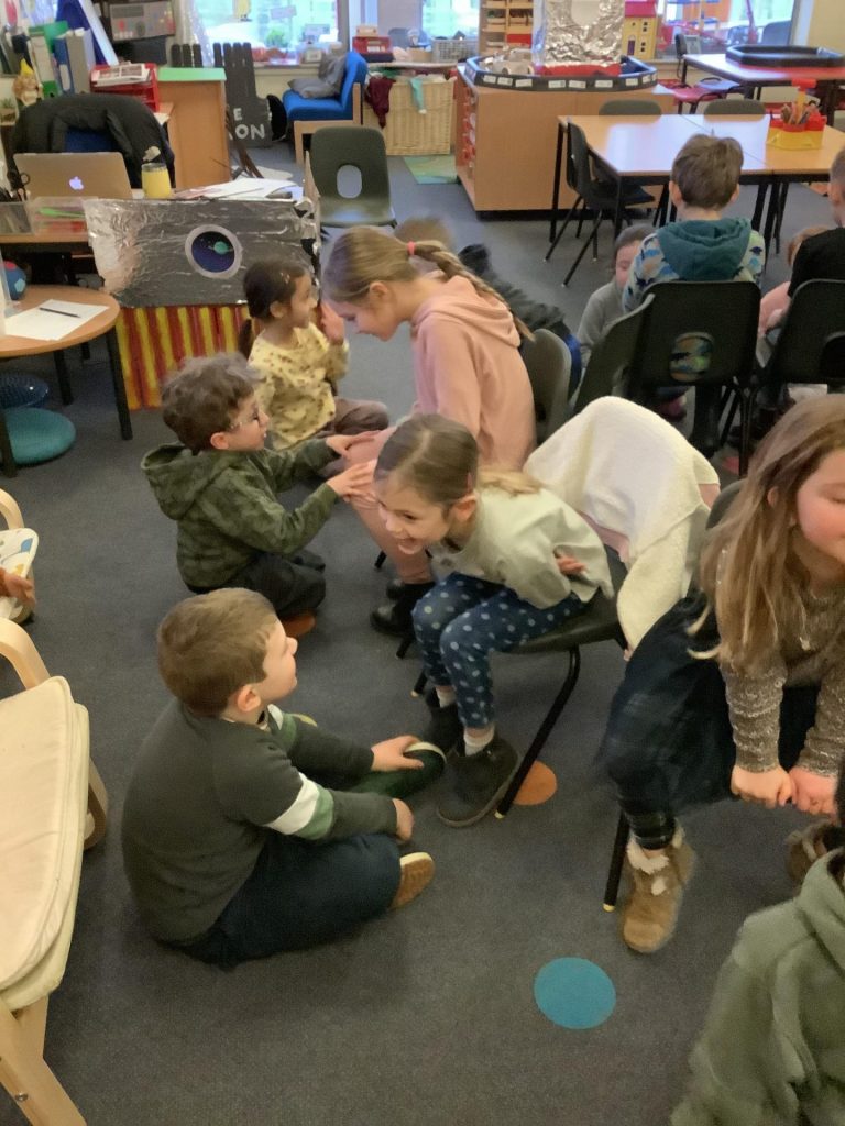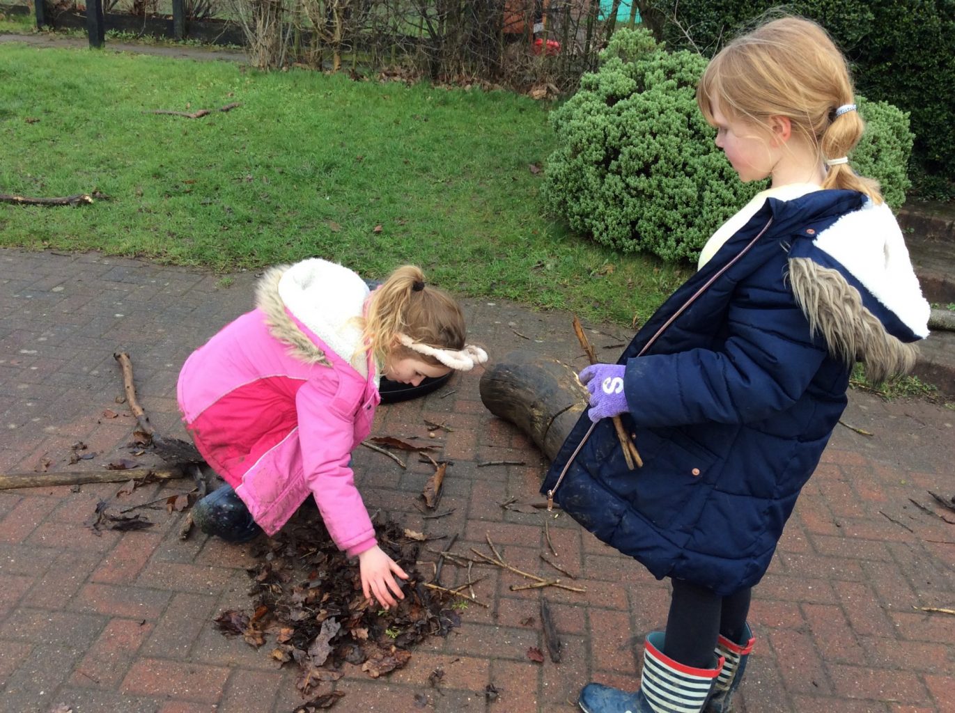 After a very wet morning, we were able to get up to the Forest schools area later in the day. Year 2 were finding natural items and loose parts, to use to make parts of the solar system. They were able to tell us about which planets they had created and other things they might find in the solar system, like black holes.