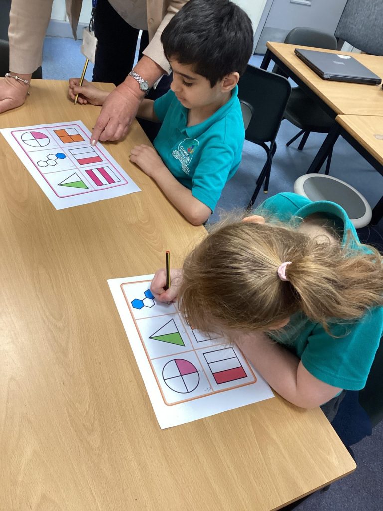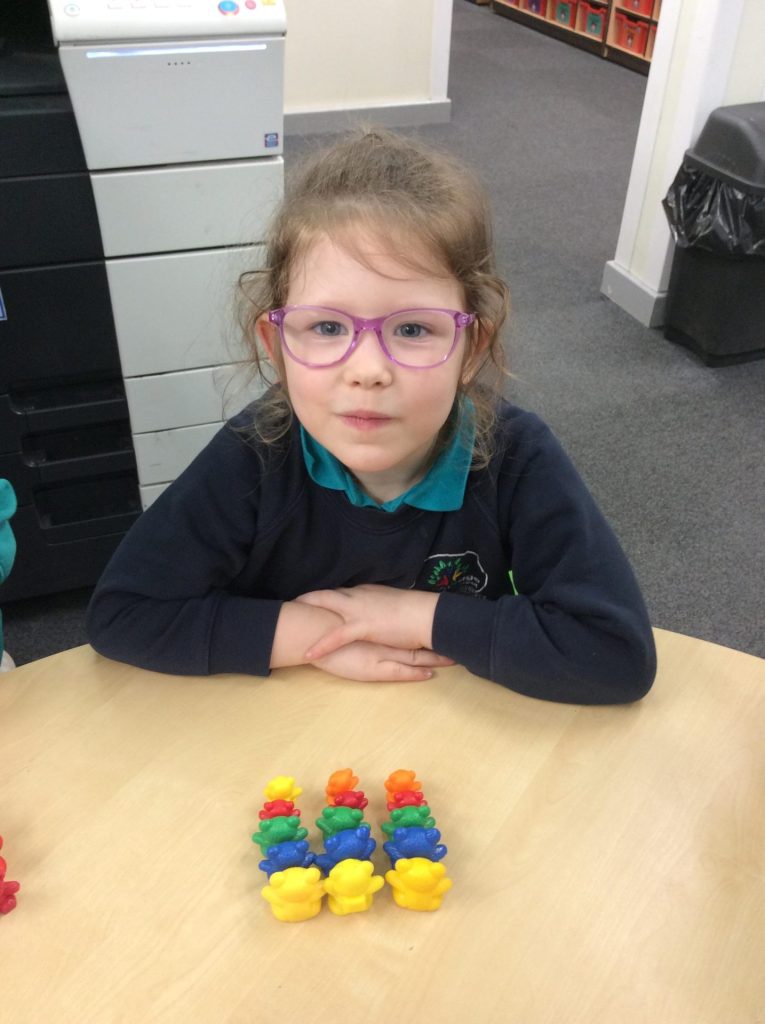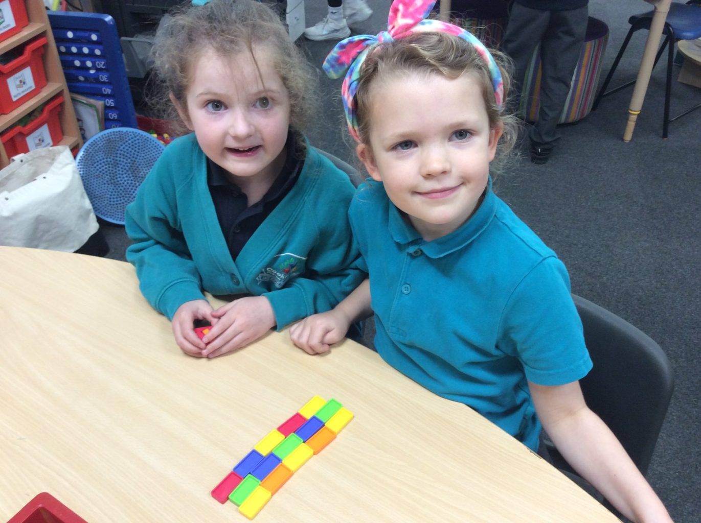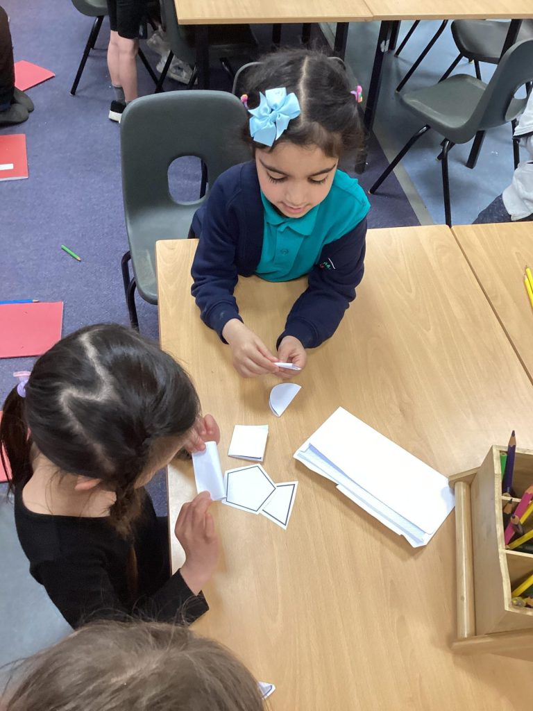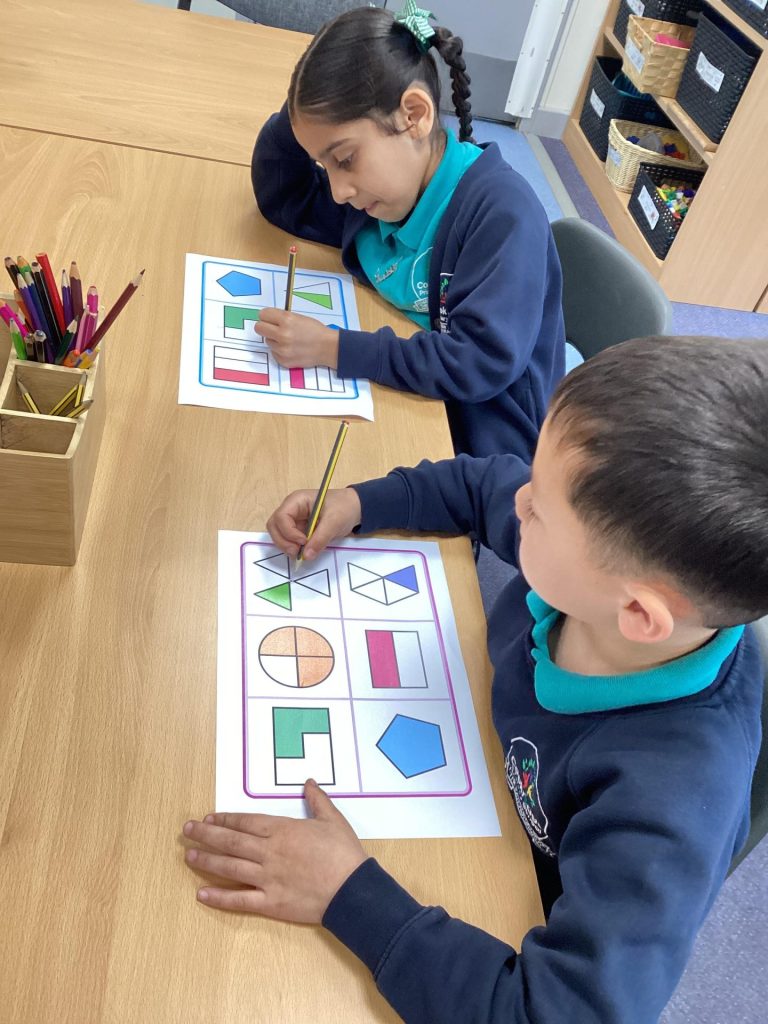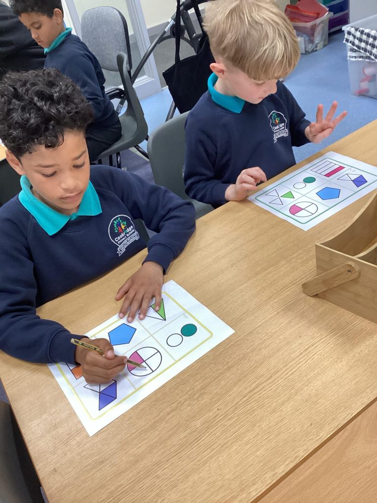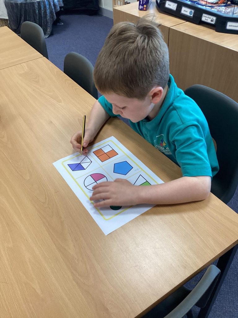 Year One have been learning about arrays and grouping this week in Maths. They have been looking at how it is easier to count a group when it is laid out in an array and how each of the groups must be equal. In Year Two, one group have been consolidating their knowledge about fractions and have been answering reasoning questions about fractions.