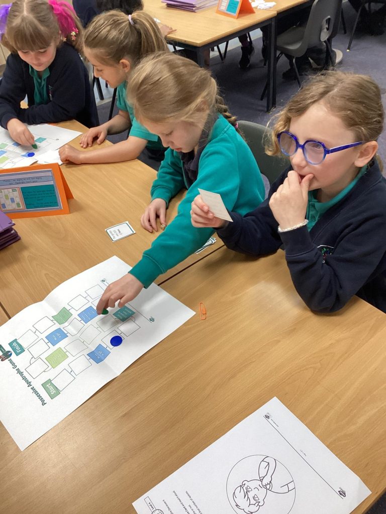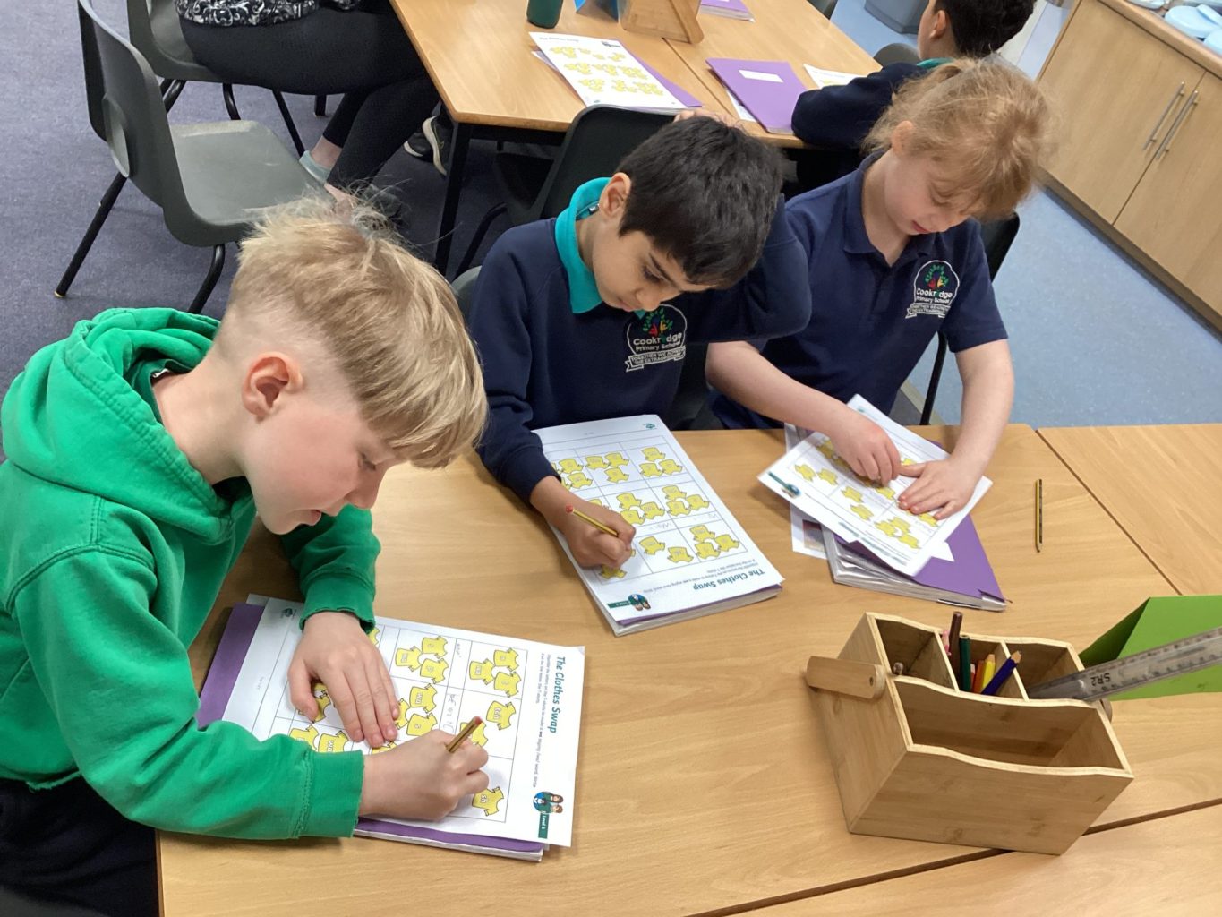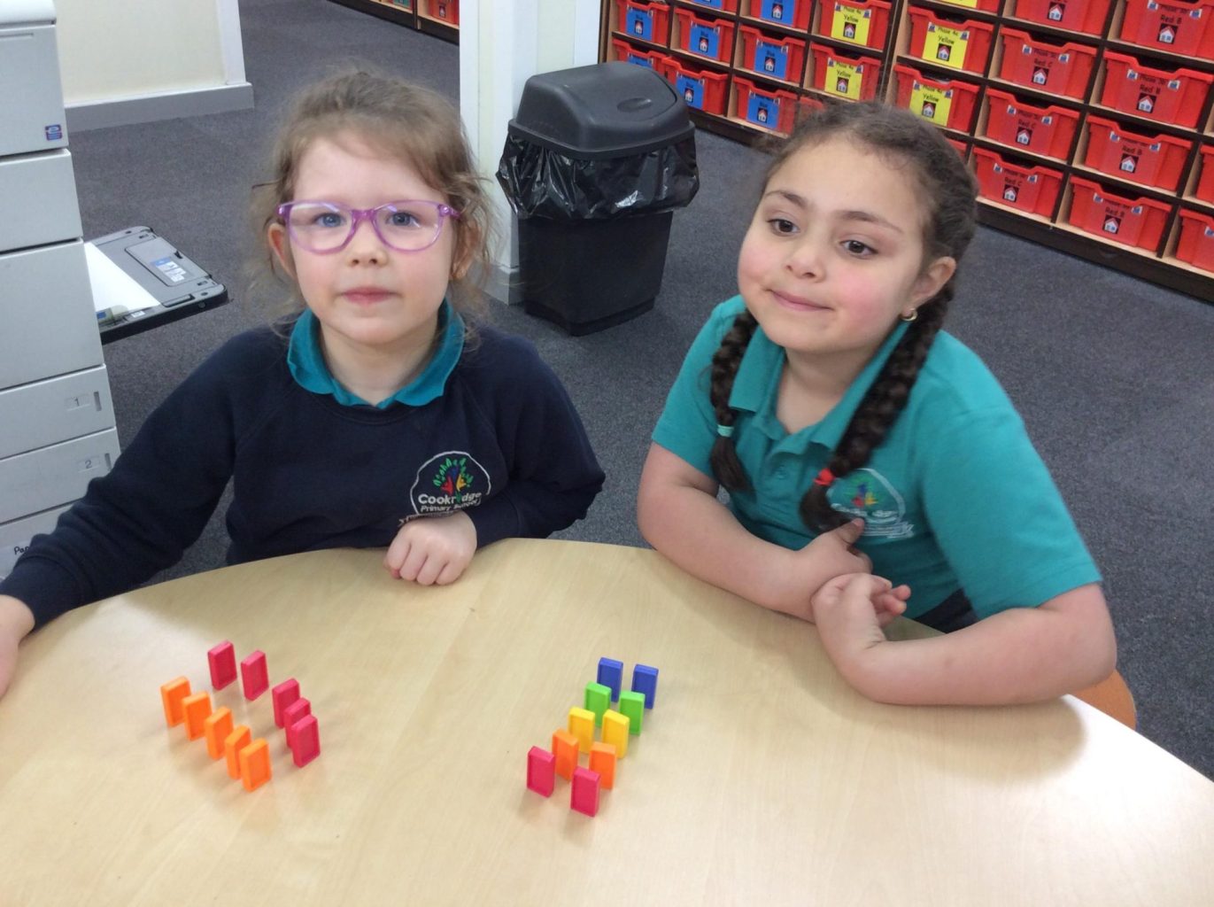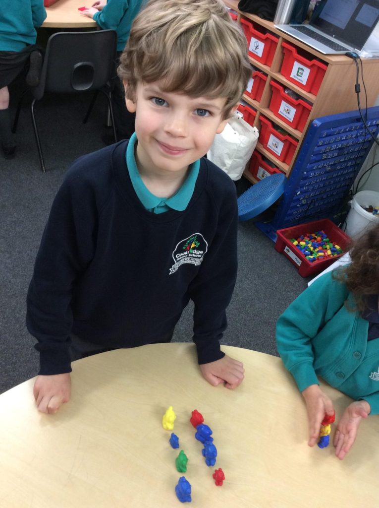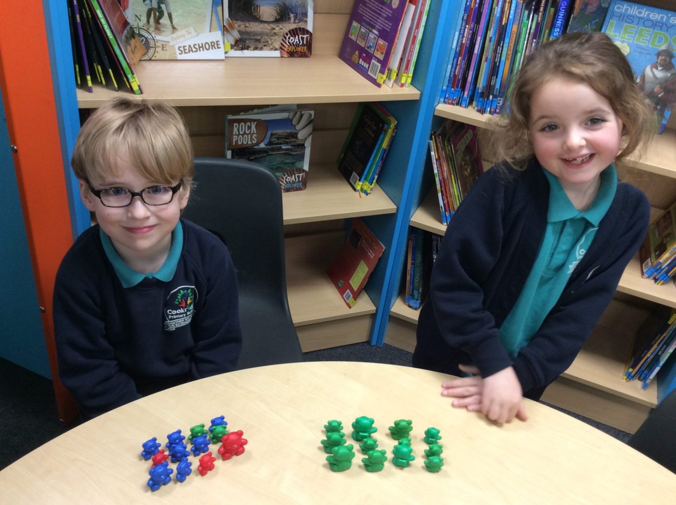 Year One have been learning about arrays and grouping this week in Maths. They have been looking at how it is easier to count a group when it is laid out in an array and how each of the groups must be equal. In Year Two, one group have been consolidating their knowledge about fractions and have been answering reasoning questions about fractions.