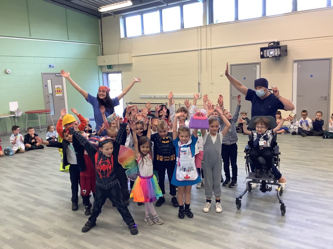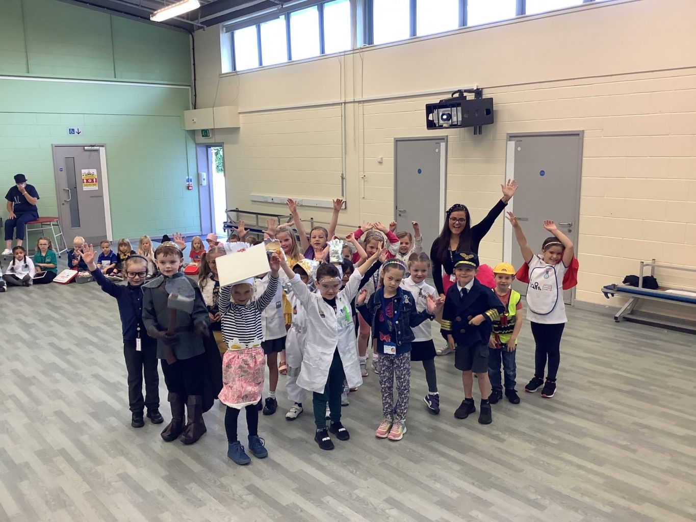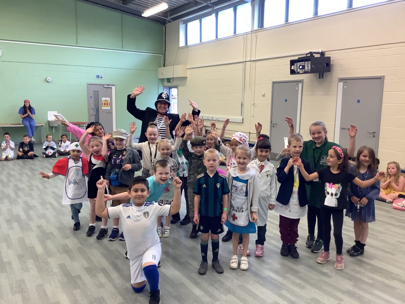 Our English has continued to be focused around these books, looking at all kinds of crazy and wonderful things we might like to do our be. Year 2 have been creating masks of animals they would like to be and writing about how they were made. They then wrote about whether they would like to be really big or small, where they would travel to etc.. and why. In Year one, they were imagining crazy things they could do and having a go at them, like writing with their feet. They then went on to write about what they had done. The week has ended with the children imagining what they would like to be when they grow up. It has been fabulous to see them all in their creative costumes.