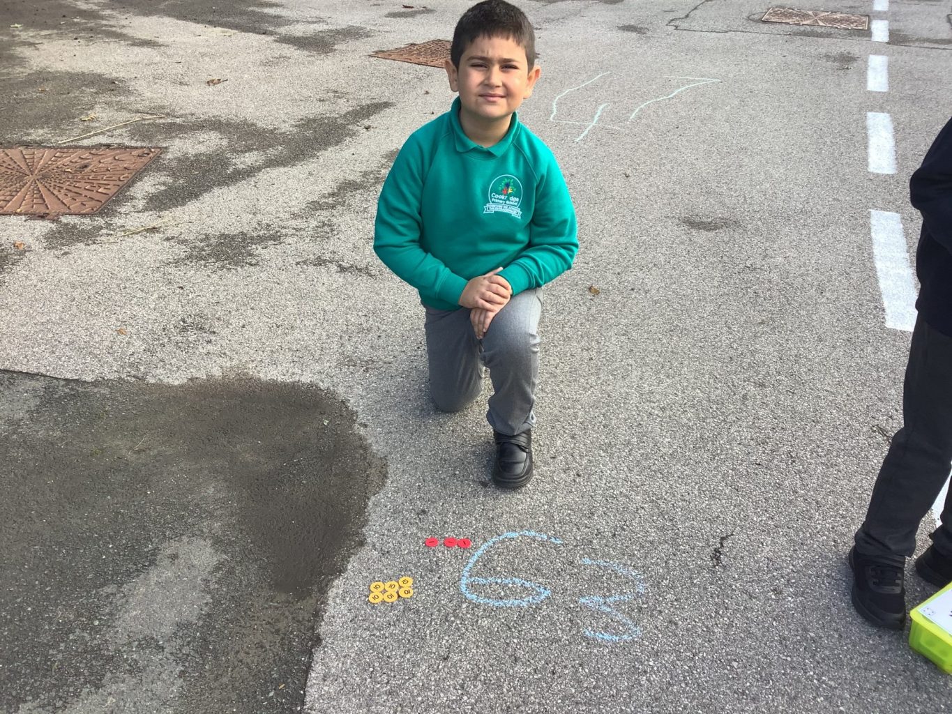 In Maths we have all been focusing on Place Value, ensuring the children understand the difference between tens and ones and their place in a number. We have been representing these numbers both indoors and outdoors using a variety of resources such as Base 10, Numicon, money, Counters etc…