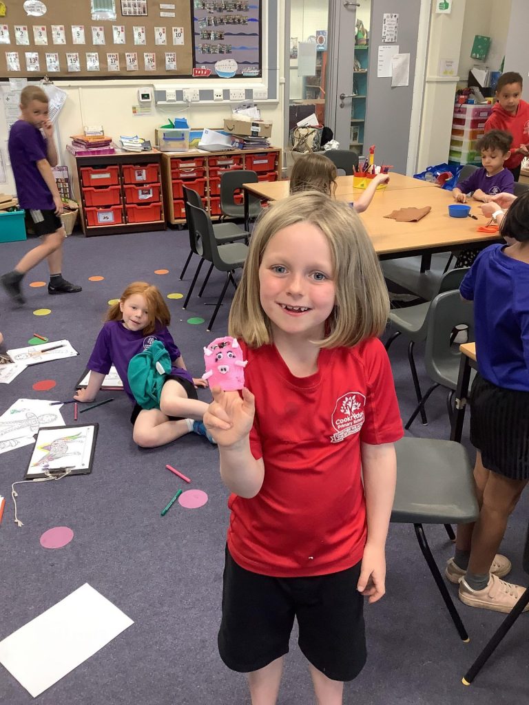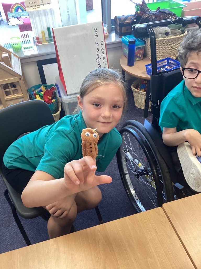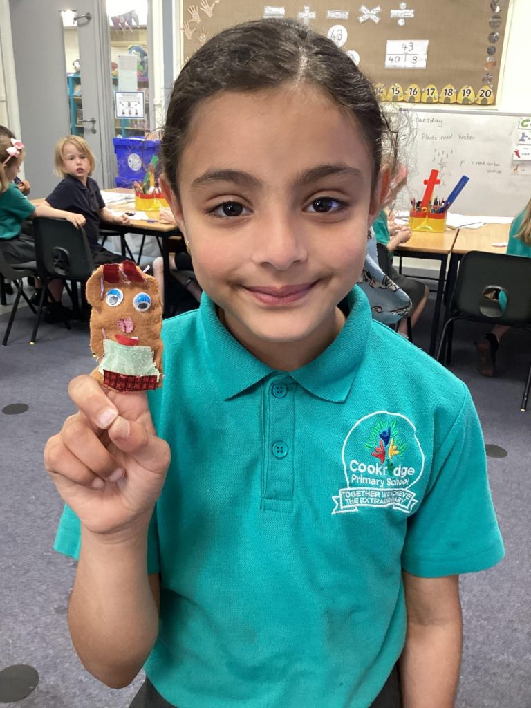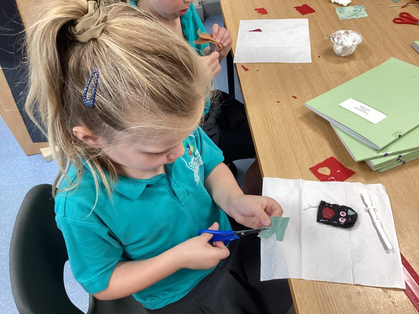 This week saw the start of our textiles event. We created finger puppets based on the characters of The Gingerbread Man. We learnt a basic running stitch to sew the puppet together and decorated it as our chosen character.