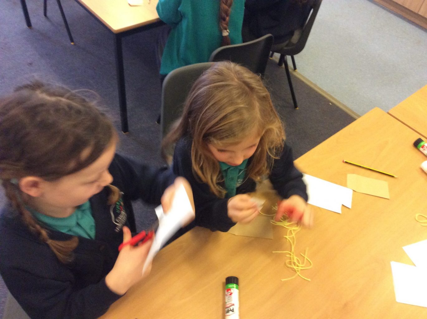 In DT, the children were creating castles, with a pop up structure. In Music, the children created shields with musical symbols representing a xylophone, chime bars, maracas and a tambourine. They then used these to point to one of the symbols and the child with that symbol played until they pointed to a different symbol.