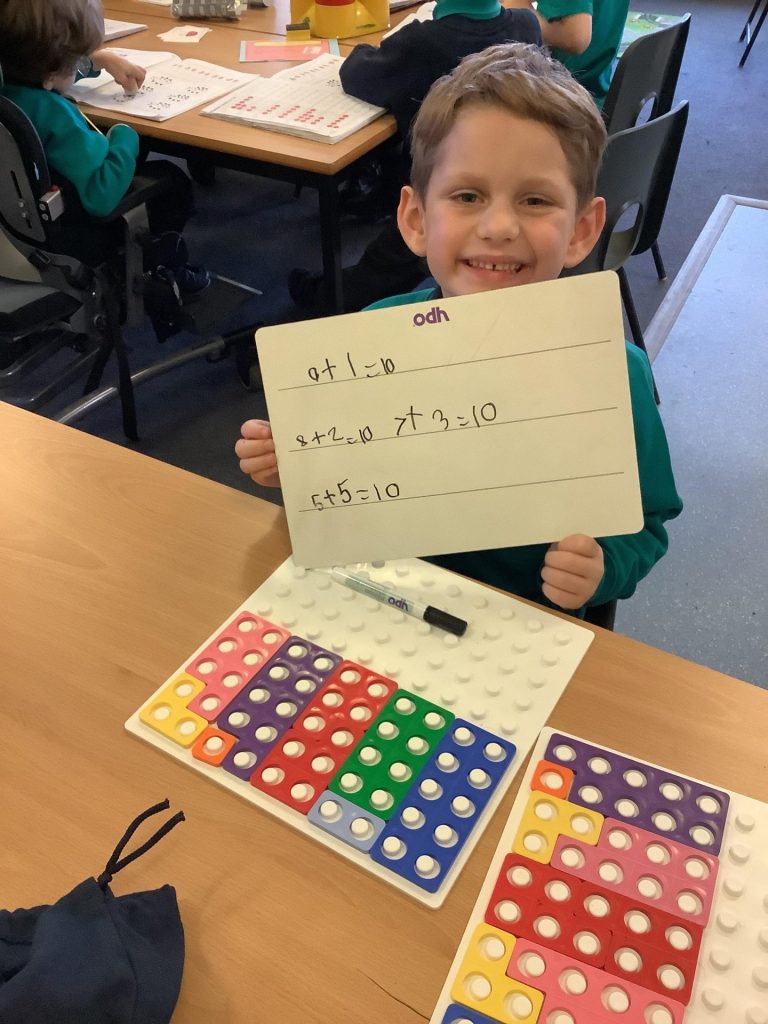 In Maths Year One have continued to learn about and practise their Numberbonds to ten. They have been particularly using ten frames and Numicon and playing some practical games. In Year two, their focus has remained on adding two digit numbers. Beginning with adding numbers that do not bridge ten and moving on to exchanging.
