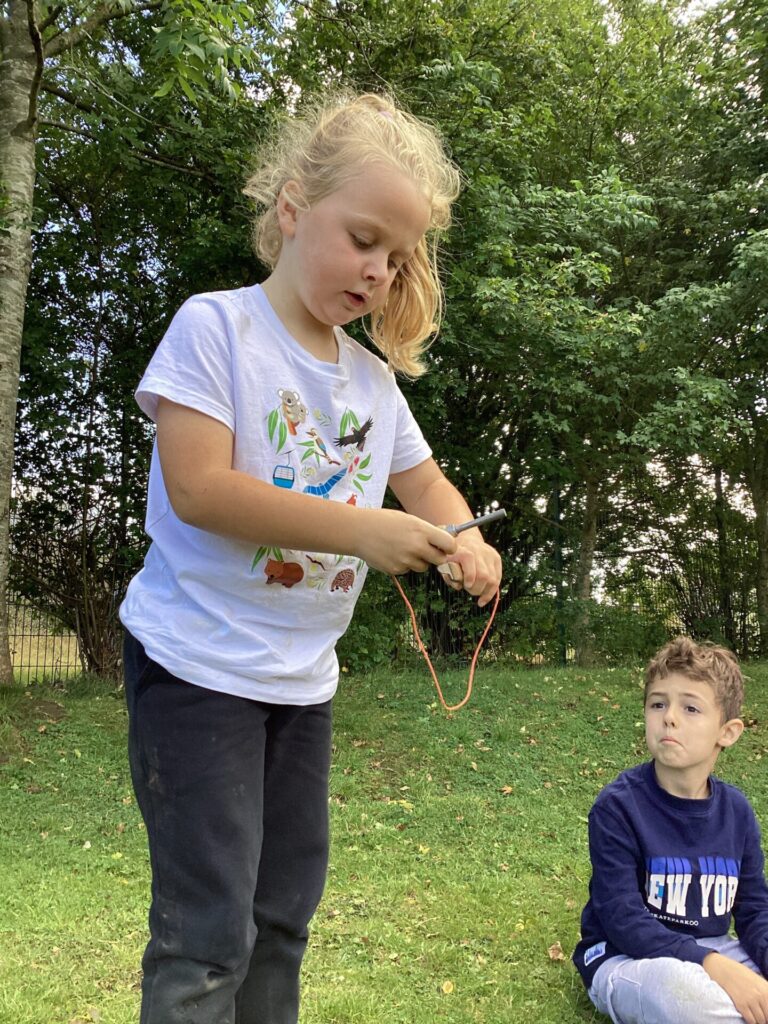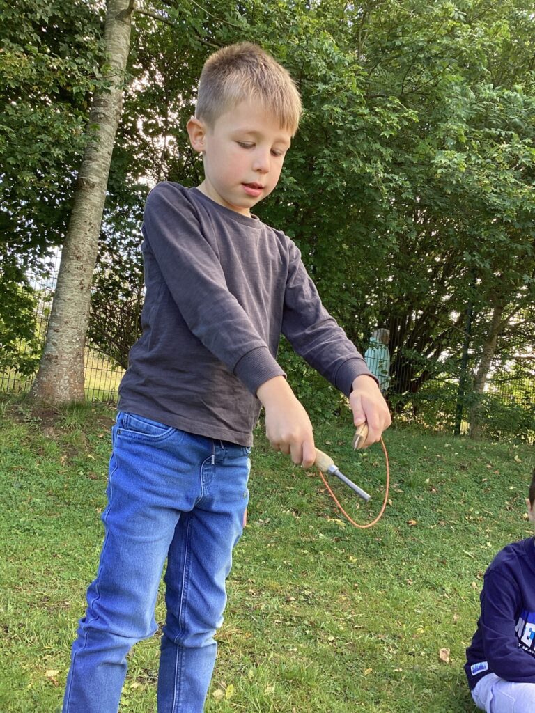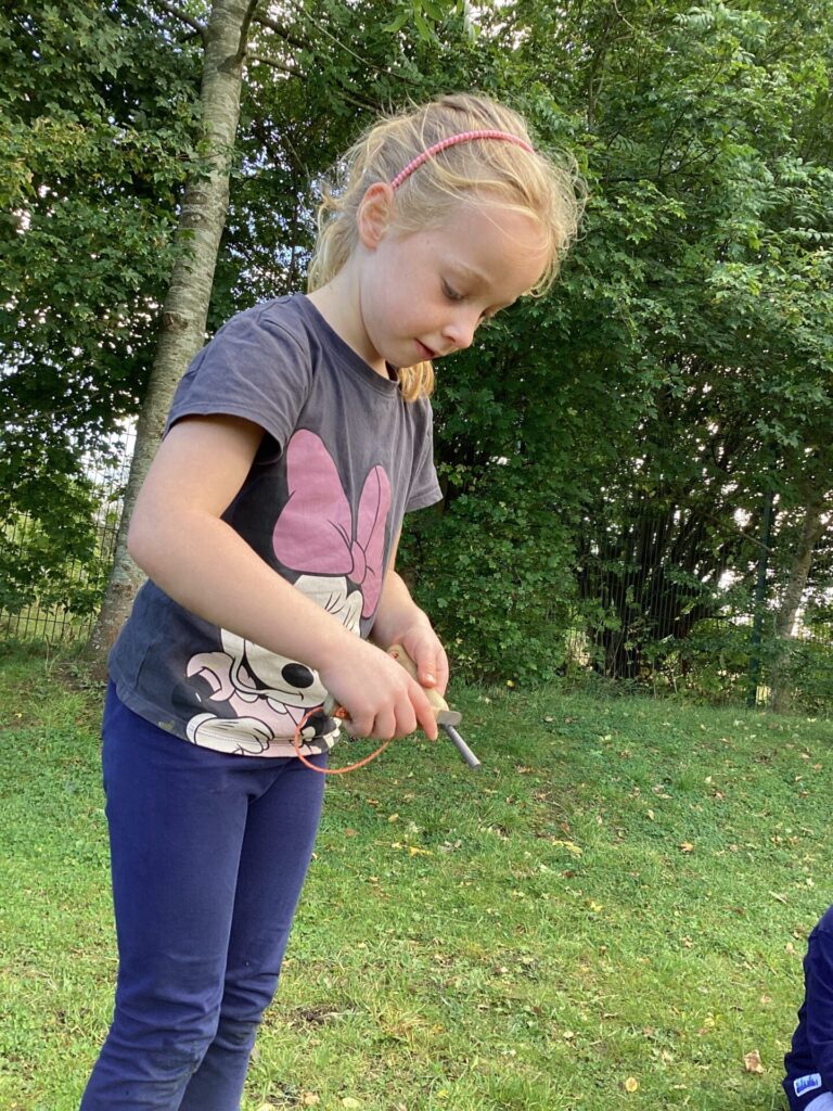 We also continued our Zog theme during our forest school session. We thought about the things that Zog could do. We then all had a go at making a spark of fire using the flints. We just let them fly into the air this time, but soon, we will attempt to use the spark to actually start a fire.