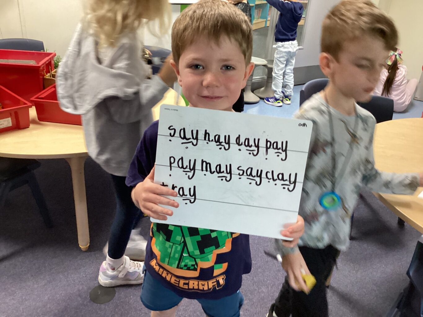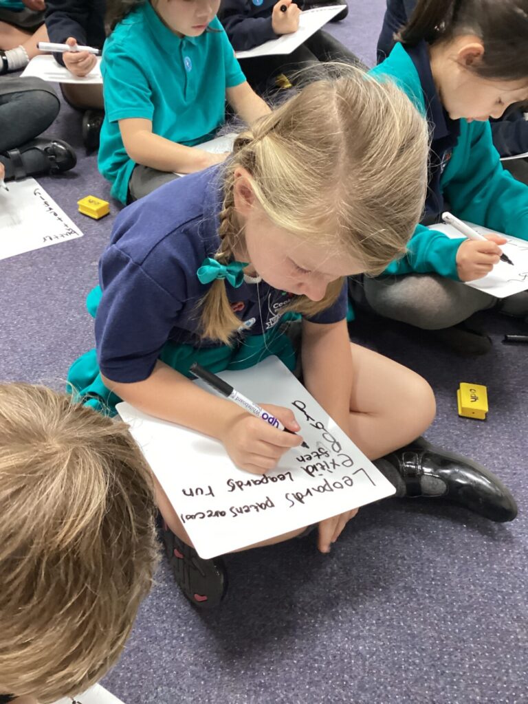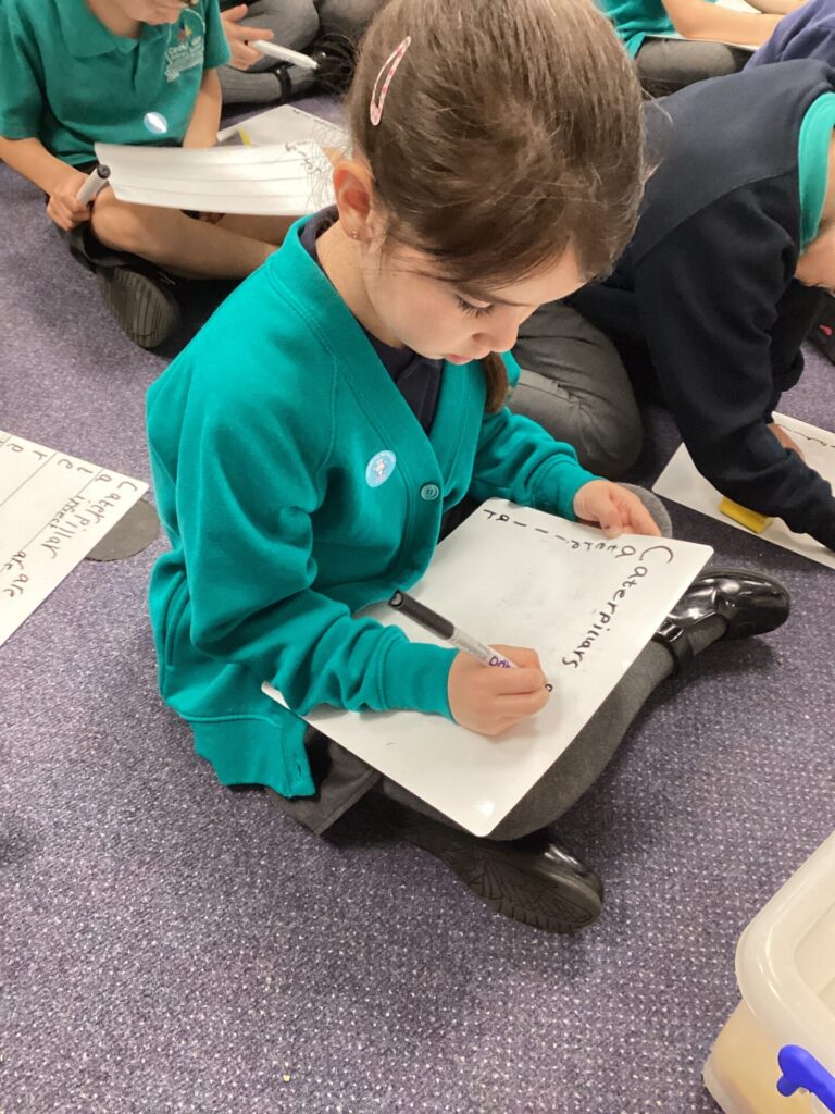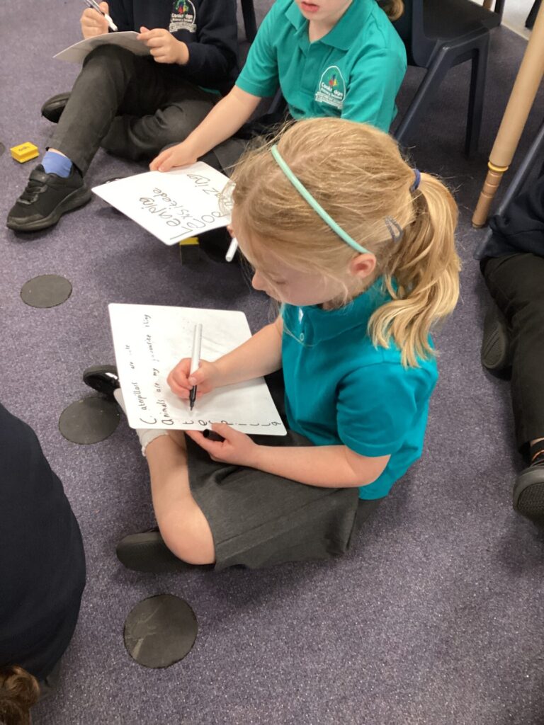 We have continued to look at the book ‘Zog’ in our English lessons. We have been focusing on handwriting and thinking about how to start the letter – with a curly caterpillar, long legged giraffe etc.. The children wrote their letters into the correct sorting box. They focused on handwriting by copying sentences from the story and thinking about which are ascenders and descenders. Finally, they wrote their own sentences about the characters in the story. We have begun our full phonics sessions this week, with year One focusing on /ay/ for play and Year Two have been focusing on /ge/ and /dge/ for cage and fridge.