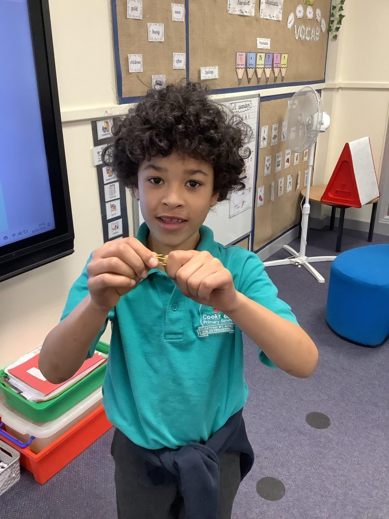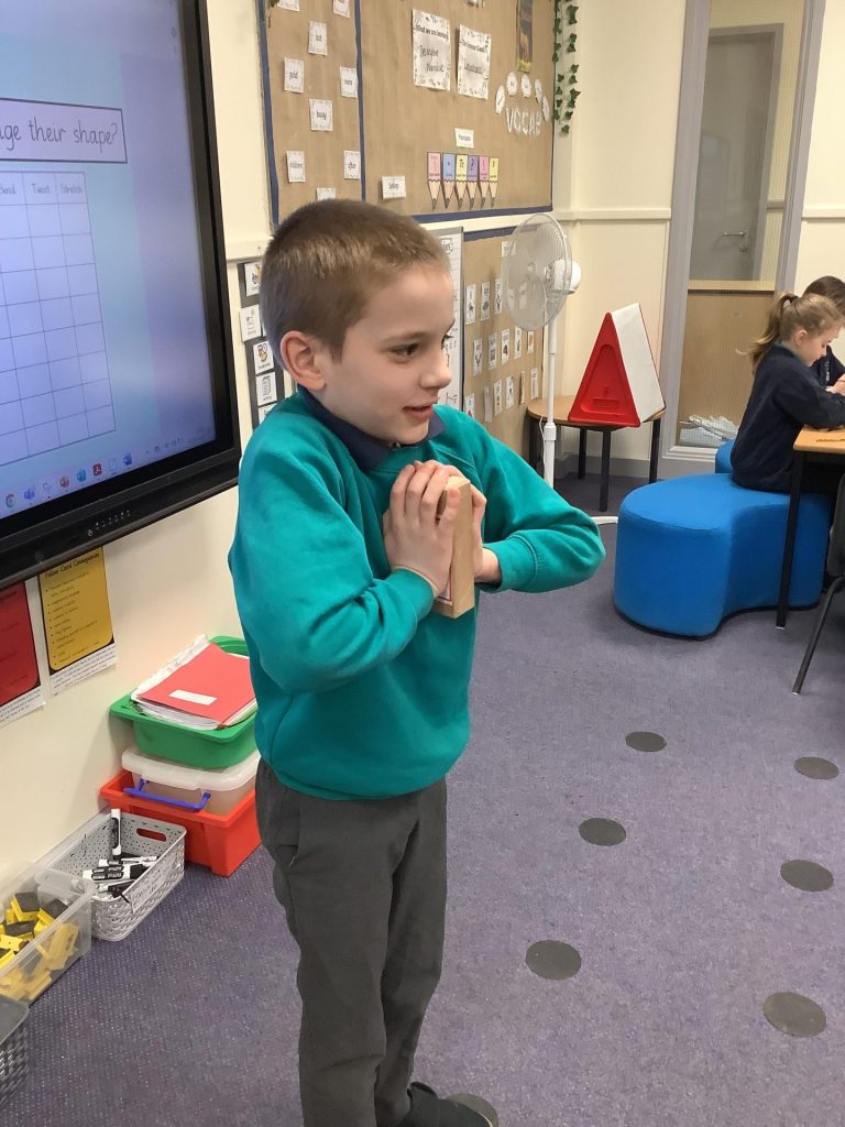 We have continued to look at materials and their properties in Science. We looked at a collection of everyday materials and thought about what they were made from. We then completed a table to see which properties they have for example looking at whether we could squash, stretch, bend or twist them.