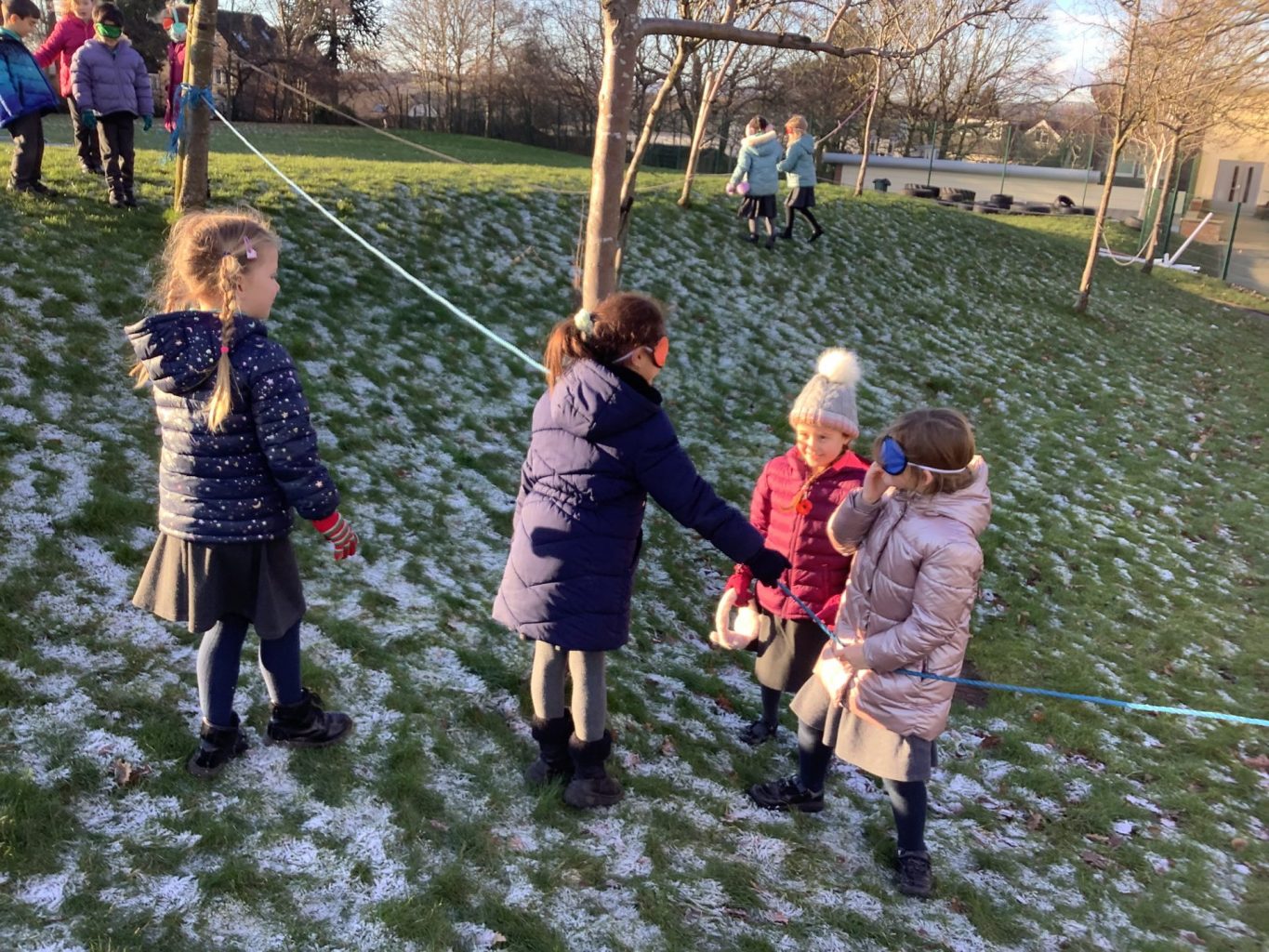 In computing this week we have continued our work on algorithms. One group did the robot activity, giving instructions to the teacher robot for how to clean their teeth. Other groups were out at forest schools giving instructions to their blind folded partner to guide them around and endure that they were safe. They thought about using instructions such as “Take five steps forward. Take two steps to the right….”