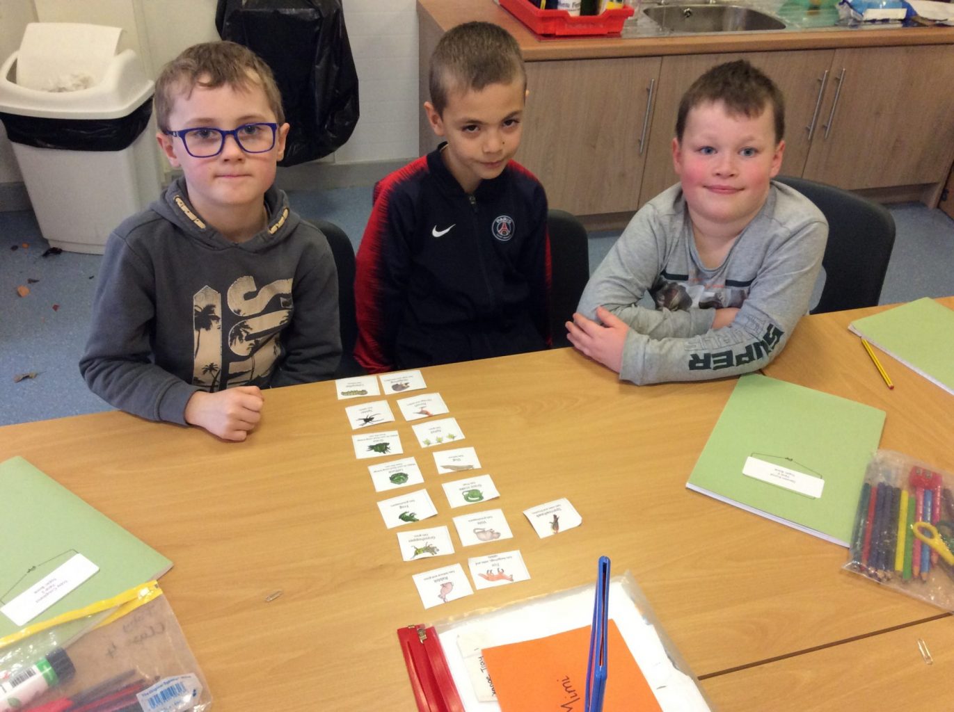 The Science topic continues, with the children looking at food chains. They were looking at food chains that could happen in and around their garden and then thinking bigger, making food chains for animals out in the jungle or savannahs.