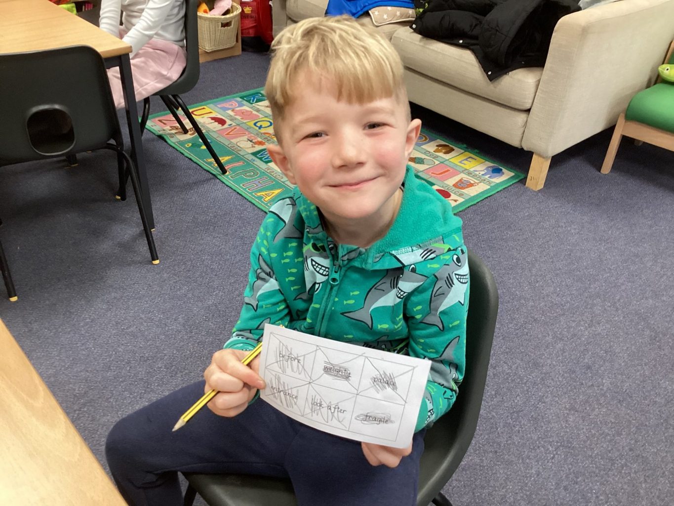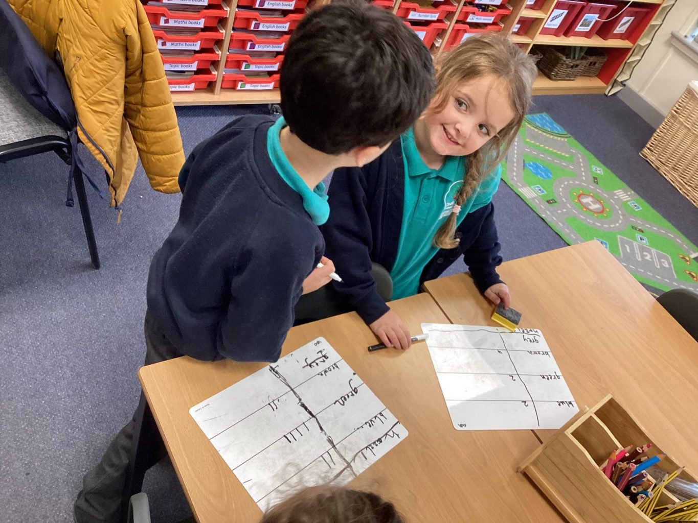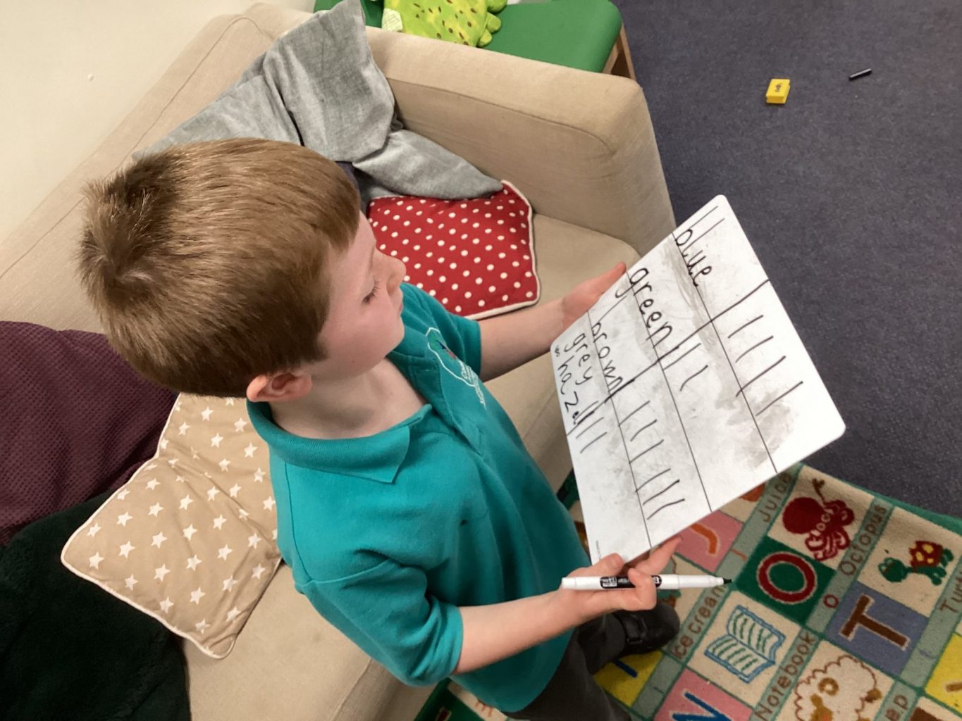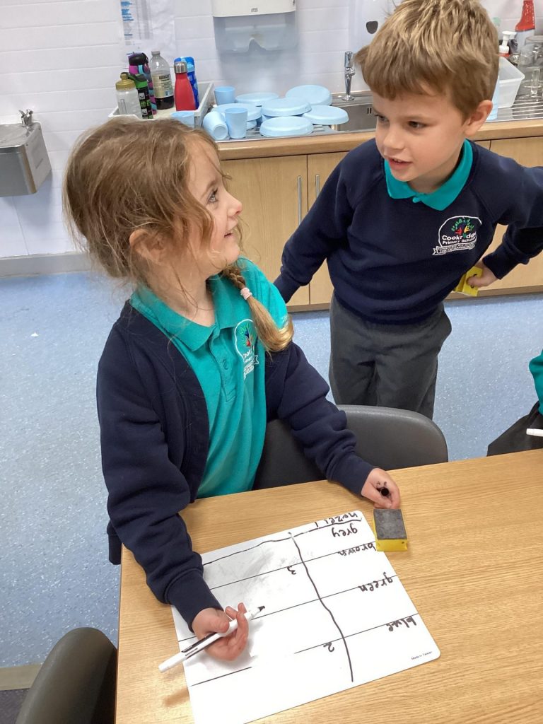 In Science, we have begun to learn about categorising and collecting data. We each collected data about our classmates. We decided to find out what colour eyes people in our class have. We were able to then use the data we had collected to answer questions such as ‘How many people have brown eyes’ or ‘which eye colour is the most popular?’