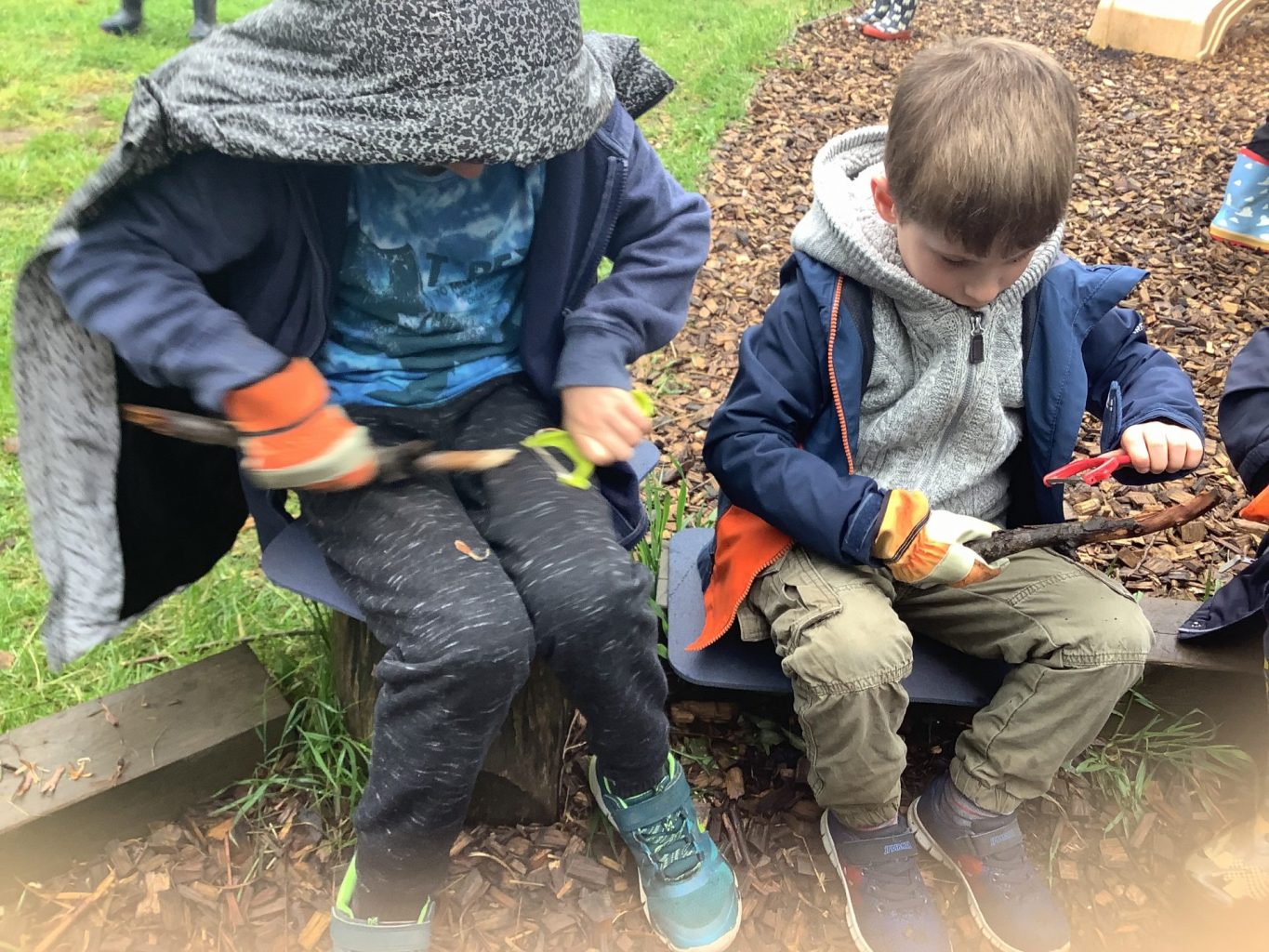 We benefitted from having lovely weather early in the week. The whole phase were out doing forest schools and rotating around a variety of activities. They were able to climb on the tree house and slack line, whittled sticks, sketched natural features and visited the animals. On Tuesday afternoon we enjoyed welcoming family members of the year two children into our forest schools area too. We are so grateful for the money raised to help mend and improve the area and have enjoyed sharing it with you. We look forward to being able to welcome you in again for future events.