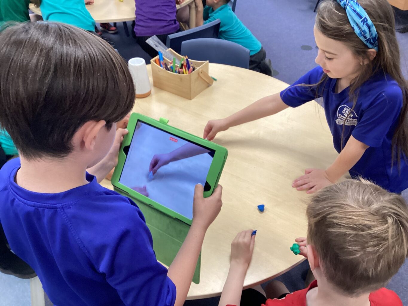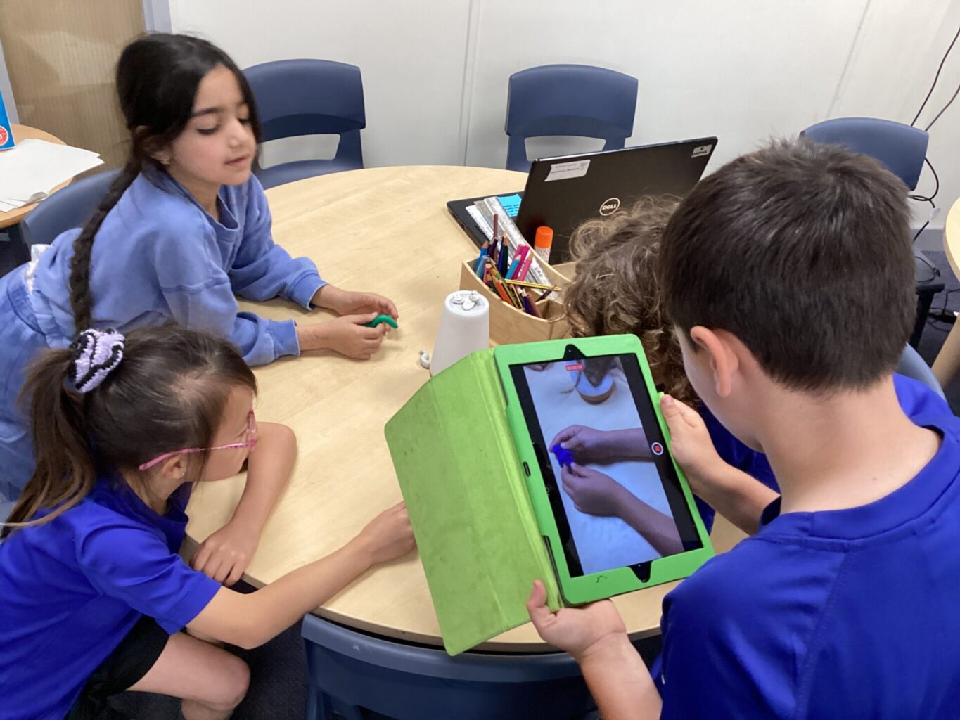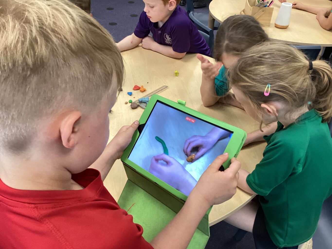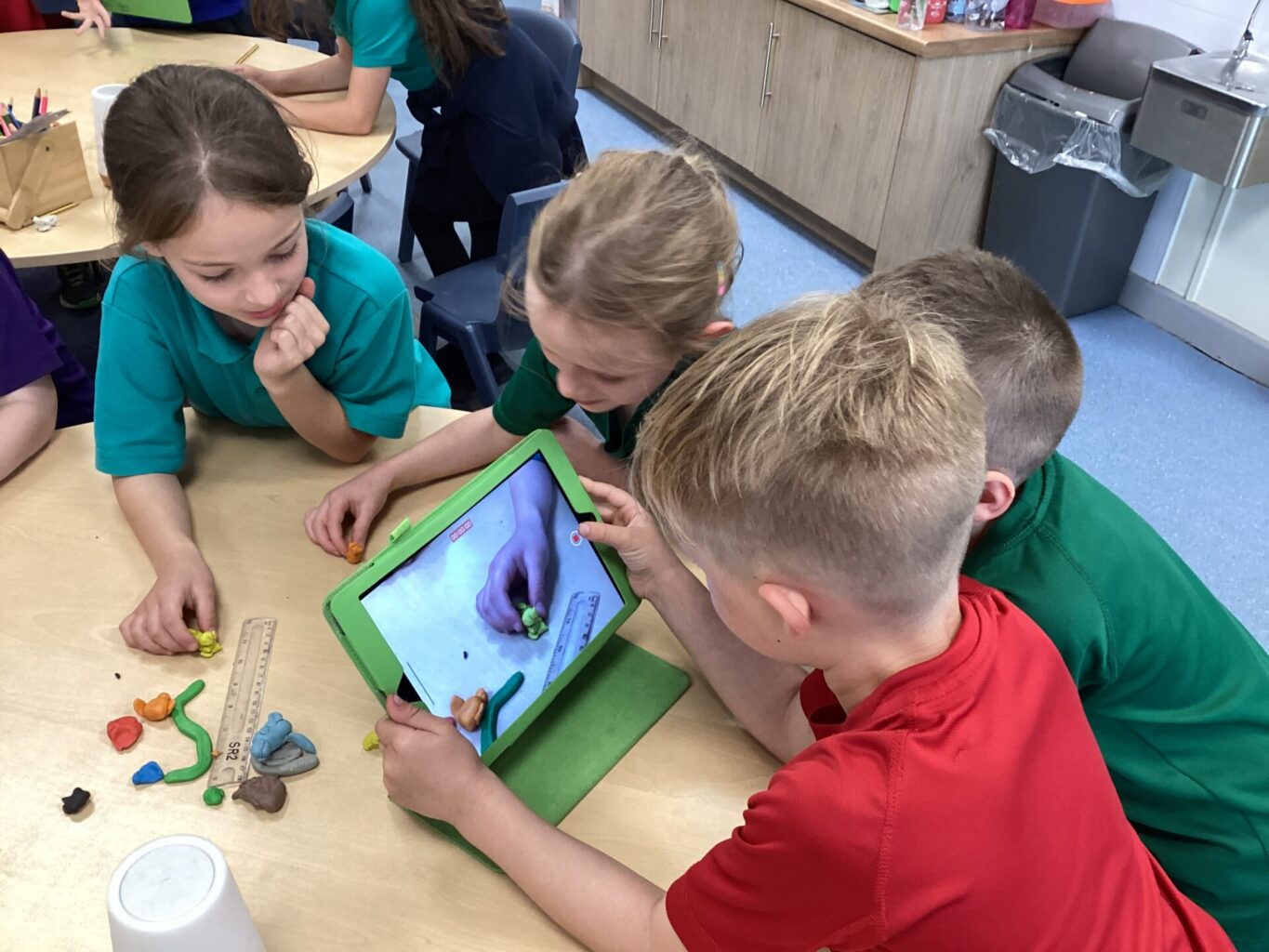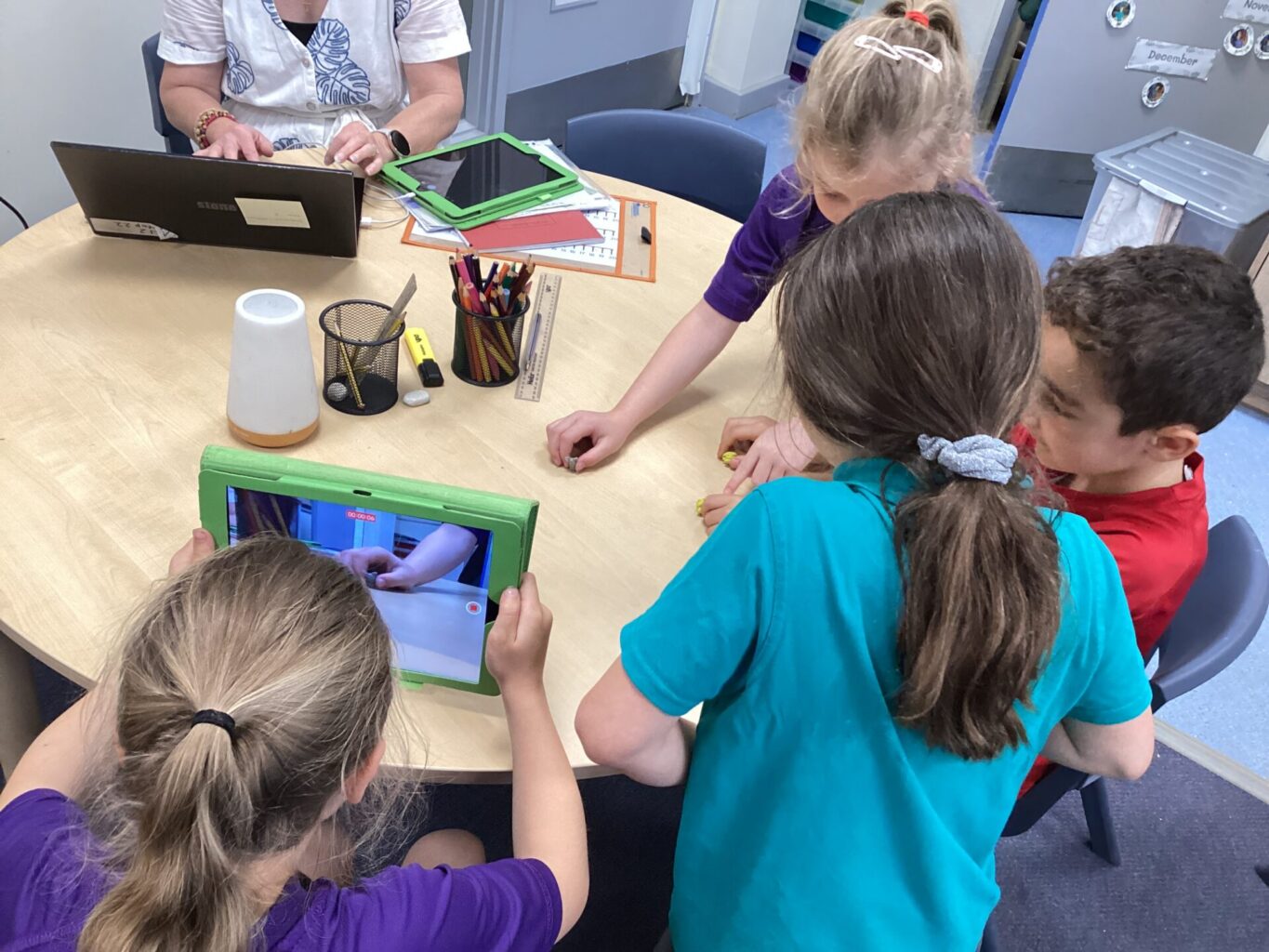 We made characters from the Gruffalo out of plasticine in computing and then created our own animation. They children used ipads to film the story, as the rest of their team moved their plasticine characters around telling the story. They really enjoyed watching them back and discussing ways to improve them, eg thinking about where their hand was positioned infront of the camera.