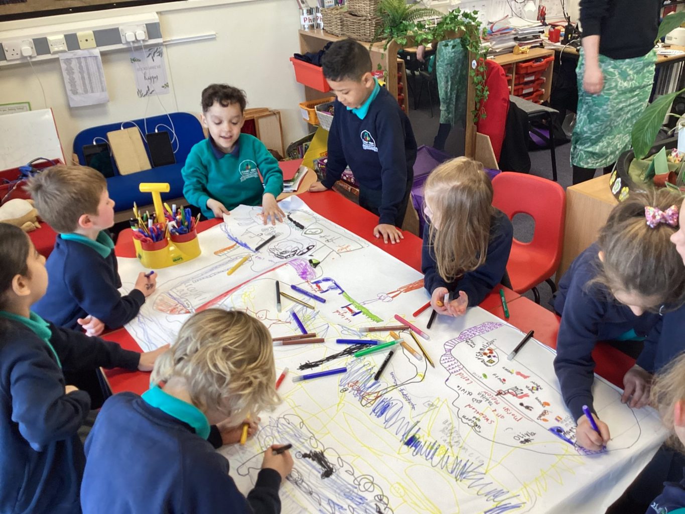 In Geography, we have been using our observational skills to make maps and plans. We looked at a variety of maps, how they are used and what is included on them. We then looked at our classroom and some of the main features. Then, using a key, we made a birds eye view plan of the classroom, taking care to put furniture etc… in the correct place.